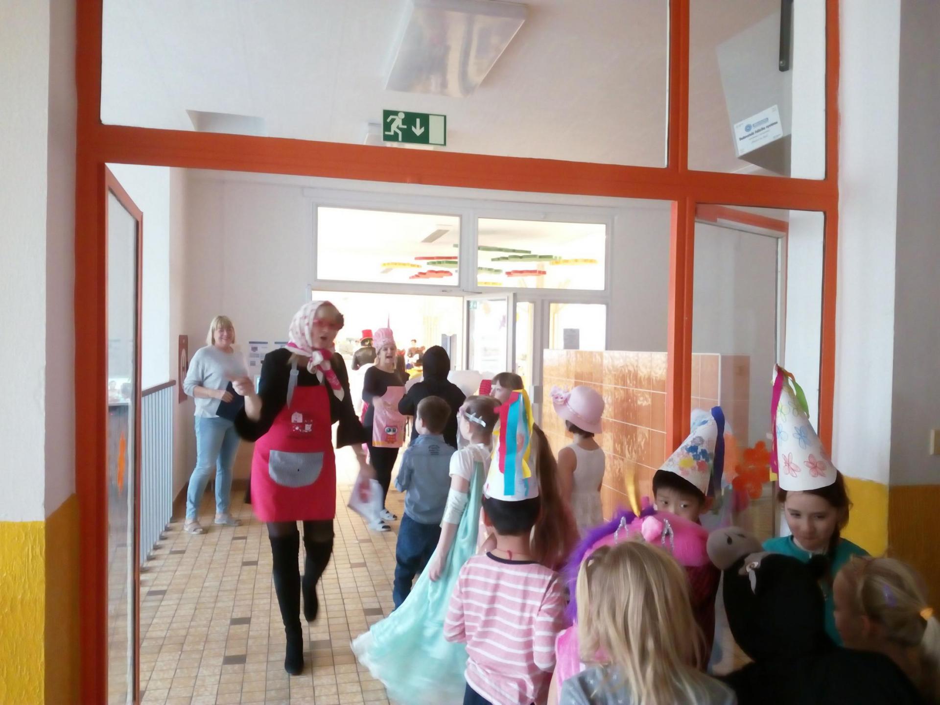 20.2.2019 Masopustní průvod dětí ze ŠD školou.