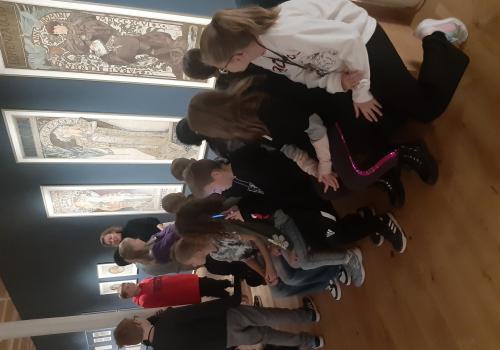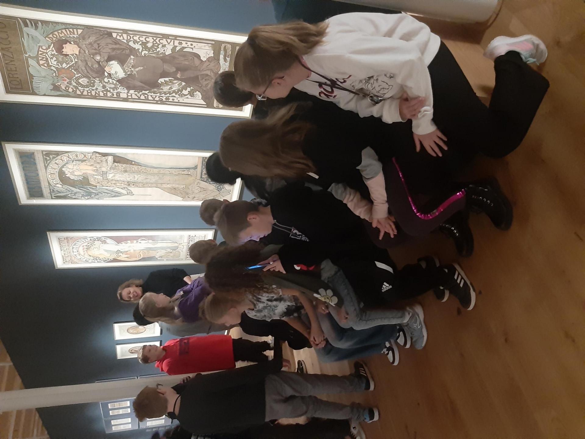 Viděli jsme překrásné secesní Muchovy plakáty, dozvěděli jsme se, jak se Mucha stal známým a žádaným umělcem, také něco málo o symbolech zakomponovaných v obrazech. Děti měly možnost porovnat, jak se stejných témat chopil Mucha a jak moderní umělci českého původu.