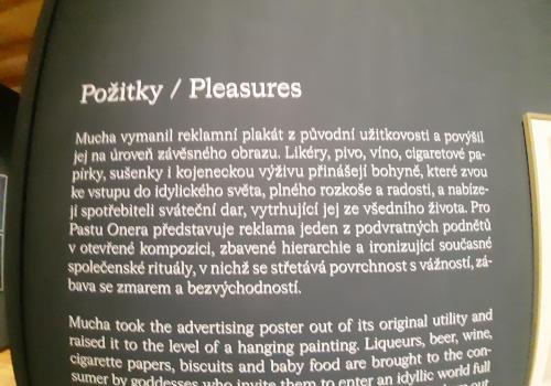 Nejdéle jsme však setrvali v prostoru nazvaném Požitky, kde byly vystaveny jak Muchovy reklamy, tak i znepokojivé obrazy 2 mladých českých umělců, z nichž jeden tvoří pod pseudonymem Pasta Oner. Paní průvodkyně i já jsme byly potěšeny, jak děti vnímají obrazy, co si myslí o motivech a dějích, které obrazy ztvárňovaly. Ukázku z jednoho takového zastavení najdete pod článkem.