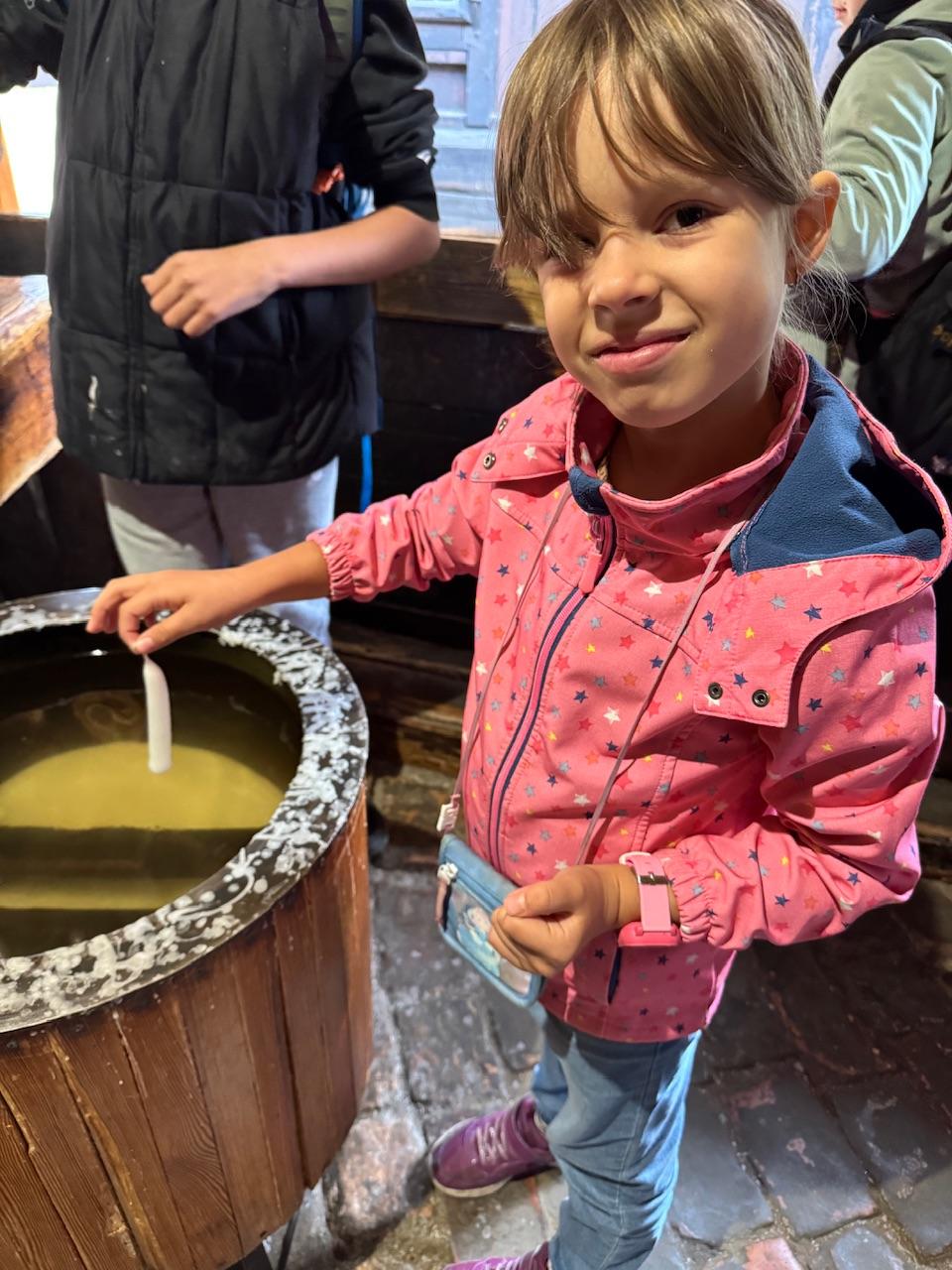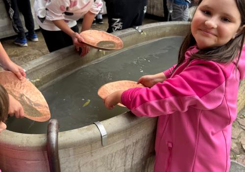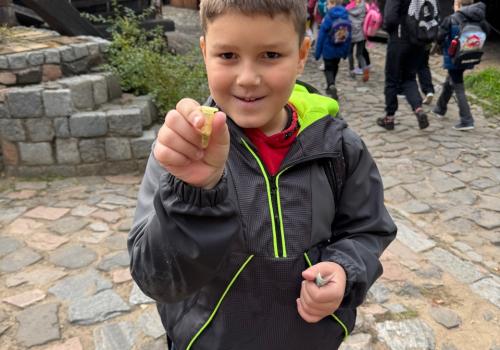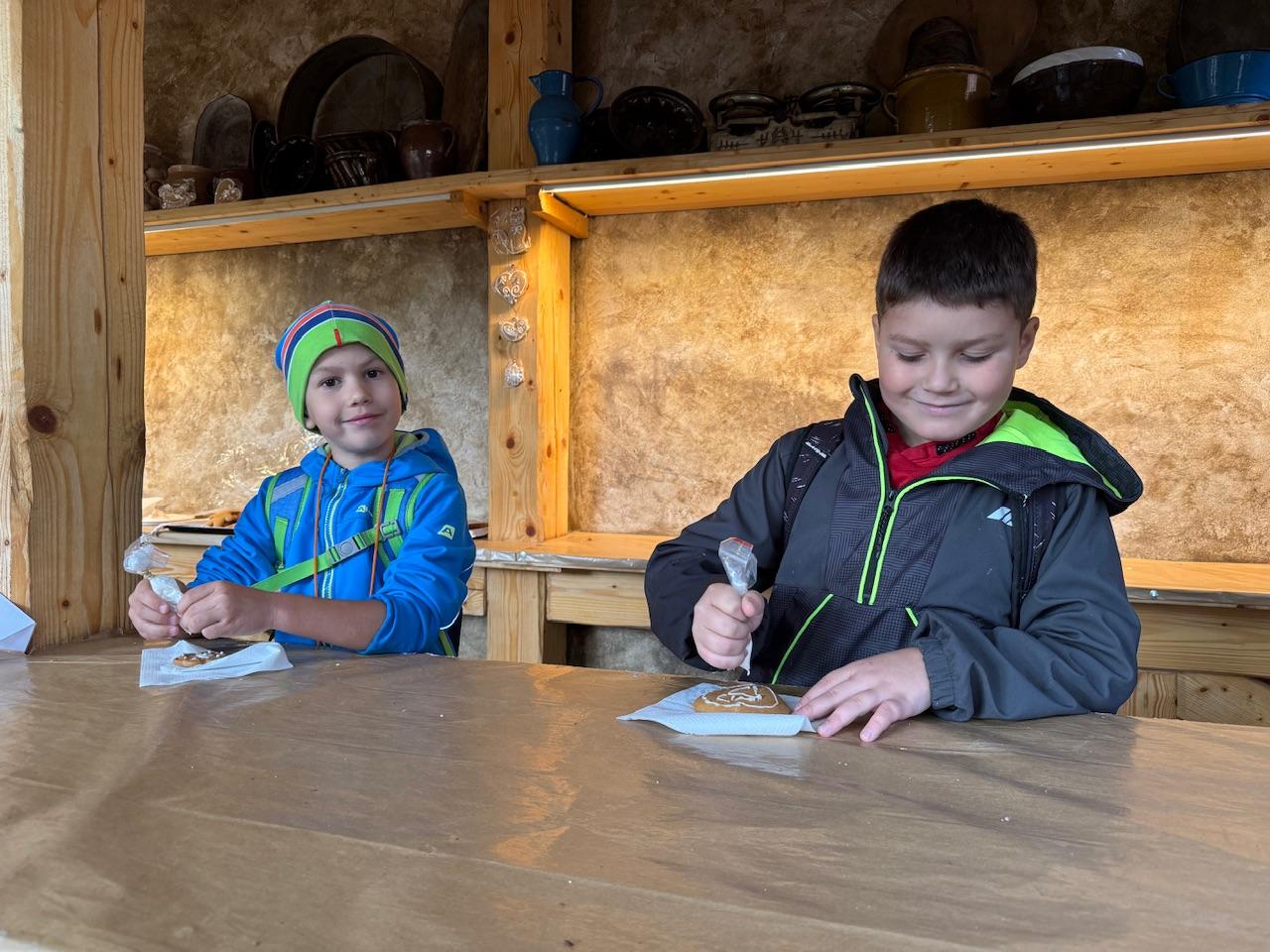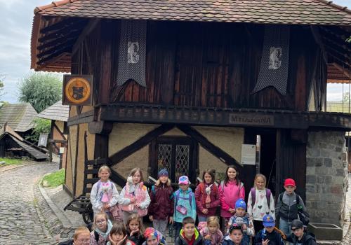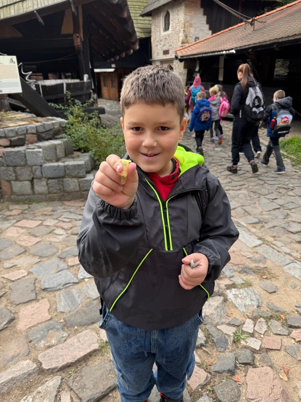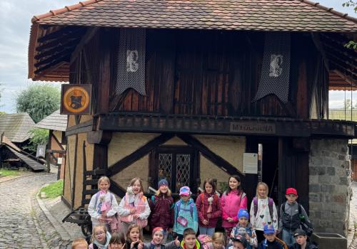 V centru řemesel jsme si nejprve vyměnili koruny za groše. V historické vesnici jsme si vyzkoušeli různá řemesla. Největší úspěch mělo rýžování zlata, výroba papíru, svíček a mýdel, zdobení perníčků. Zaujala nás také drátenická a hrnčířská dílna. V hodovně si někteří koupili něco dobrého na zub. Vyběhali jsme se v bludišti, v zahradách jsme si prohlédli moderní umění, vyhlídku a poznávali bylinky. Viděli jsme velké množství hus a dalších zvířat. Celá exkurze se povedla, včetně počasí.