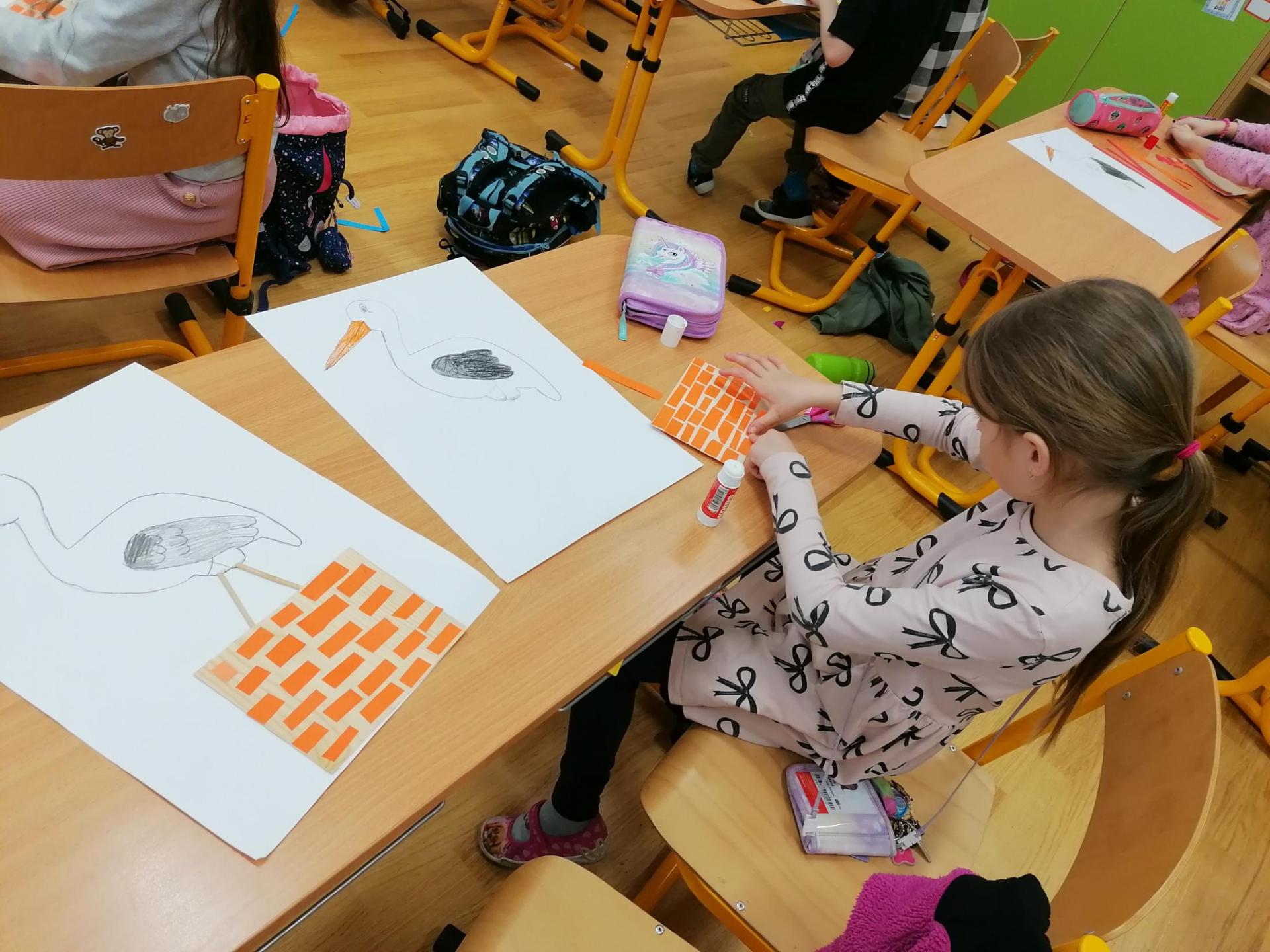 Čápi letos přilétají dřív, budeme je na hnízdech sledovat. Víme, že mají hnízda vysoko, aby bezpečně vyvedli svá mláďata. Nejtěžší bylo pro nás postavit správně komín. Snad všechny vydrží?