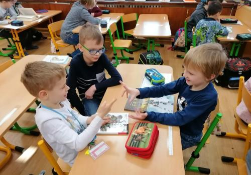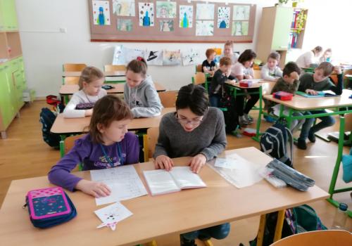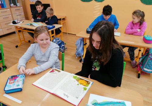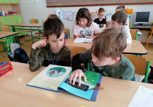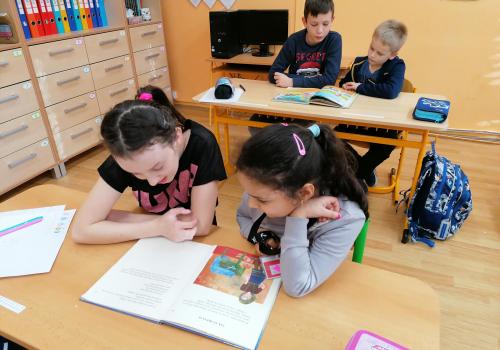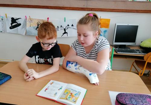 Dnes jsme četli poprvé s kamarády z 5.A. Bylo to prima. Pak jsme se seznámili s některými druhy exotického ovoce.