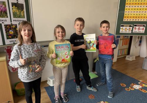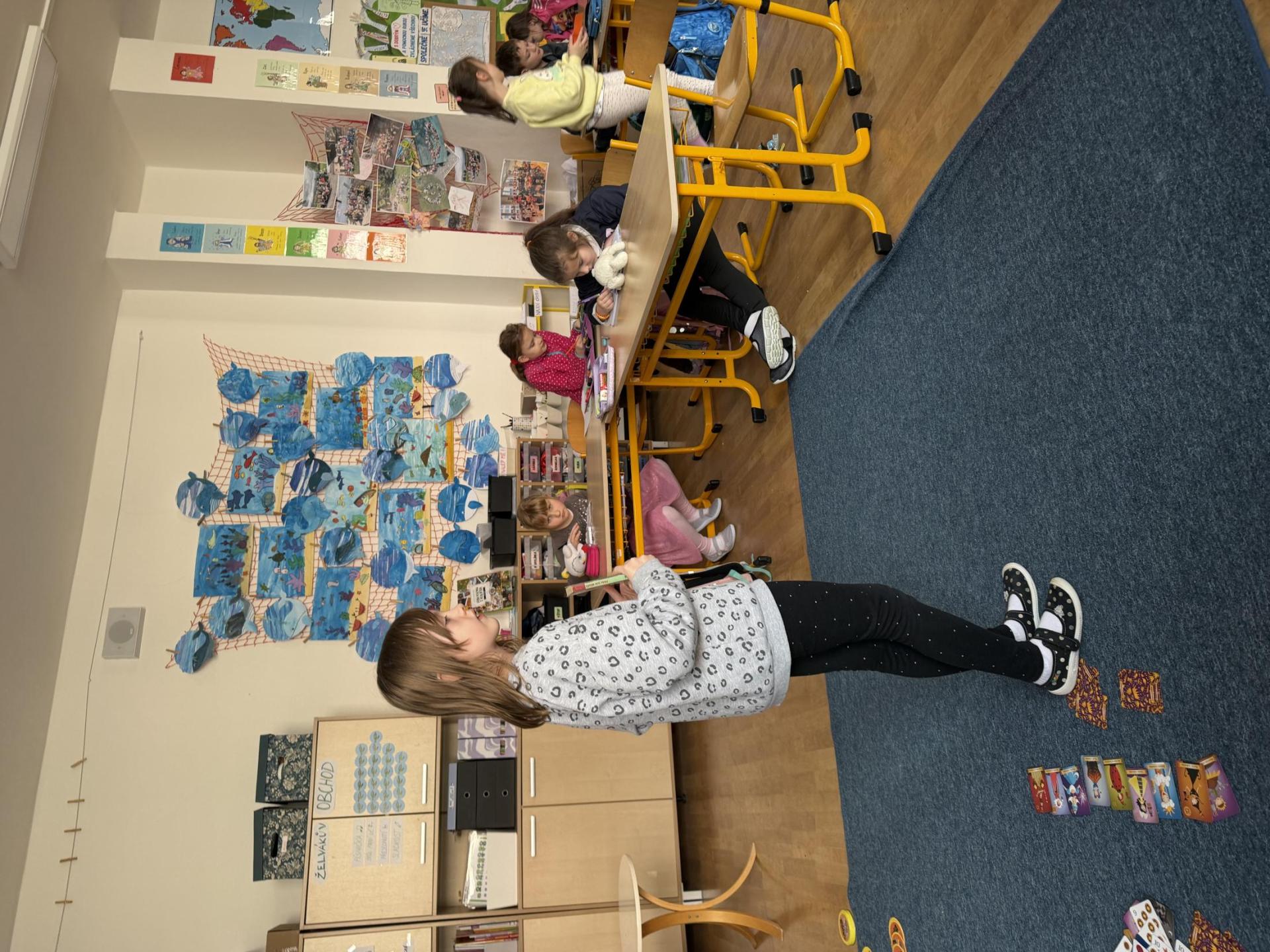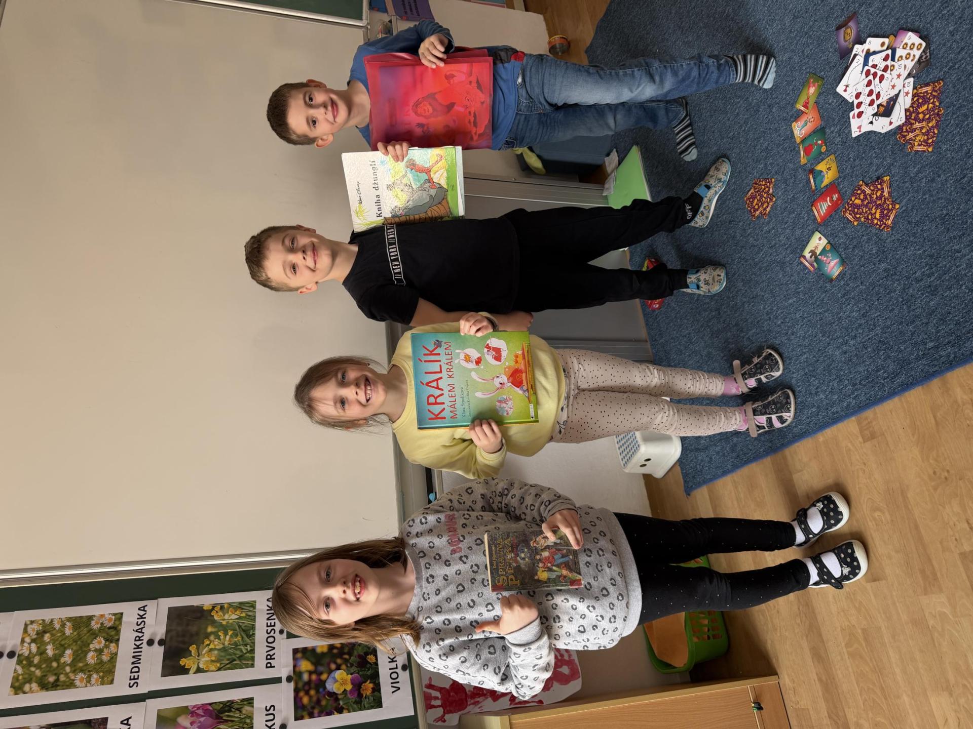 Představujeme si naše přečtené knihy, doporučujeme si je navzájem, prohlížíme si je a vyptáváme se na otázky, které nás zajímají.