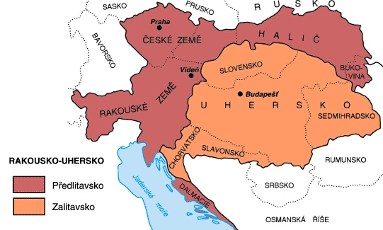 Rakousko-Uherské vyrovnání - mapa Rakousko-Uherska