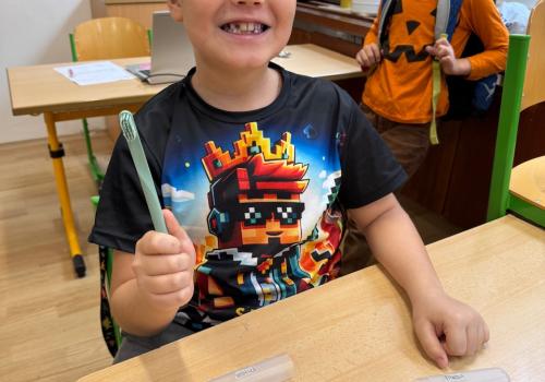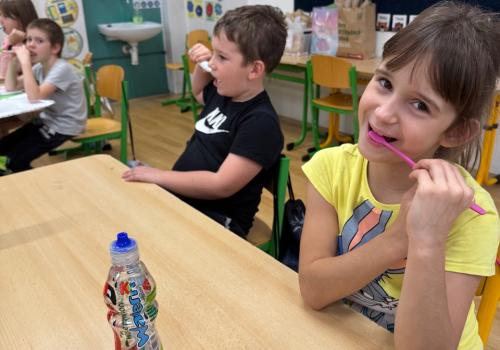 Poté proběhla kontrola žáků, zda správně přikládají kartáček k zubům a dásním a používají správné tahy.