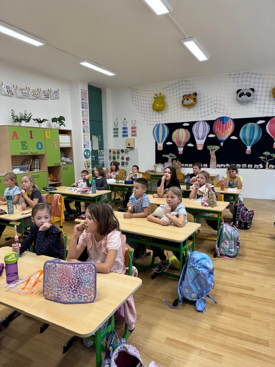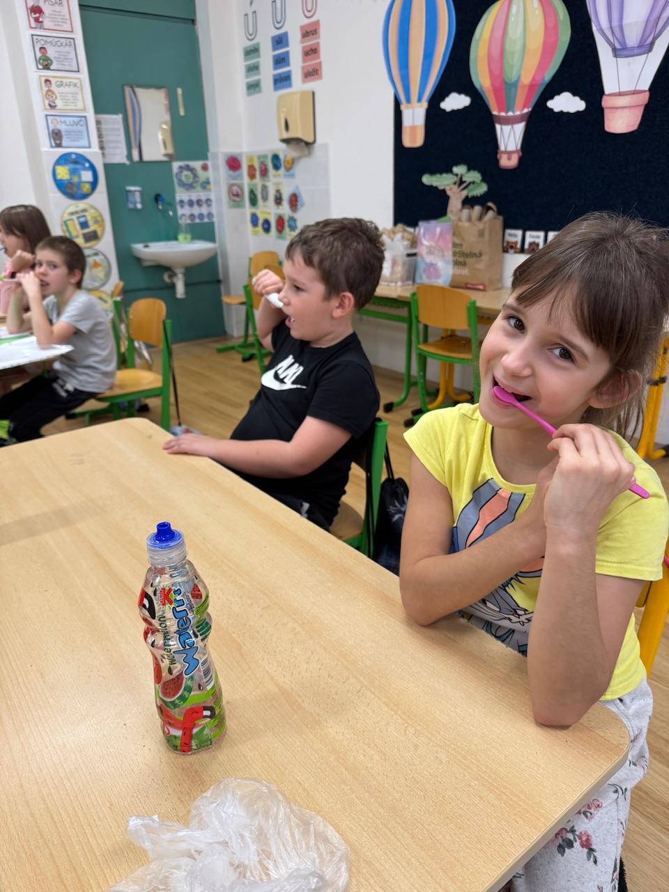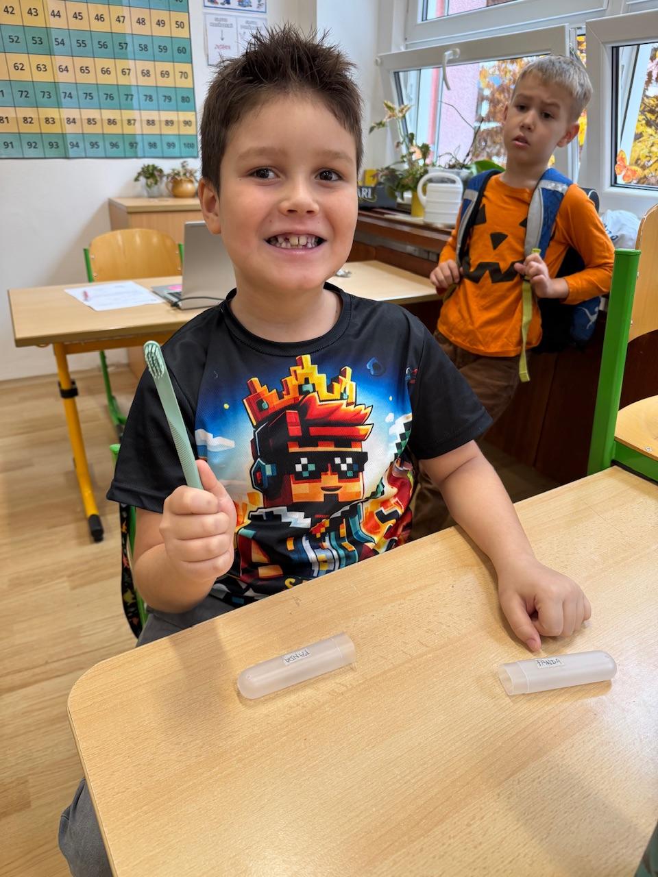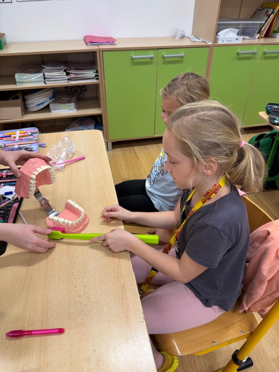Žáci byli seznámeni se základní teorií o stavbě zubů, jejich významu a nutnosti pravidelné péče o chrup. Byly vysvětleny zásady správného čištění zubů – volba vhodného kartáčku, zubní pasty a správná technika pohybů. Následovala praktická ukázka správného čištění zubů s demonstrací na modelu.