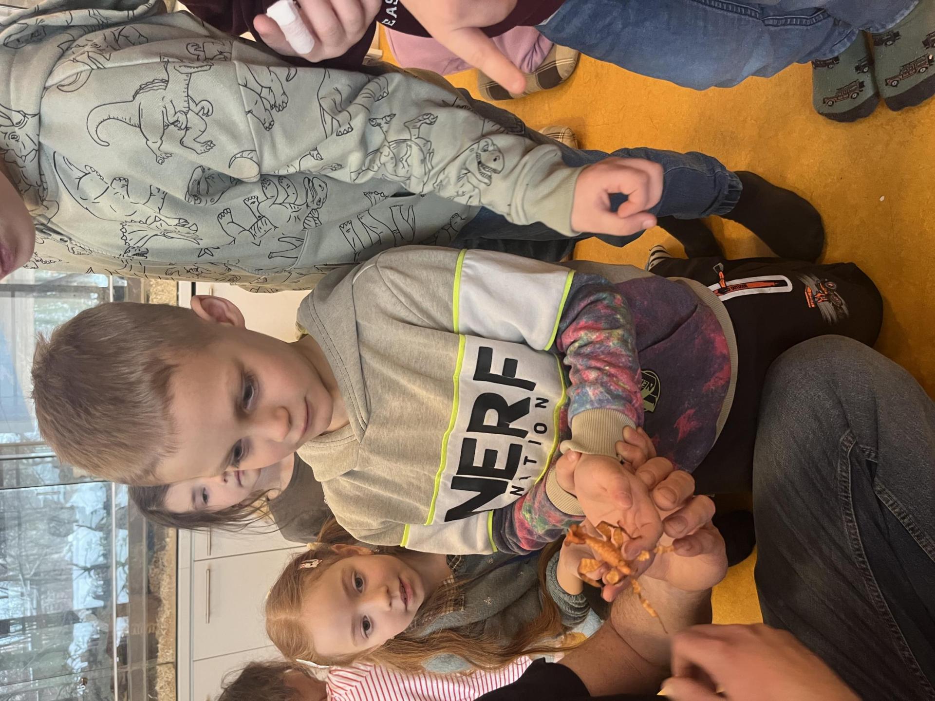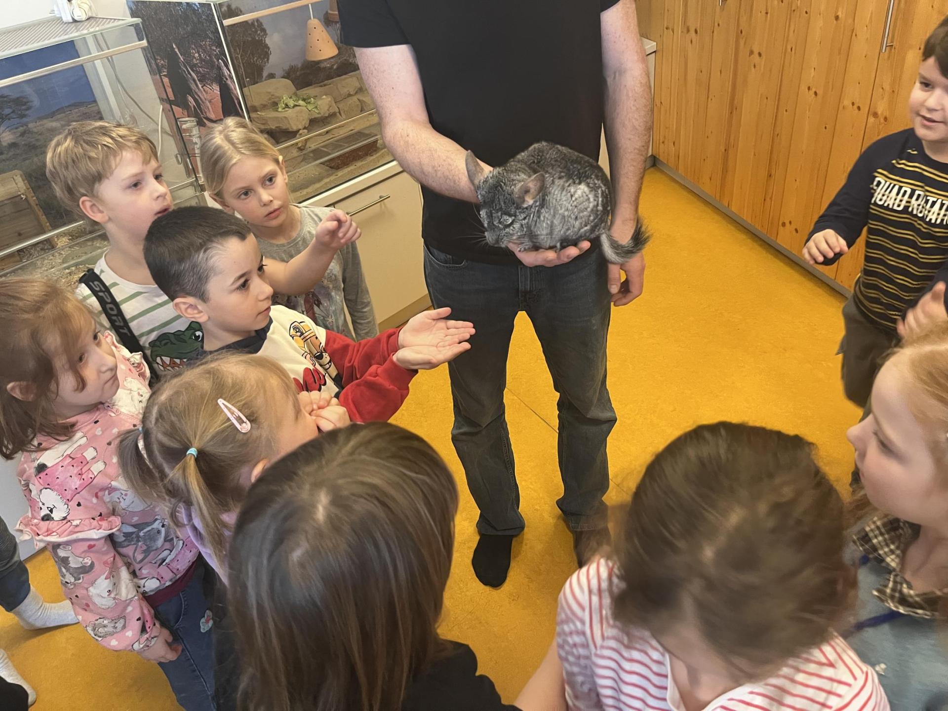 Největší zájem však děti projevily při setkání s živými zvířaty. Měly možnost si je prohlédnout zblízka, pohladit si je a některá dokonce vzít do ruky. Viděli jsme mláďata i dospělé jedince. Mezi zvířaty byli například králíci, myši, křečci, strašilky, suchozemské želvy a činčily.