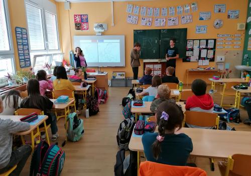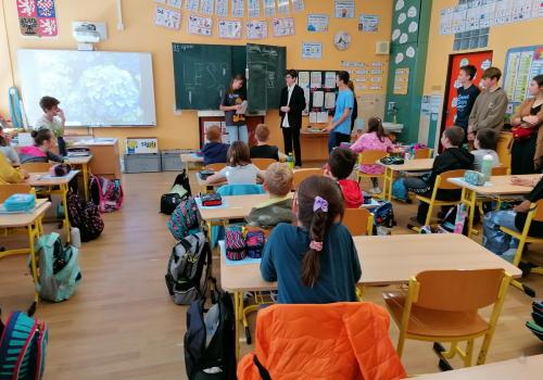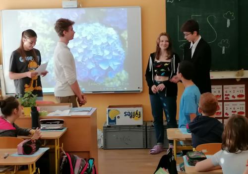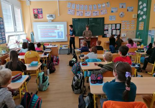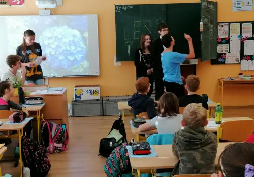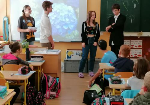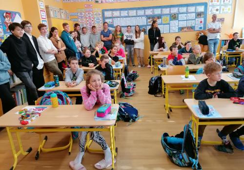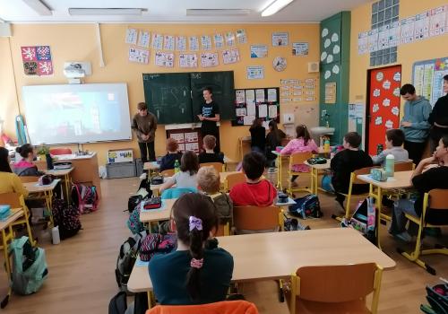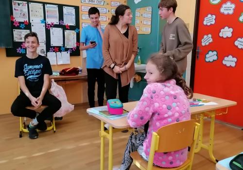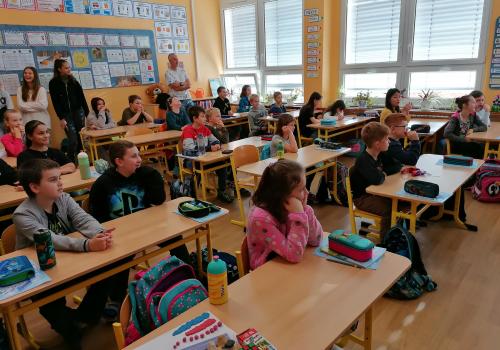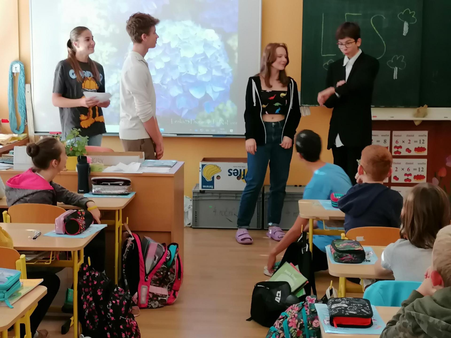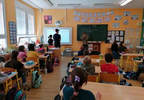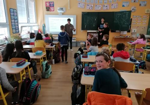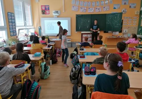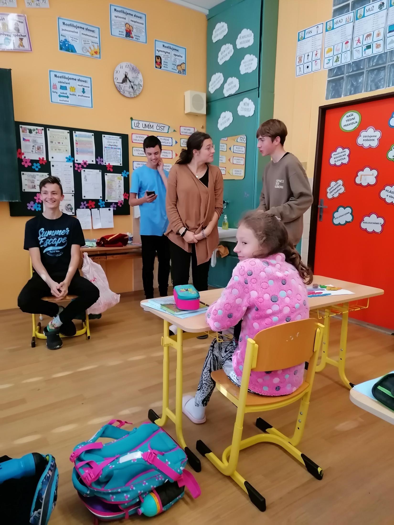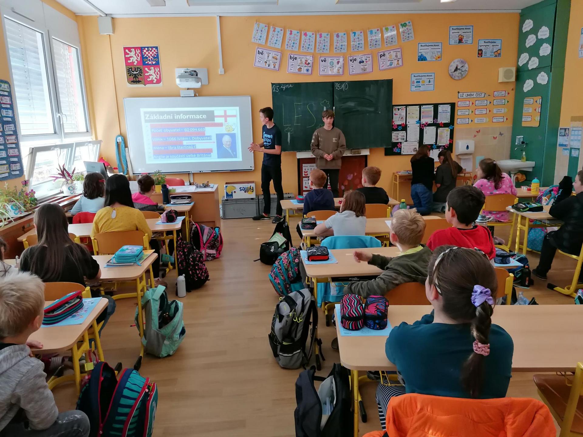 Dnes nás navštívila třída 9.A s prezentací o Velké Británii. Po prezentaci nás čekal vědomostní kvíz a scénky z filmů v anglickém jazyce. Všem se nám moc líbilo vystoupení 9.A