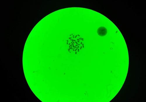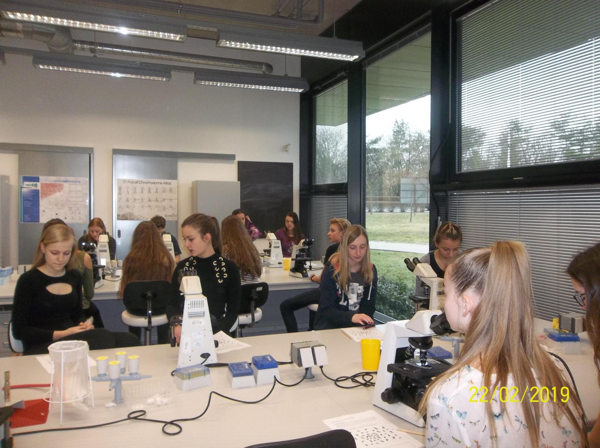 Zahráli jsme si na vědce – počítali jsme počty chromozomů v jádrech bílých krvinek pomocí mikroskopů.