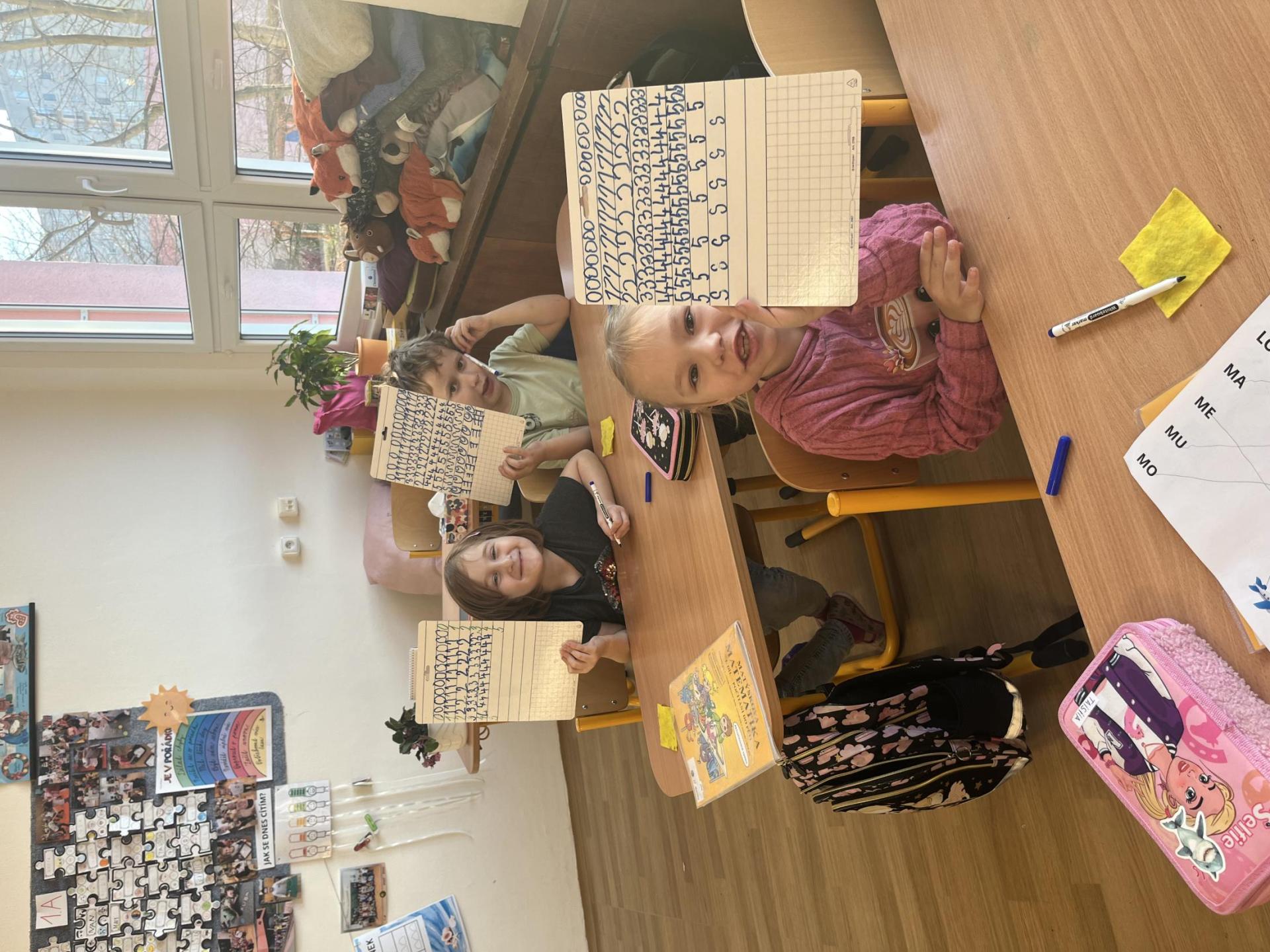 Za 2 týdny nás čeká už první psaní do písanky, a tak pečlivě trénujeme písmena a číslice!