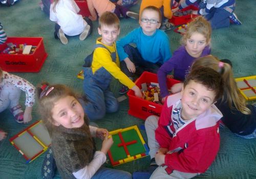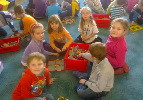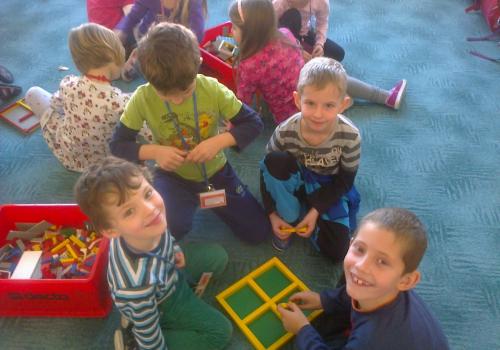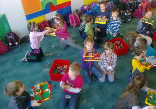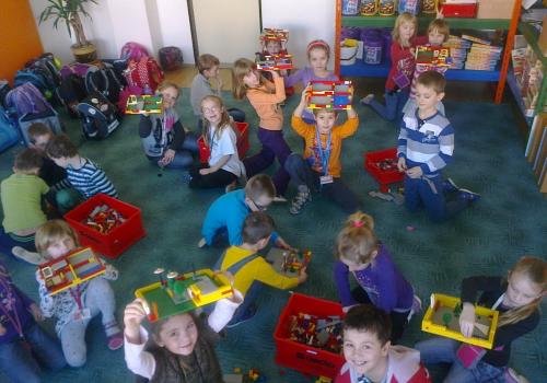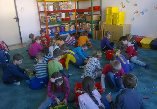 Na naší škole máme LEGO učebnu, kde jsme si s kamarády procvičili něco z matematiky a postavili jsme si jarní zahrádky.