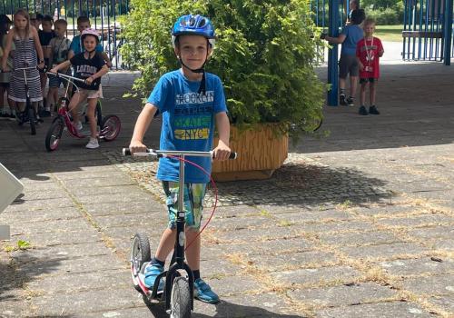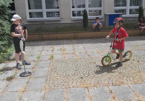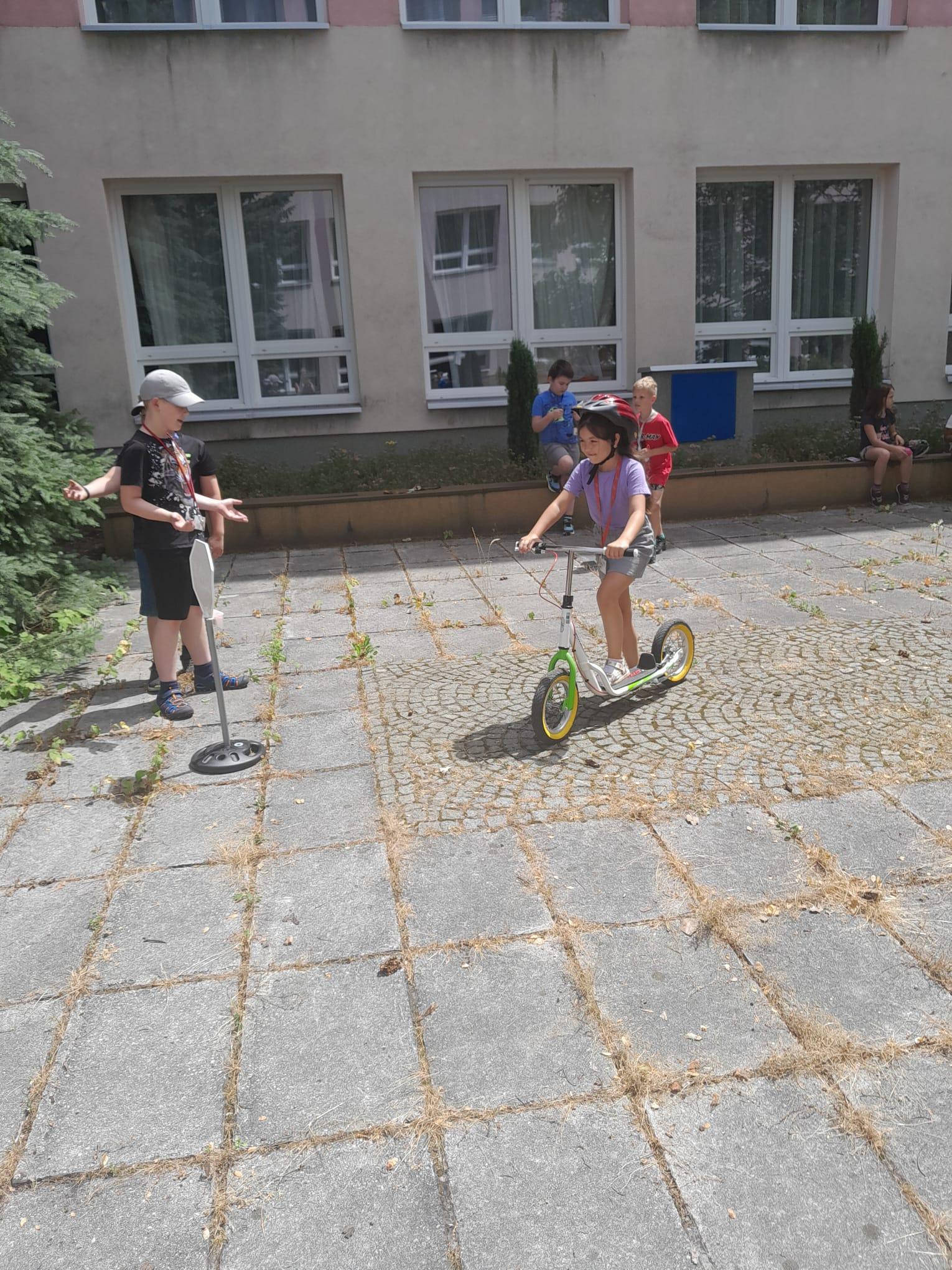 Jak bezpečně jezdit na koloběžce si vyzkoušely děti ze ŠD v rámci projektového dne Bezpečnou cestu a šťastný návrat