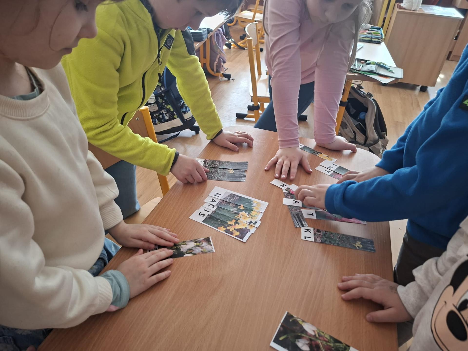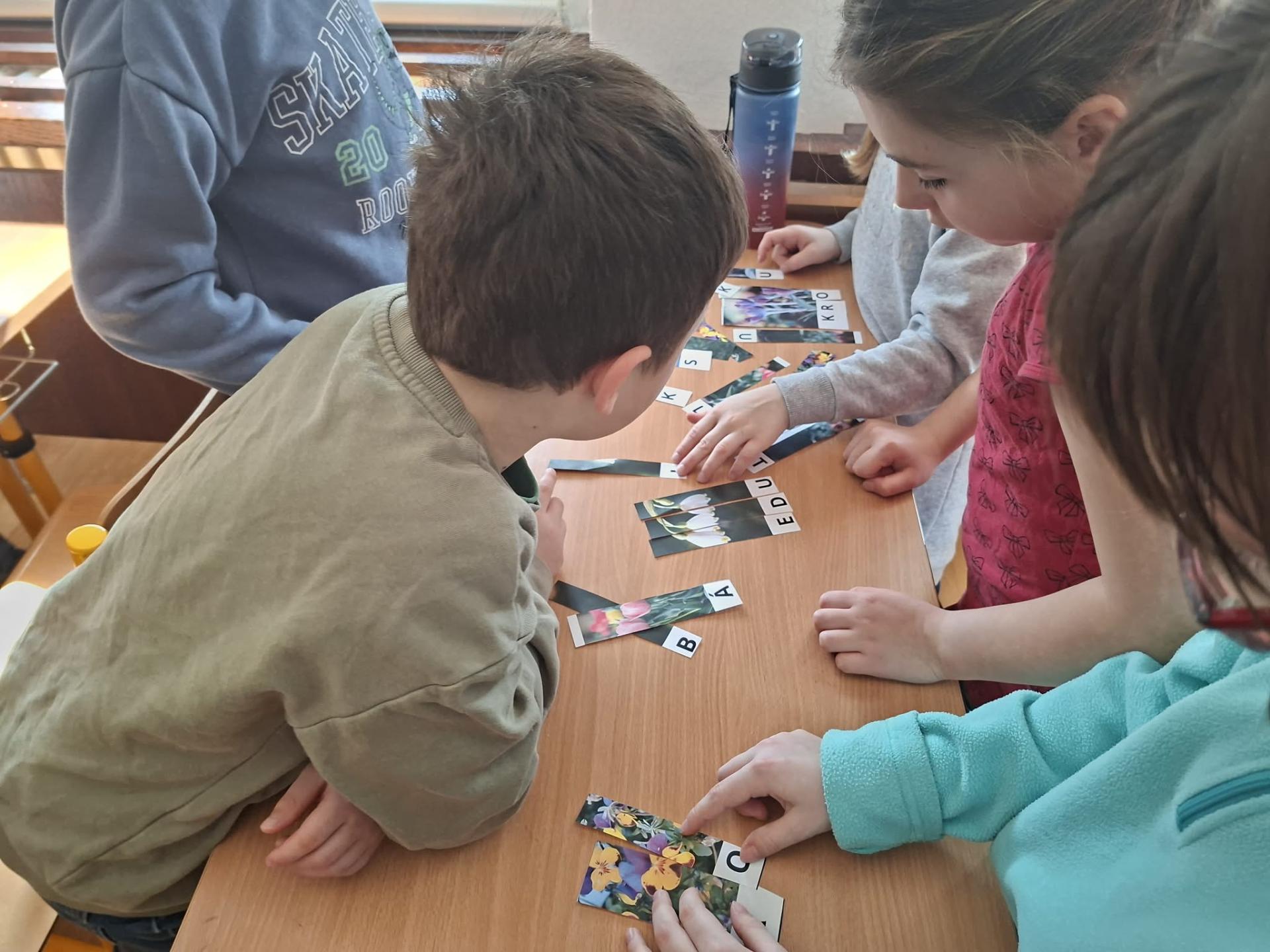 Venku to začíná kvést a my nezůstáváme pozadu. Opakování jarních květin jsme tentokrát nepojali jako zkoušení u tabule, ale jako akční jízdu po stanovištích. Ve skupinách jsme poznávali posly jara, určovali jejich názvy a zkoumali detaily. Práce v týmu nás baví – víc hlav víc ví a společně jsme na řešení přišli vždycky rychleji!