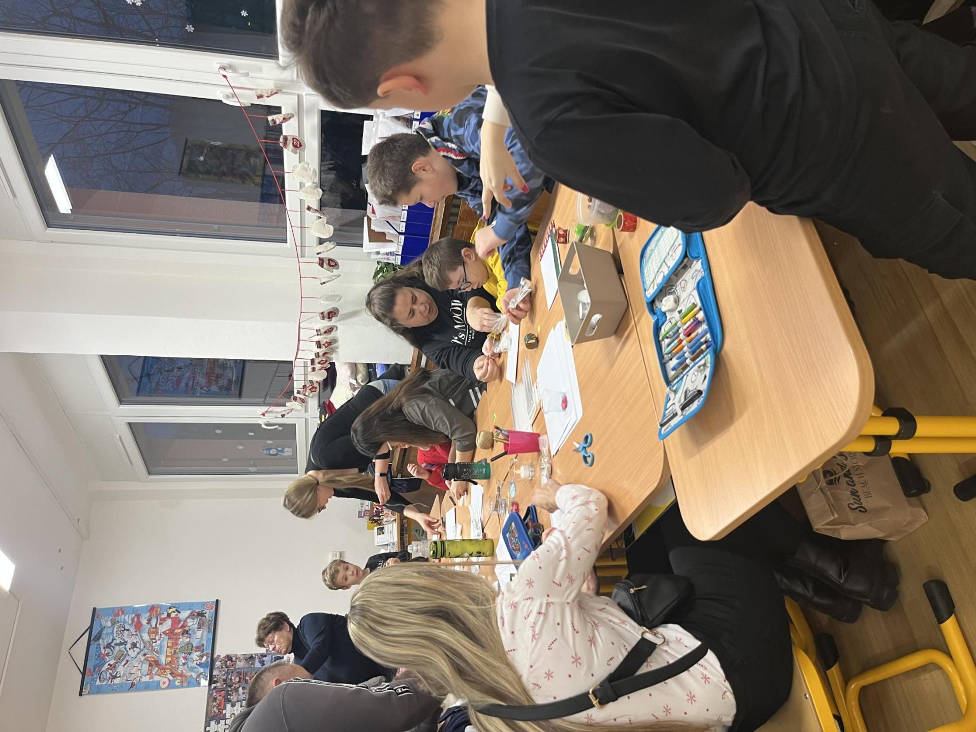 Ve čtvrtek v podvečer jsme si užili krásný předvánoční čas společně s dětmi i rodiči. V dílničkách jsme vytvářeli vánoční tvoření: vyráběli jsme vánoční přání - sněhuláčka ze svíček a stromeček jako dekoraci nebo ozdobu. Do školy přišlo spoustu dětí a rodičů, kteří zároveň přinesli i drobné občerstvení. Celé odpoledne proběhlo v příjemné atmosféře a moc jsme si ho užili.