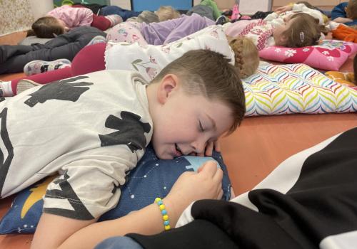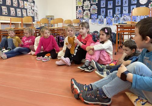 Dnešní dopoledne jsme strávili v příjemné atmosféře preventivního programu s názvem Kamarádem být, kamarády mít. Společně s liškou a medvědem jsme se vydali na dobrodružnou cestu lesem, během které jsme objevovali, co všechno patří k pravému kamarádství.