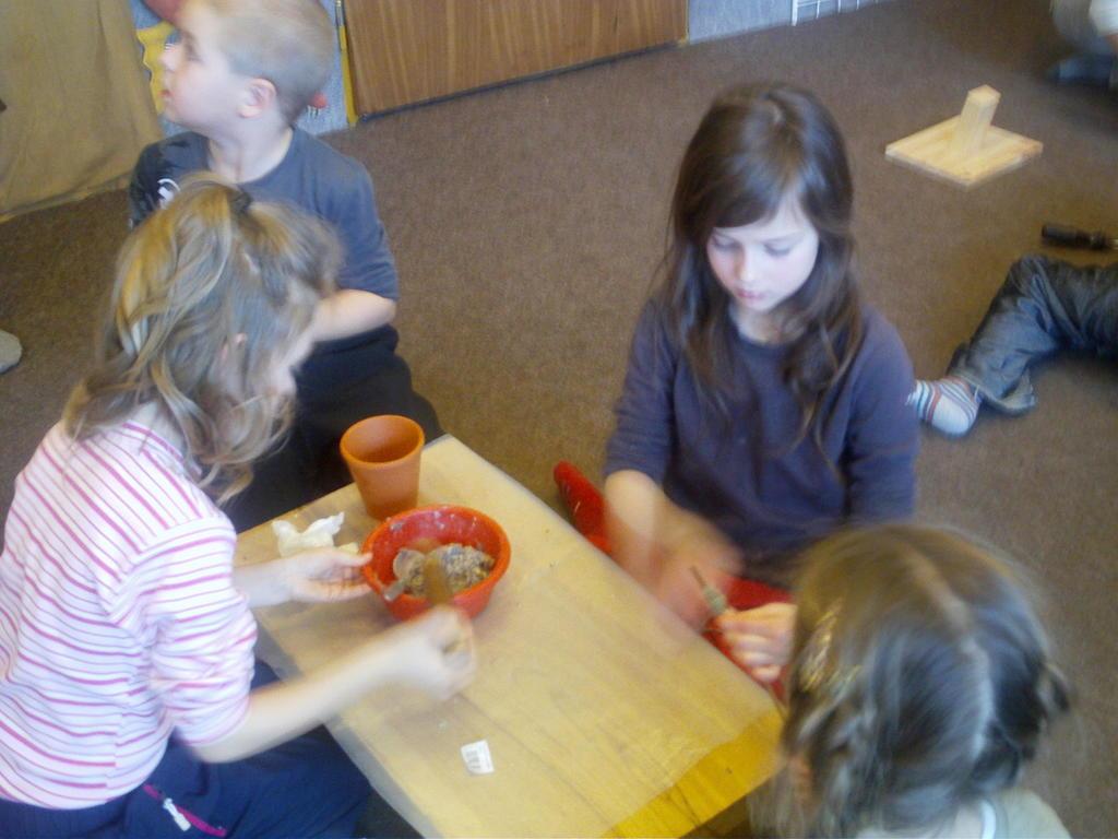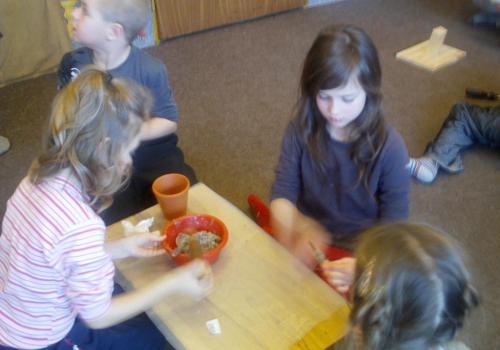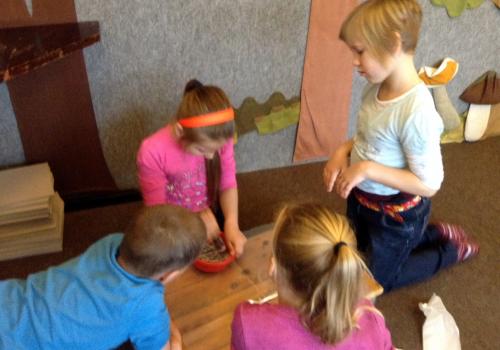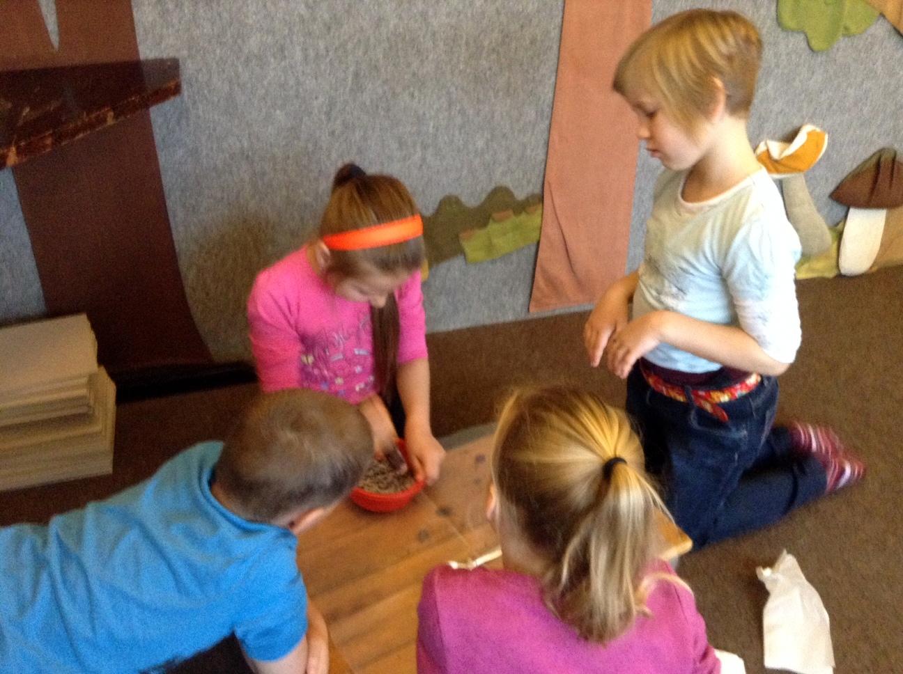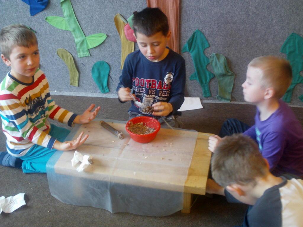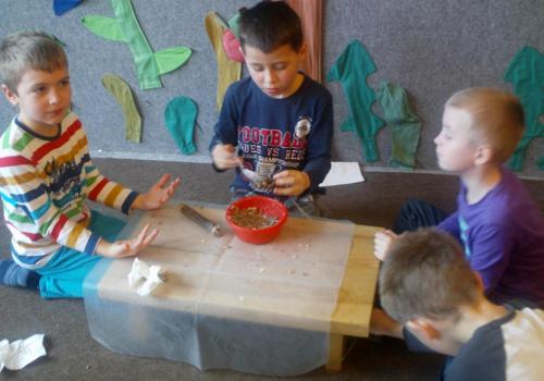 V Ekocentru jsme vyrobili ptáčkům krmítka ze šišek, z květináče a dokonce i ze dřeva