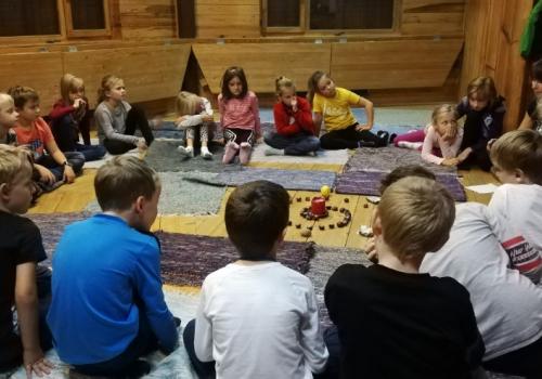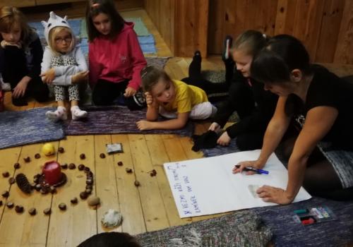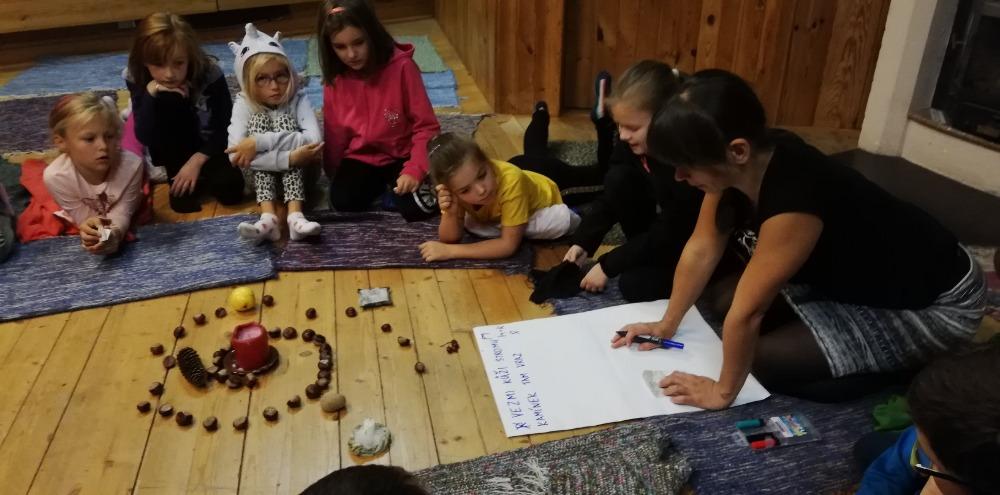 Tentokrát si děti hrály s materiály získanými v lese, zamyslely se nad lesem jako domovem různých pohádkových a mytických bytostí, zkusily se alespoň v představách vrátit do dob skřítků, elfů a víl.
