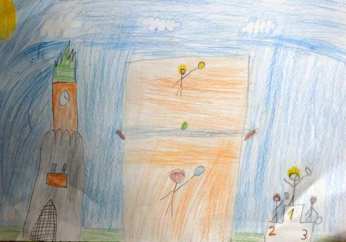 To bylo téma, které jsme měli nakreslit.Dost těžké Nejlepší obrázky jsme poslali do soutěže. Možná budou některé vystavené v AFI paláci. Kdo ví?