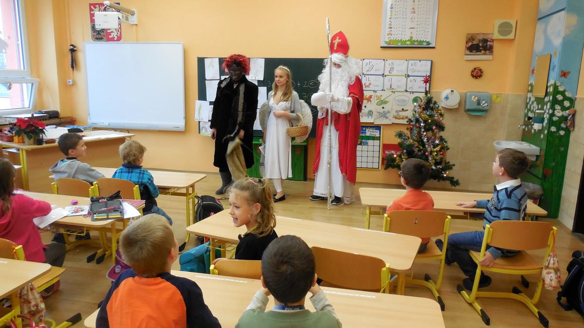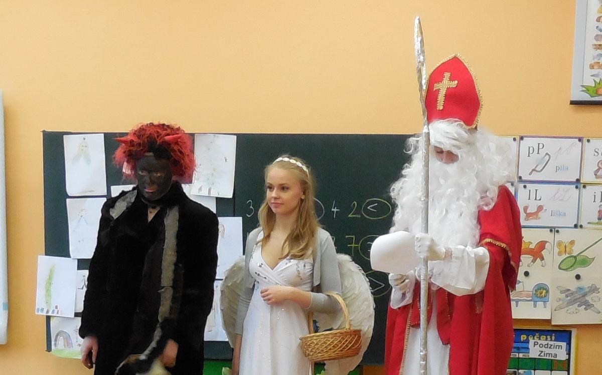 Měli jsme velký strach z čerta, který doprovází Miuláše. Tak jsme se na něj nachystali. Přeci jen jsme chtěli od Mikuláše dostat nějakou tu dobrotu, tak musel přijít i s čertem! Přestěhovali jsme lavice, aby se na nás čert nedostal a když zabušil na dveře, zalezli jsme pod lavice. Odvážlivci měli za úkol, zjistit, jestli má čert kopyto nebo obyčejné boty - podle toho my totiž poznáme, jestli je čert opravdický nebo jen převlečený.