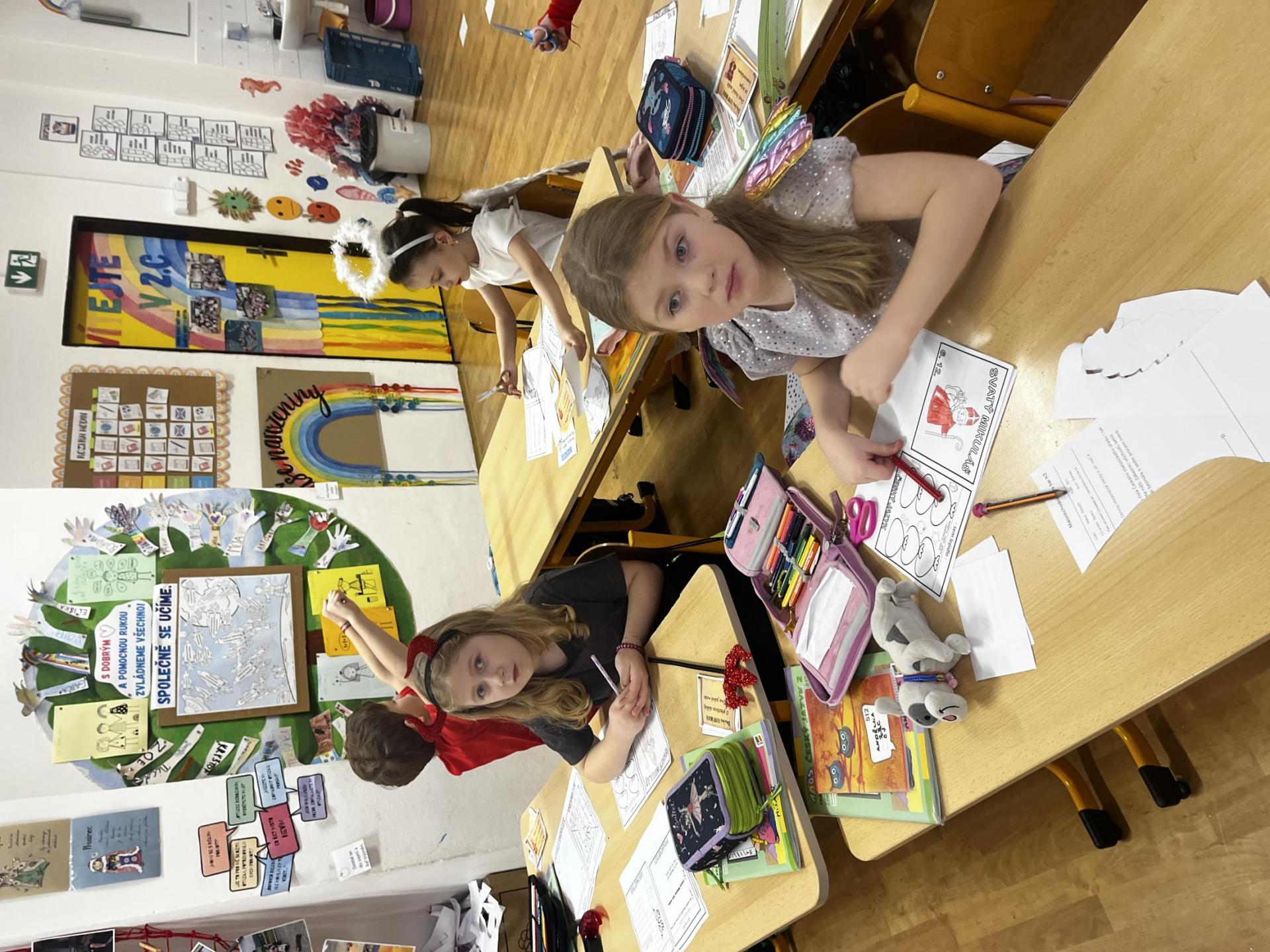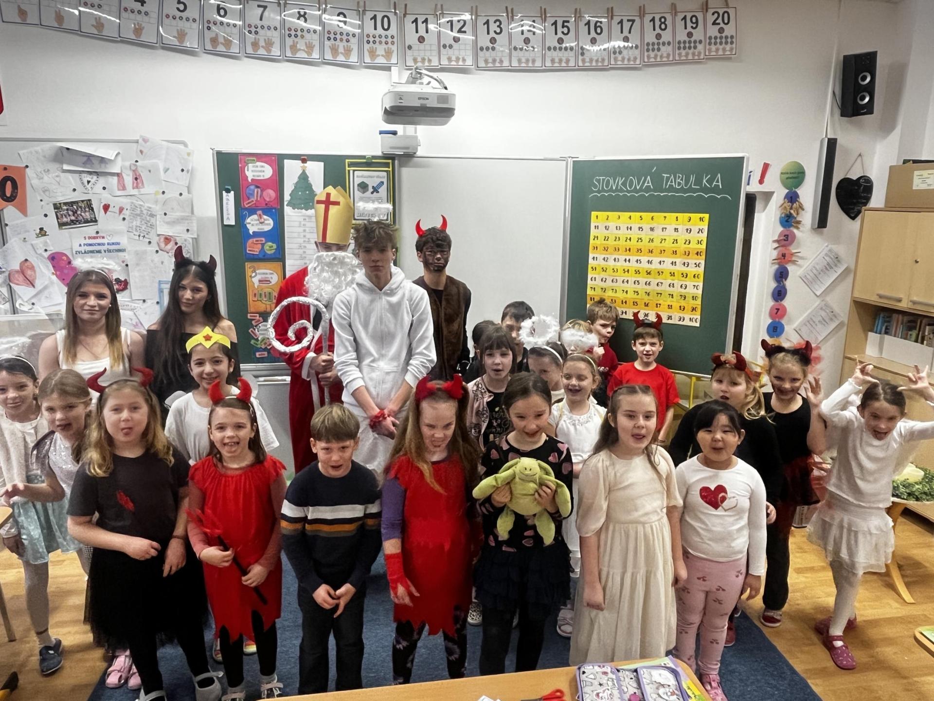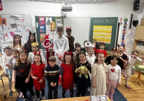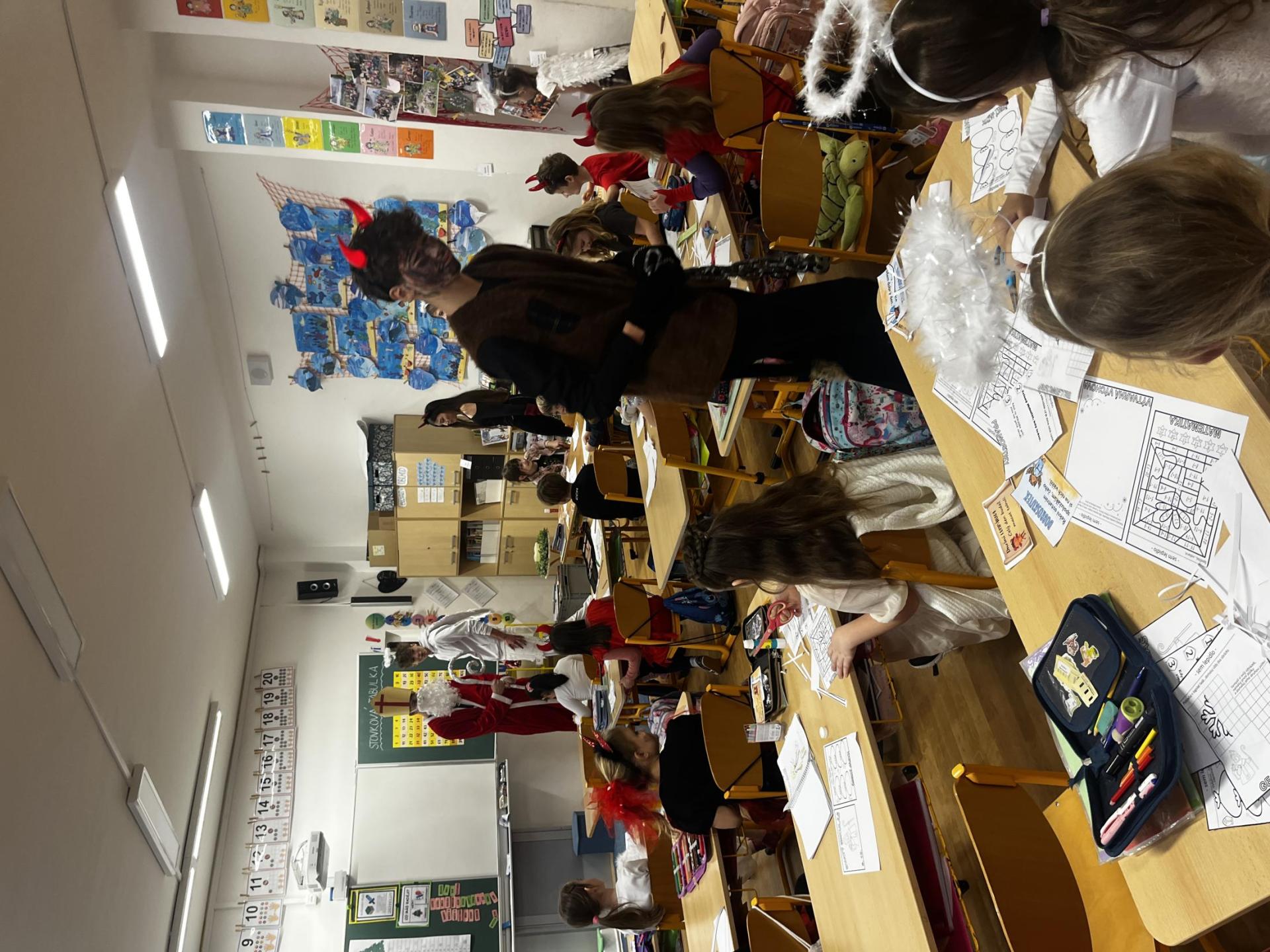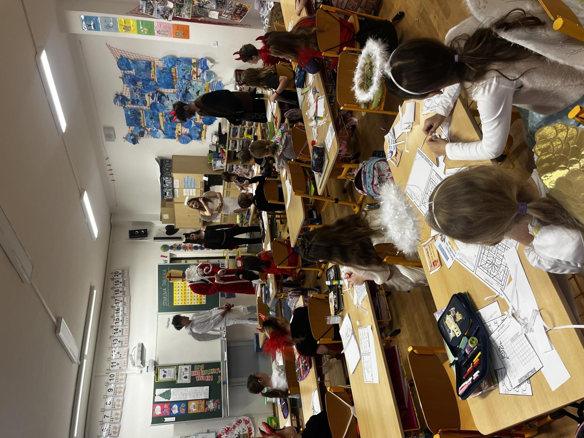 Povídali jsme si o svatém Mikulášovi. Plnili mikulášské úkoly, povídali si, co znamenají pranostiky a nakonec nás i sám Mikuláš navštívil.