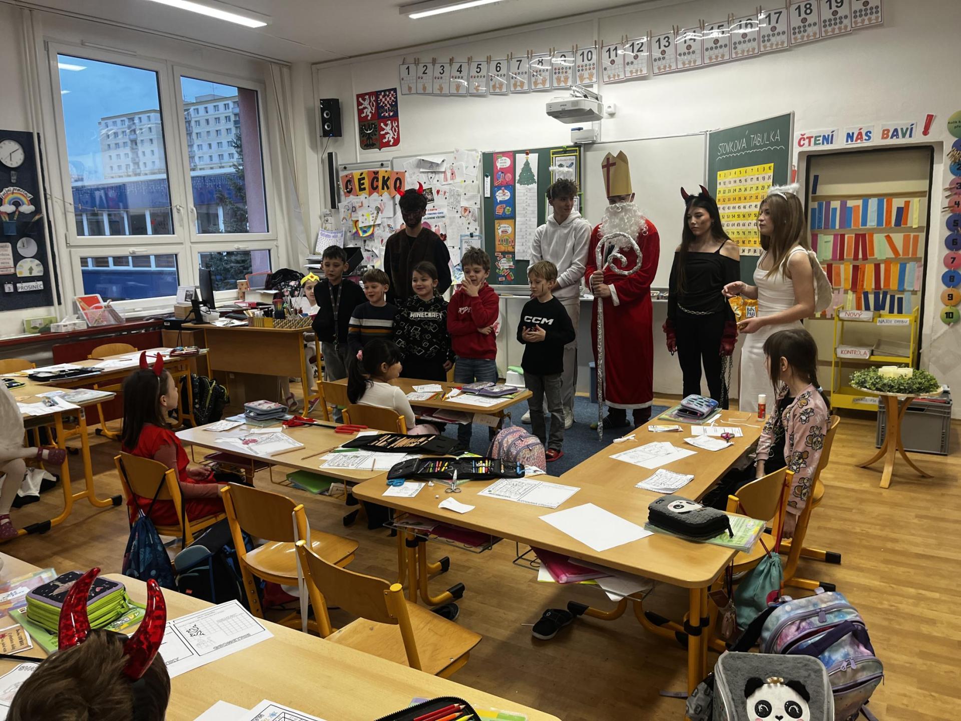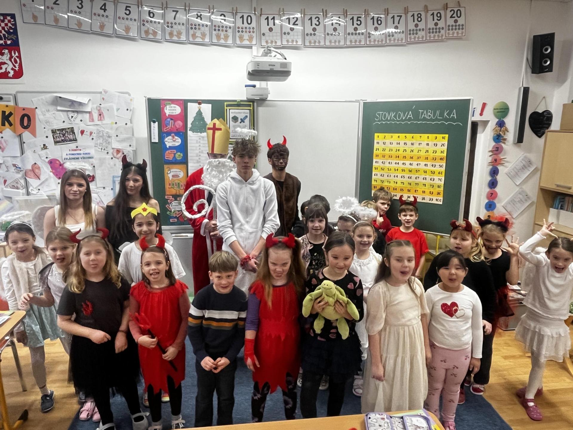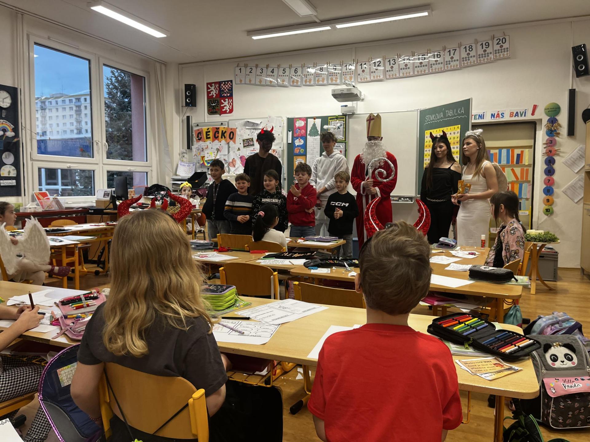Povídali jsme si o svatém Mikulášovi. Plnili mikulášské úkoly, povídali si, co znamenají pranostiky a nakonec nás i sám Mikuláš navštívil.