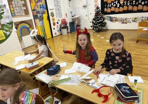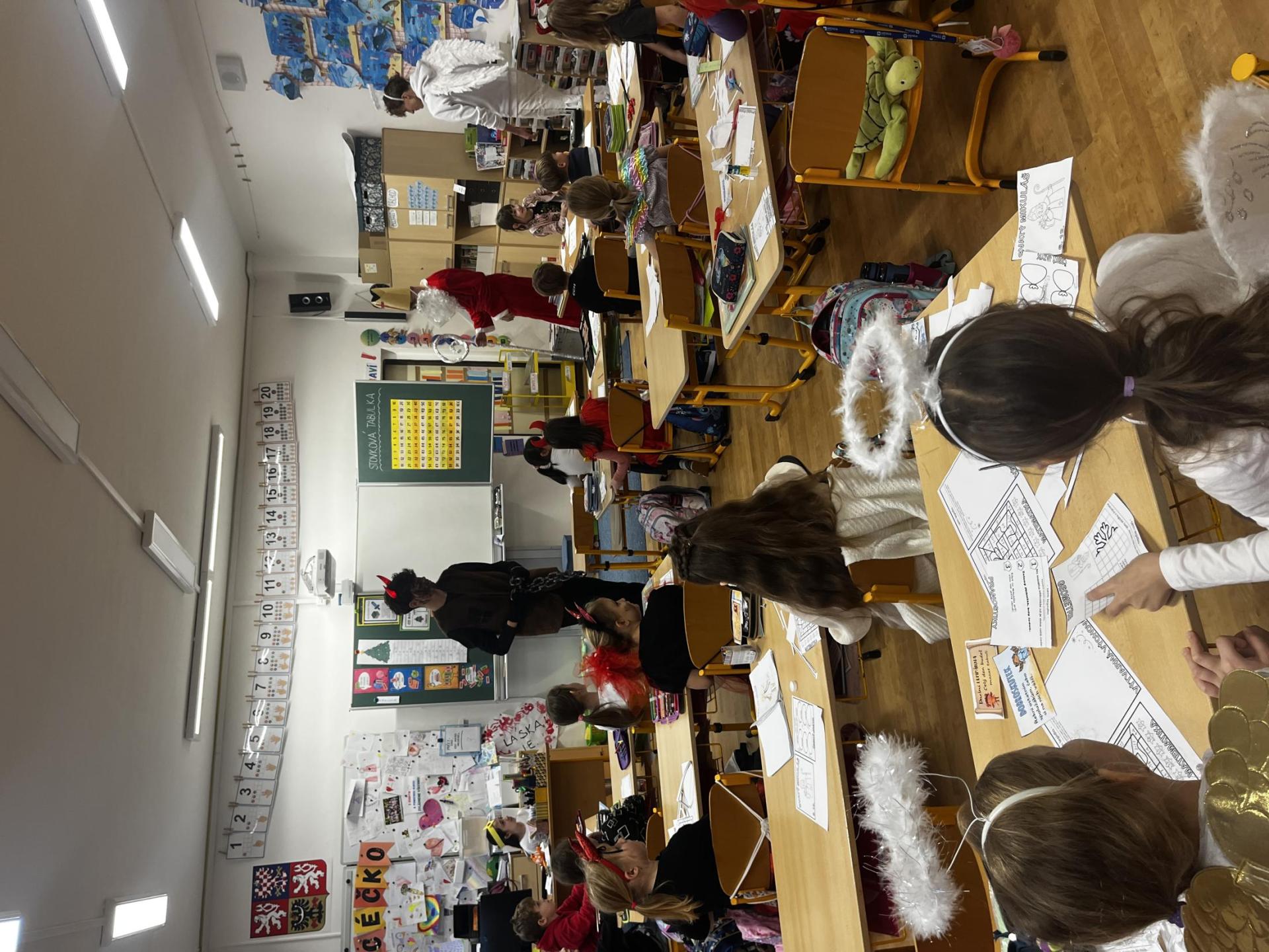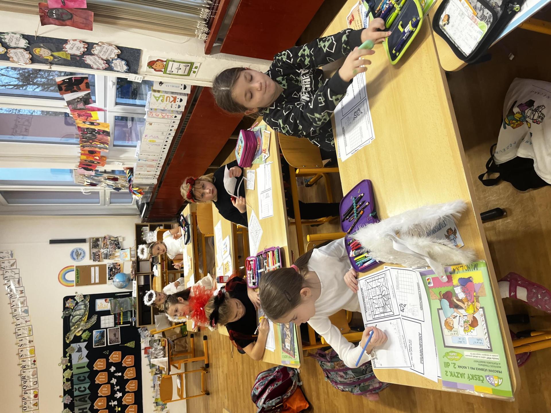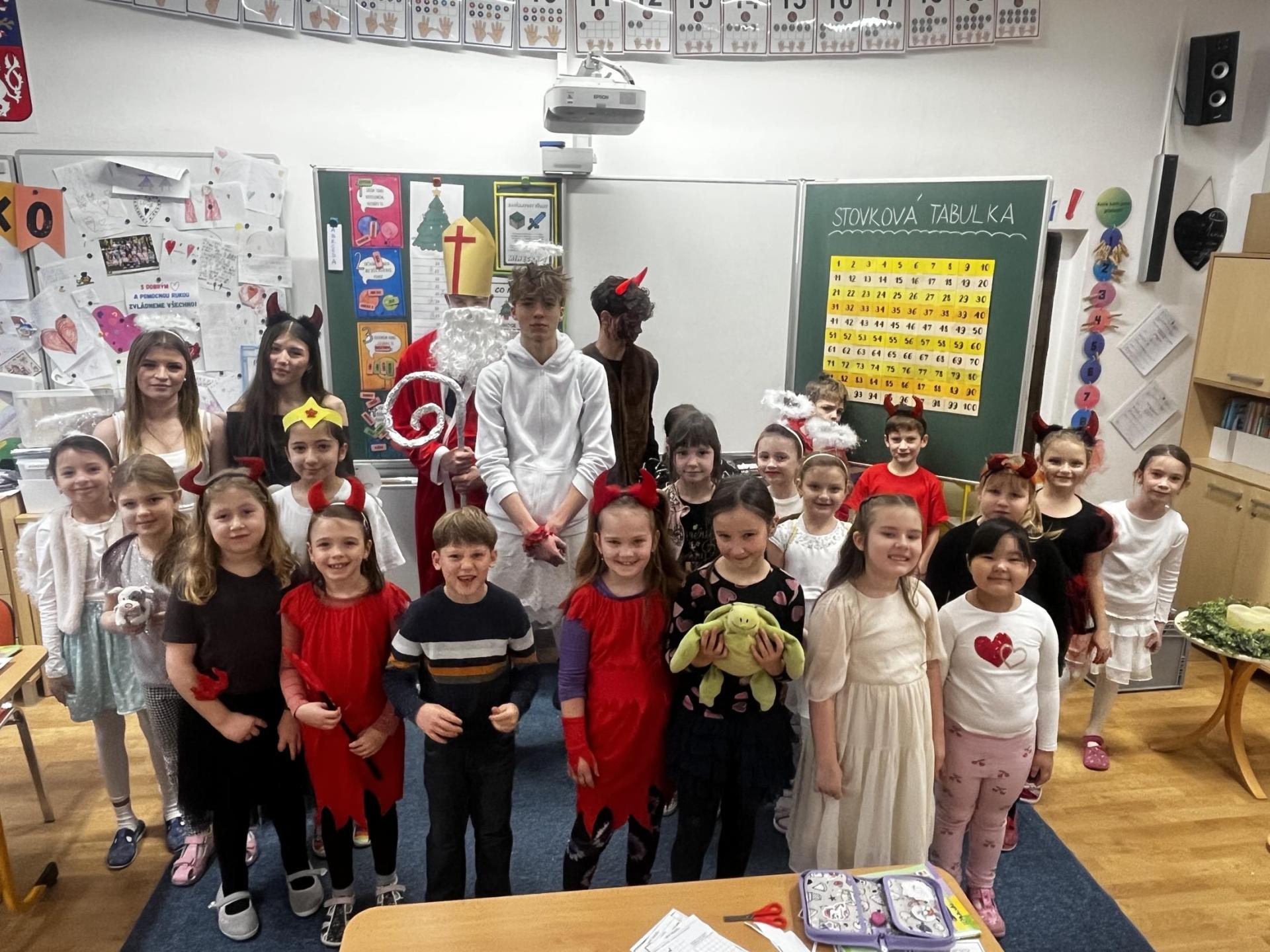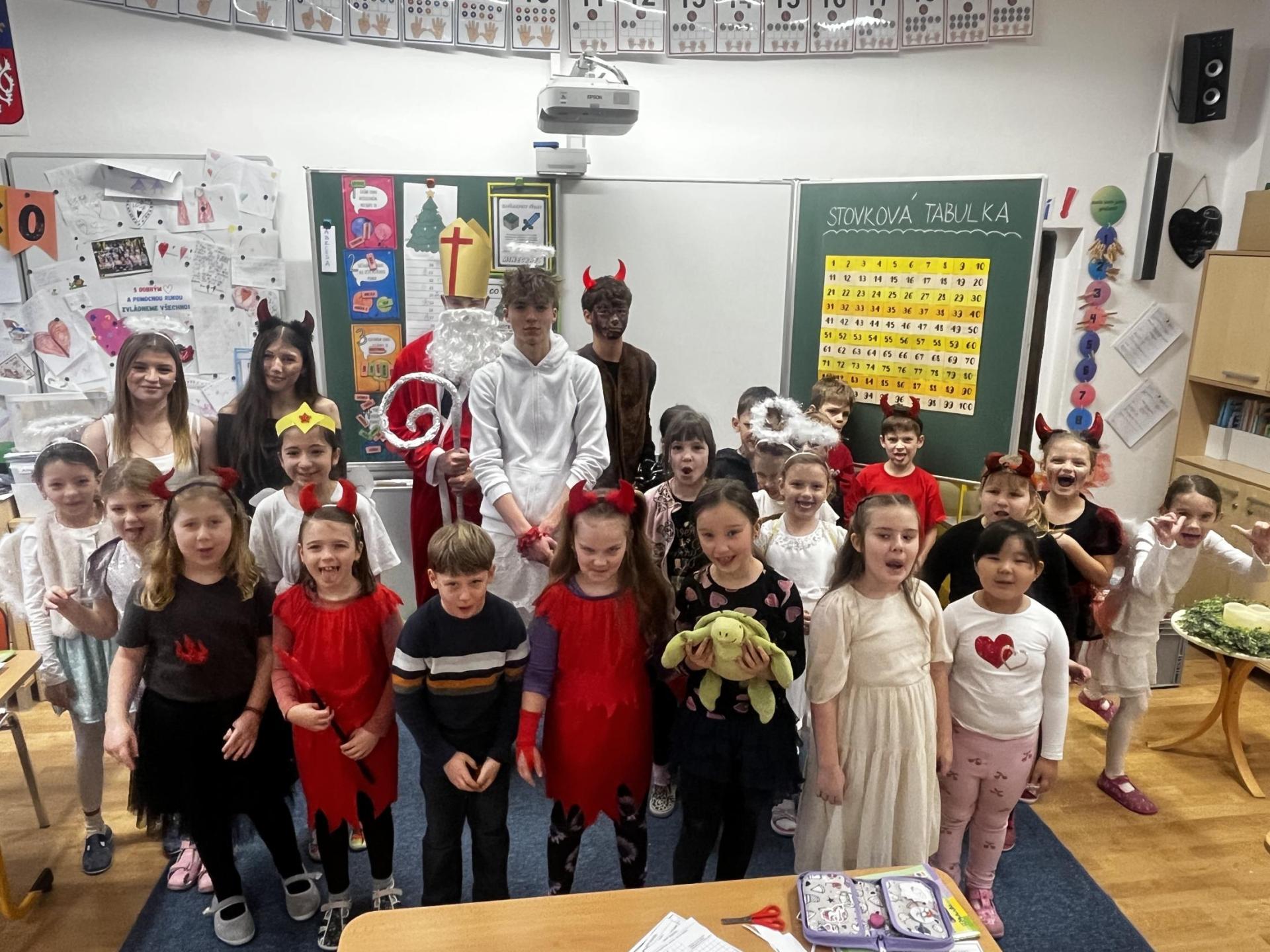 Povídali jsme si o svatém Mikulášovi. Plnili mikulášské úkoly, povídali si, co znamenají pranostiky a nakonec nás i sám Mikuláš navštívil.
