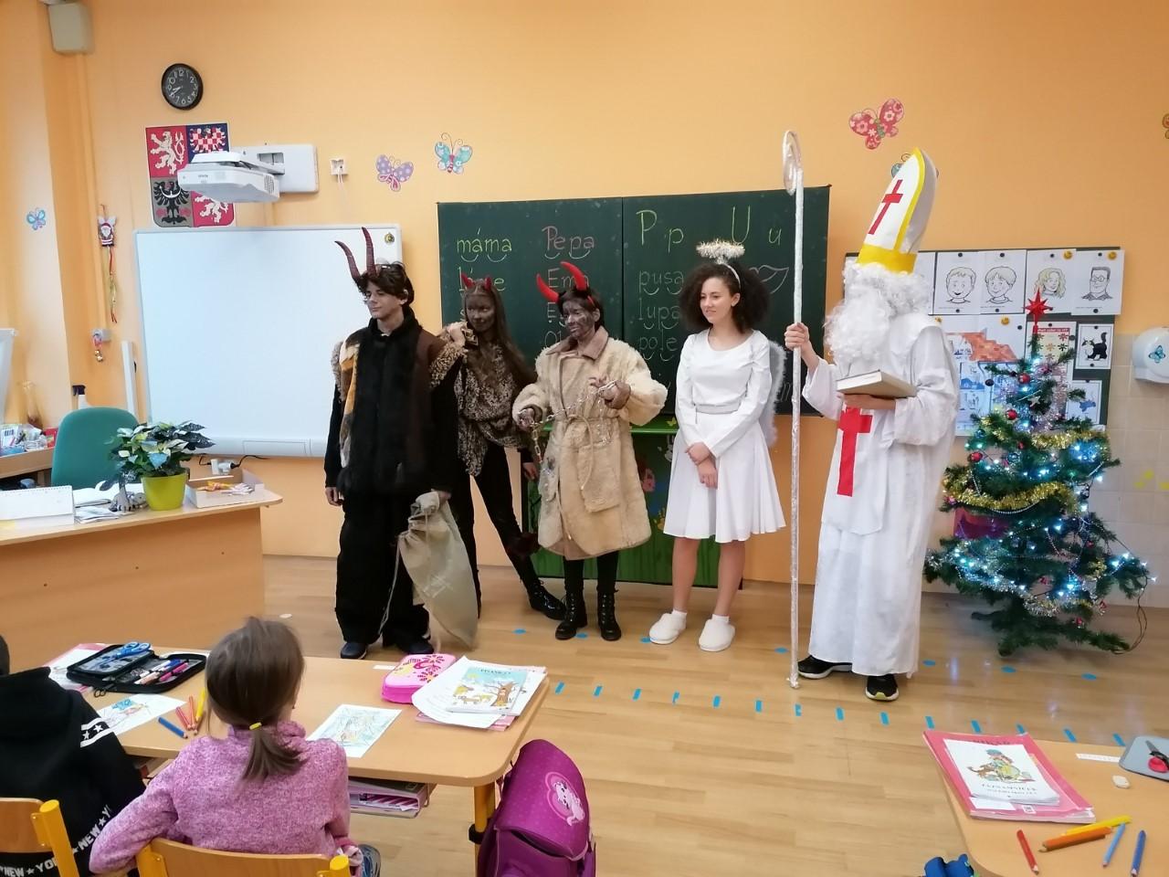 Ve čtvrtek 5. 12. 2019 proběhla ve škole mikulášská nadílka. Mikulášové jako vždy chválili, ale je pravda, že čertíci měli v některých třídách také dost práce.