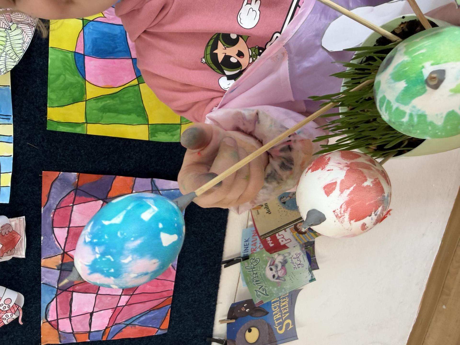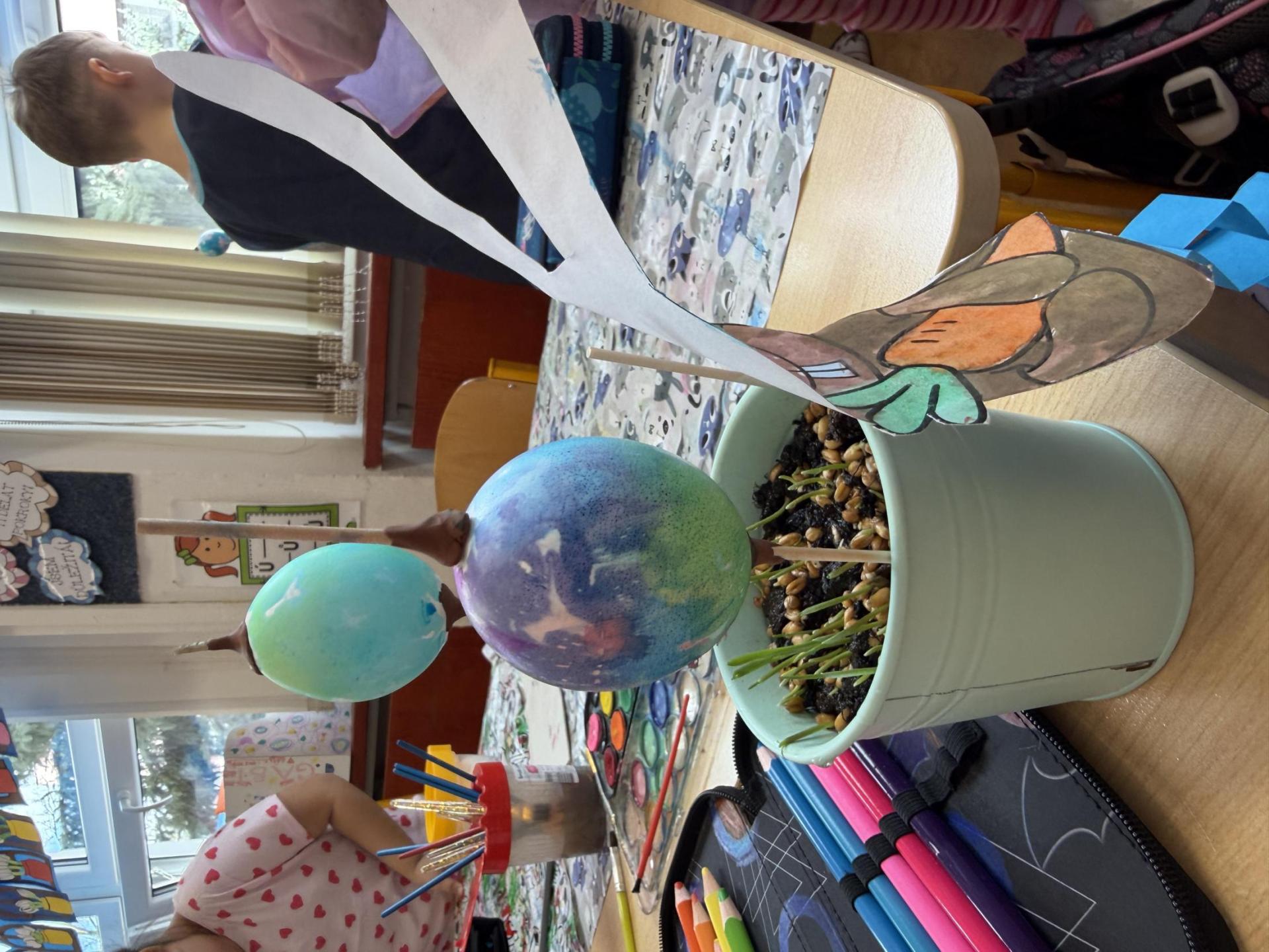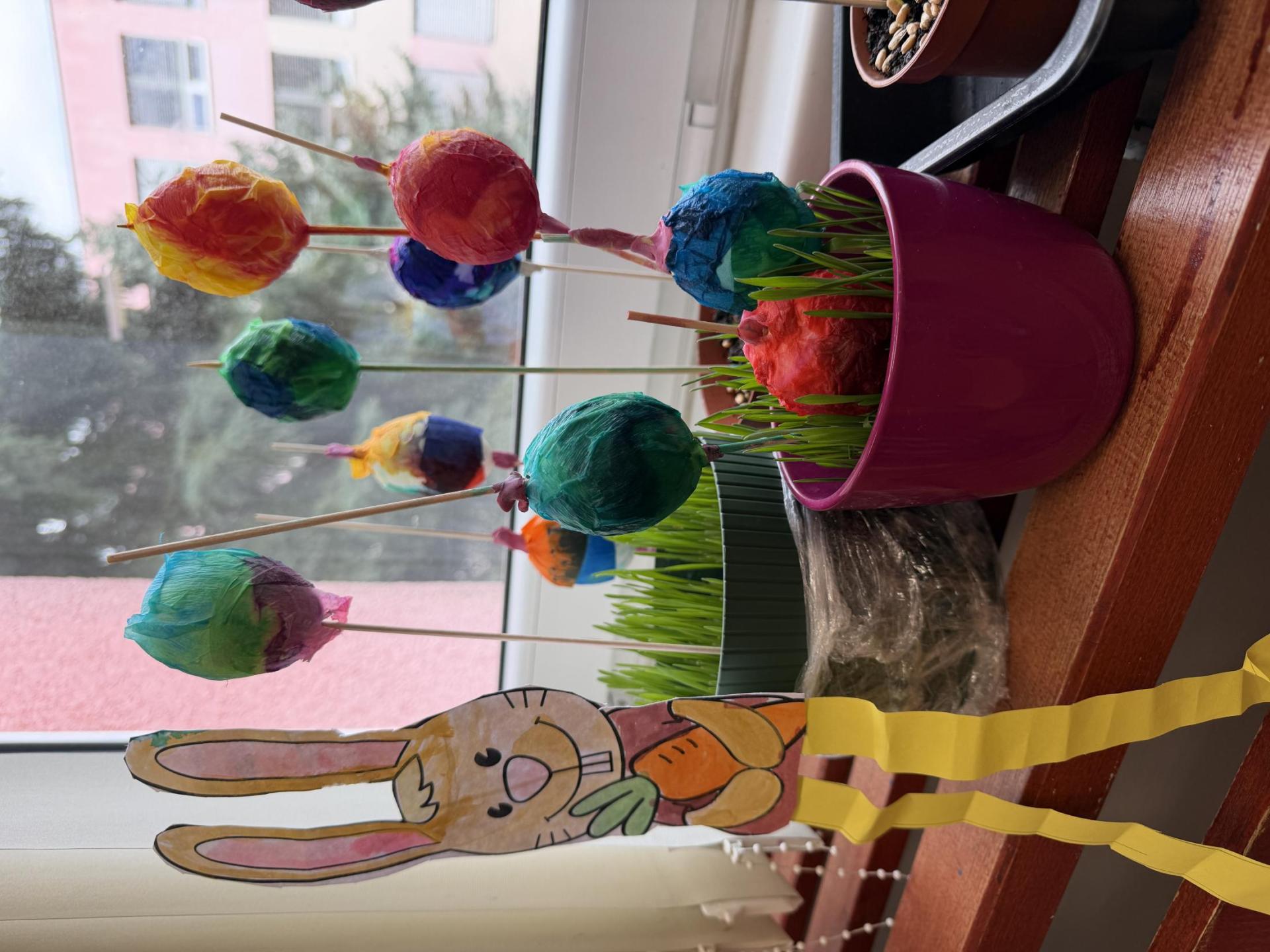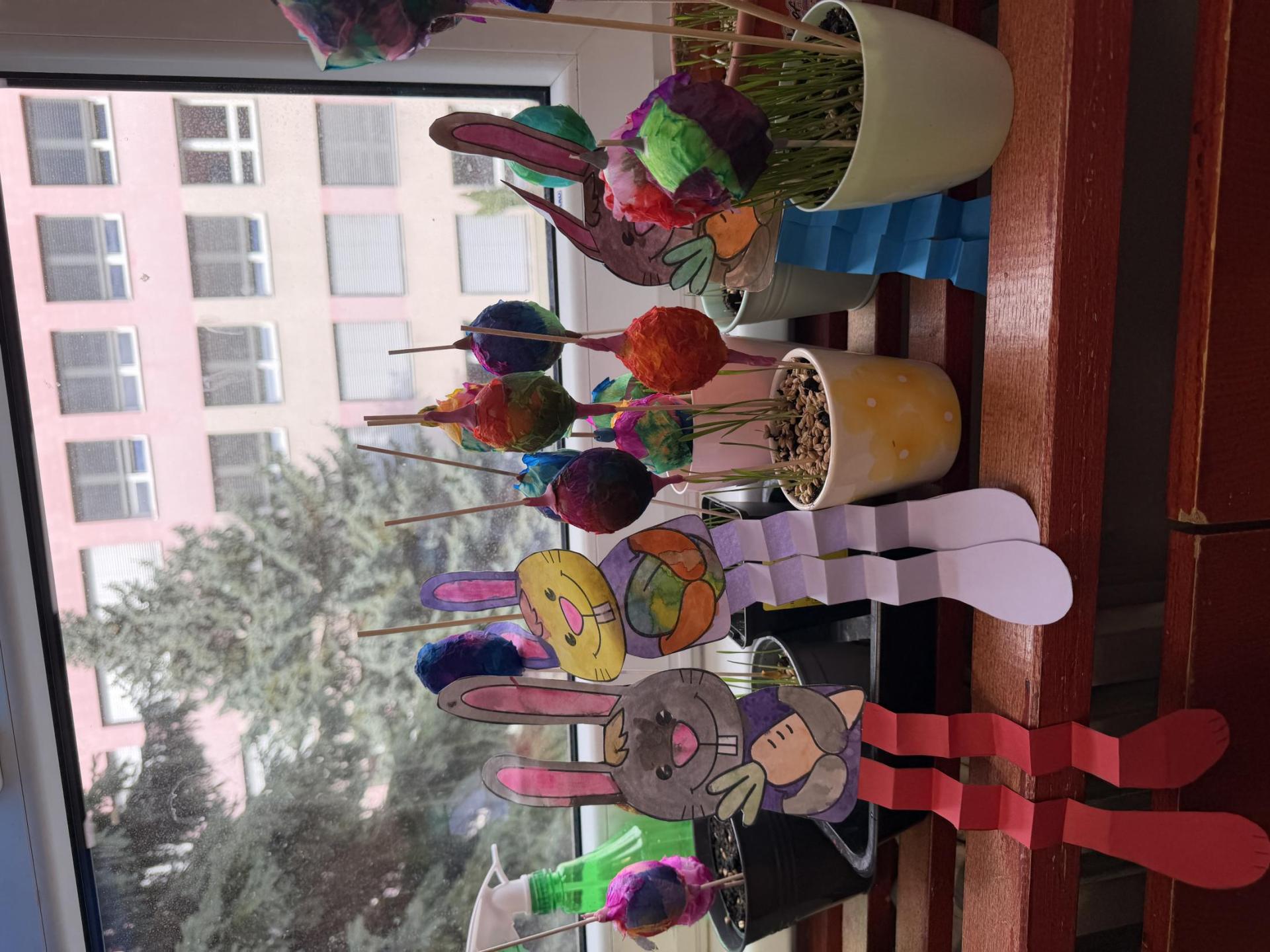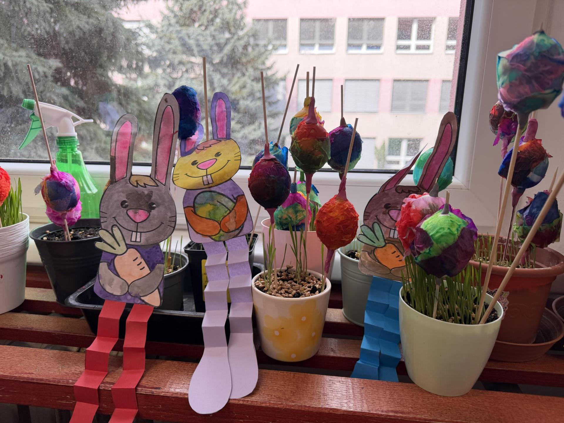 Modré pondělí, Žluté úterý a středa? Ta byla Škaredá, ale my si ji udělali veselou. Každý měl oblíbenou barvu, barvili jsme vajíčka, osení nám naklíčilo, vyrobili jsme zajíčka a tak mohou Velikonoce začít.