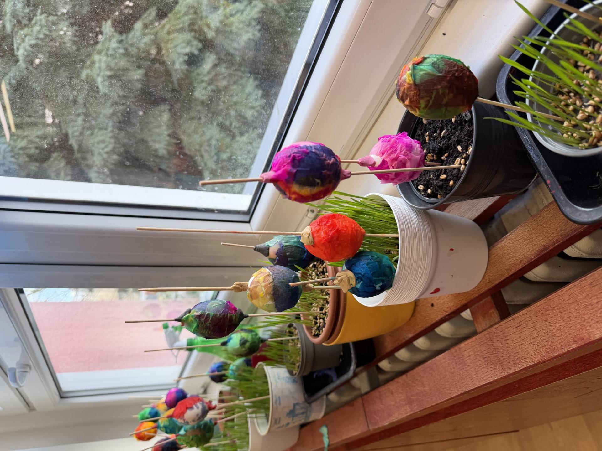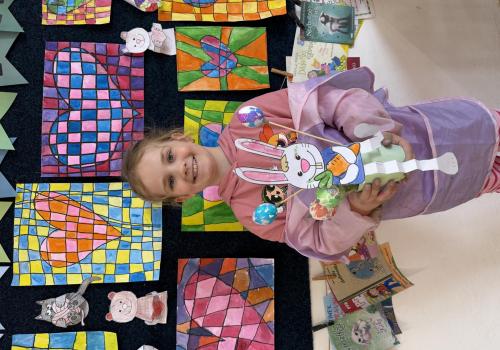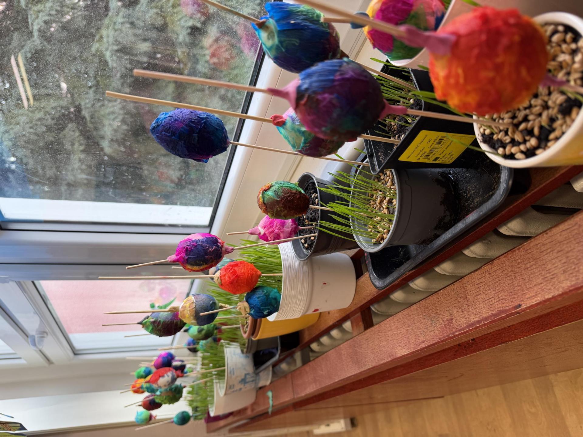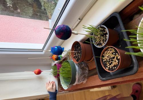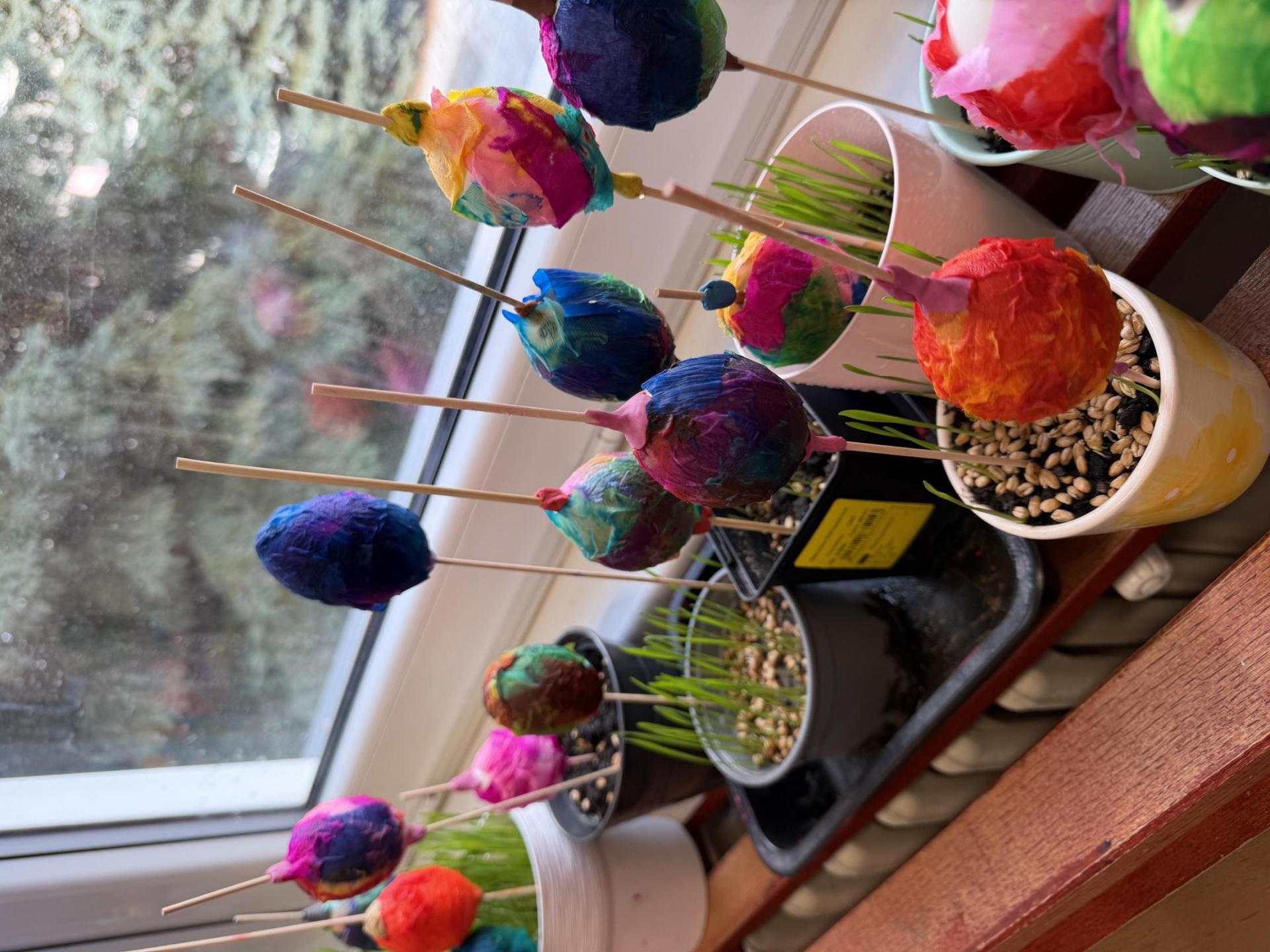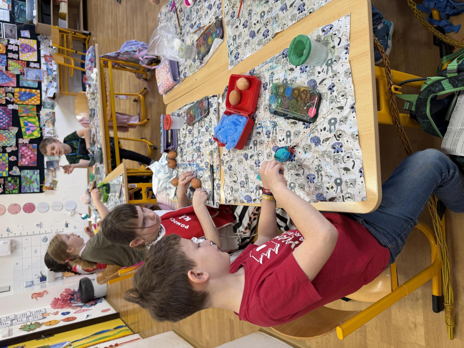 Modré pondělí, Žluté úterý a středa? Ta byla Škaredá, ale my si ji udělali veselou. Každý měl oblíbenou barvu, barvili jsme vajíčka, osení nám naklíčilo, vyrobili jsme zajíčka a tak mohou Velikonoce začít.