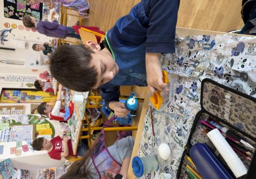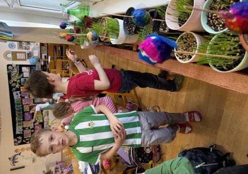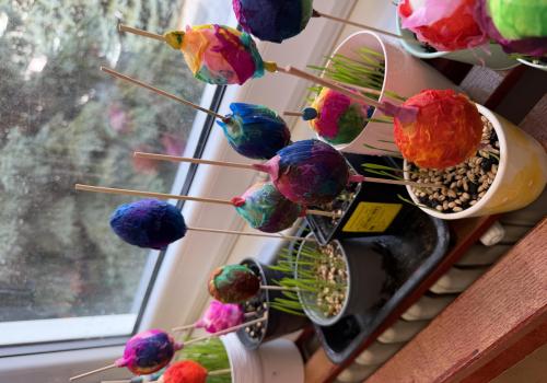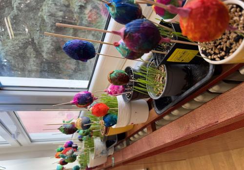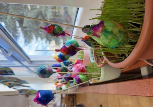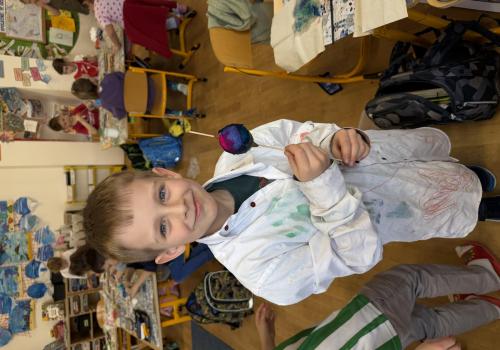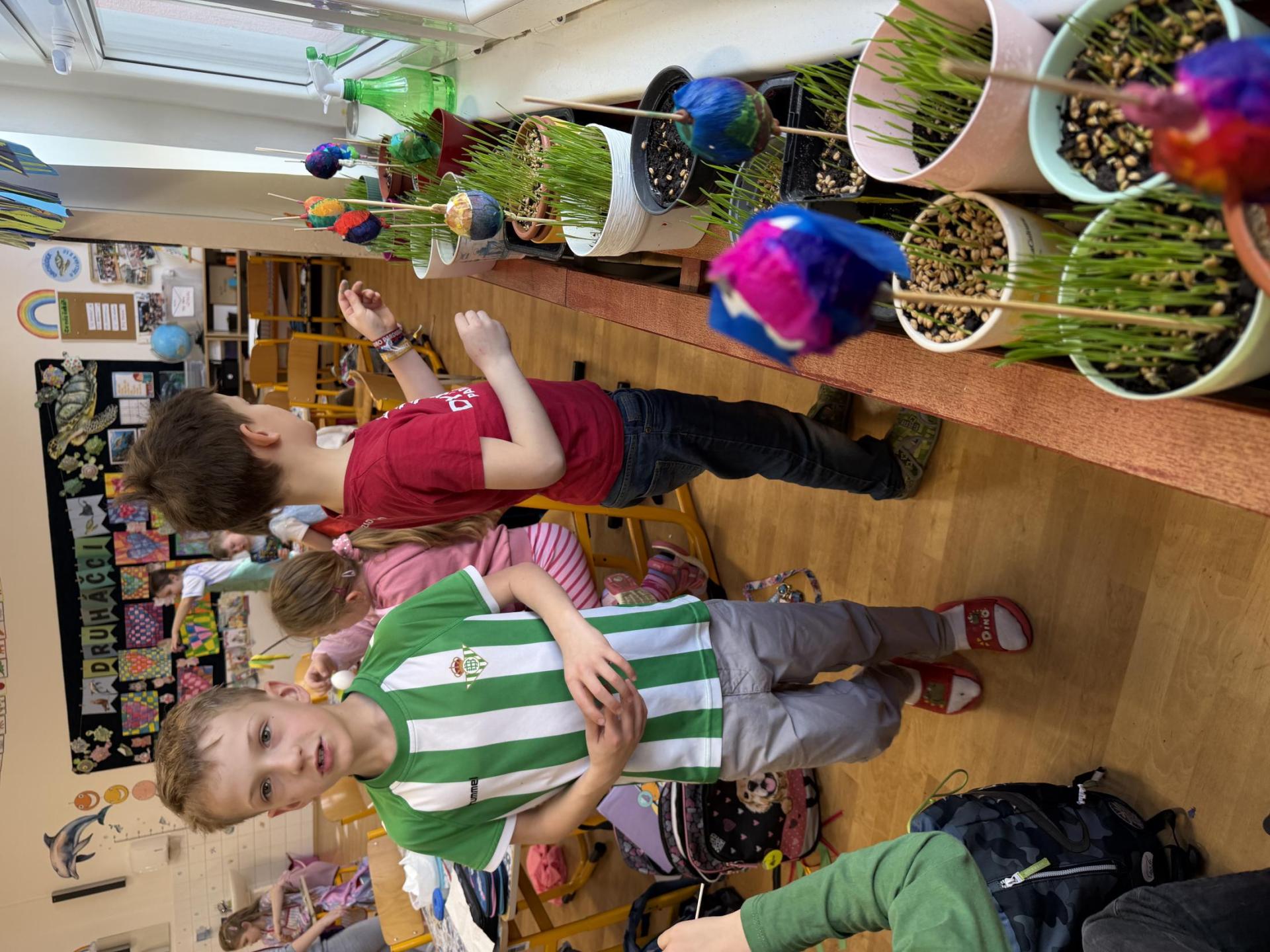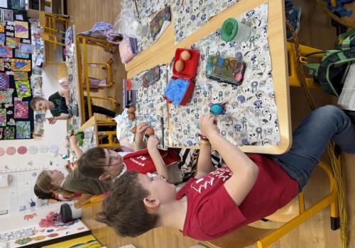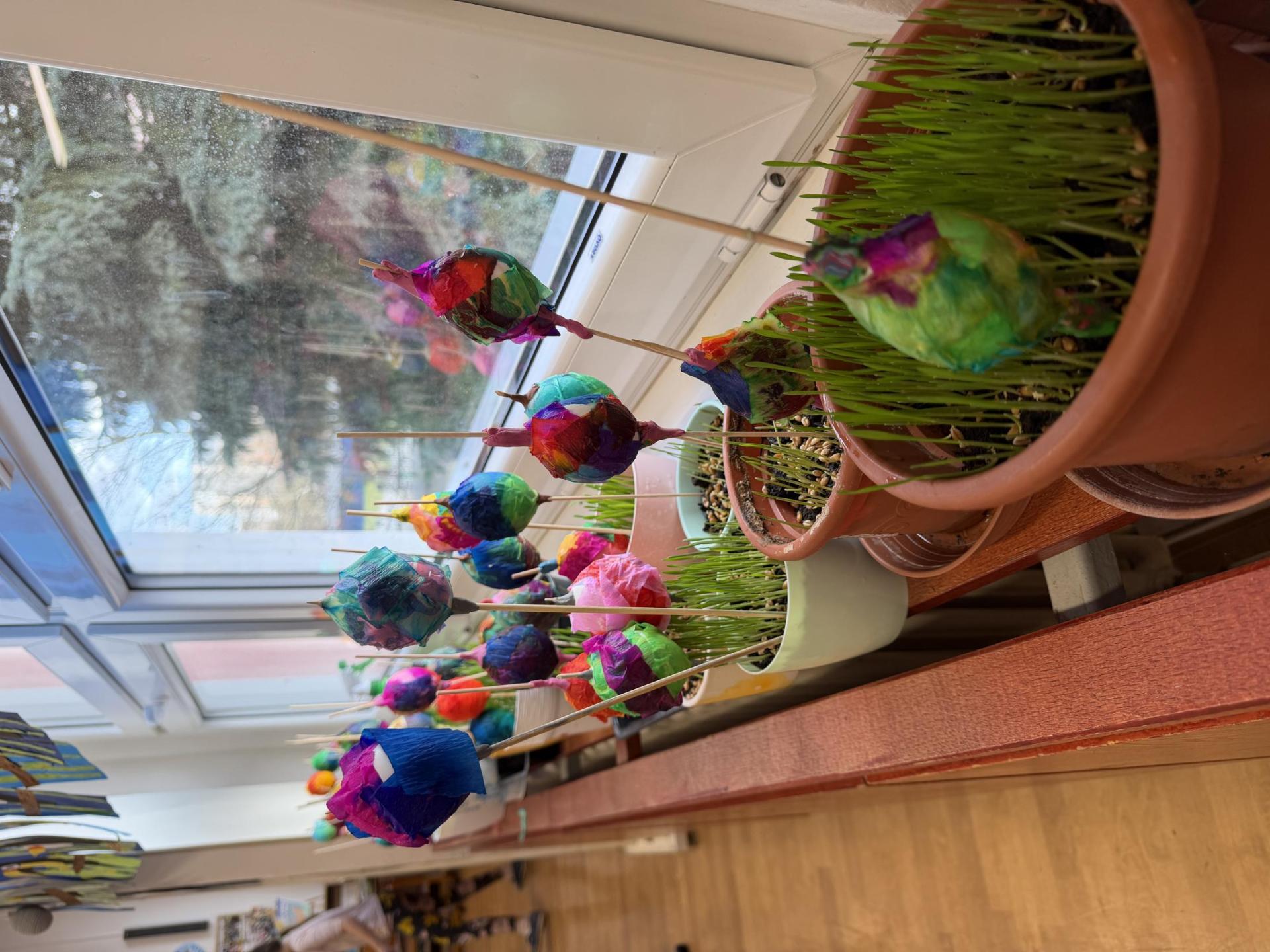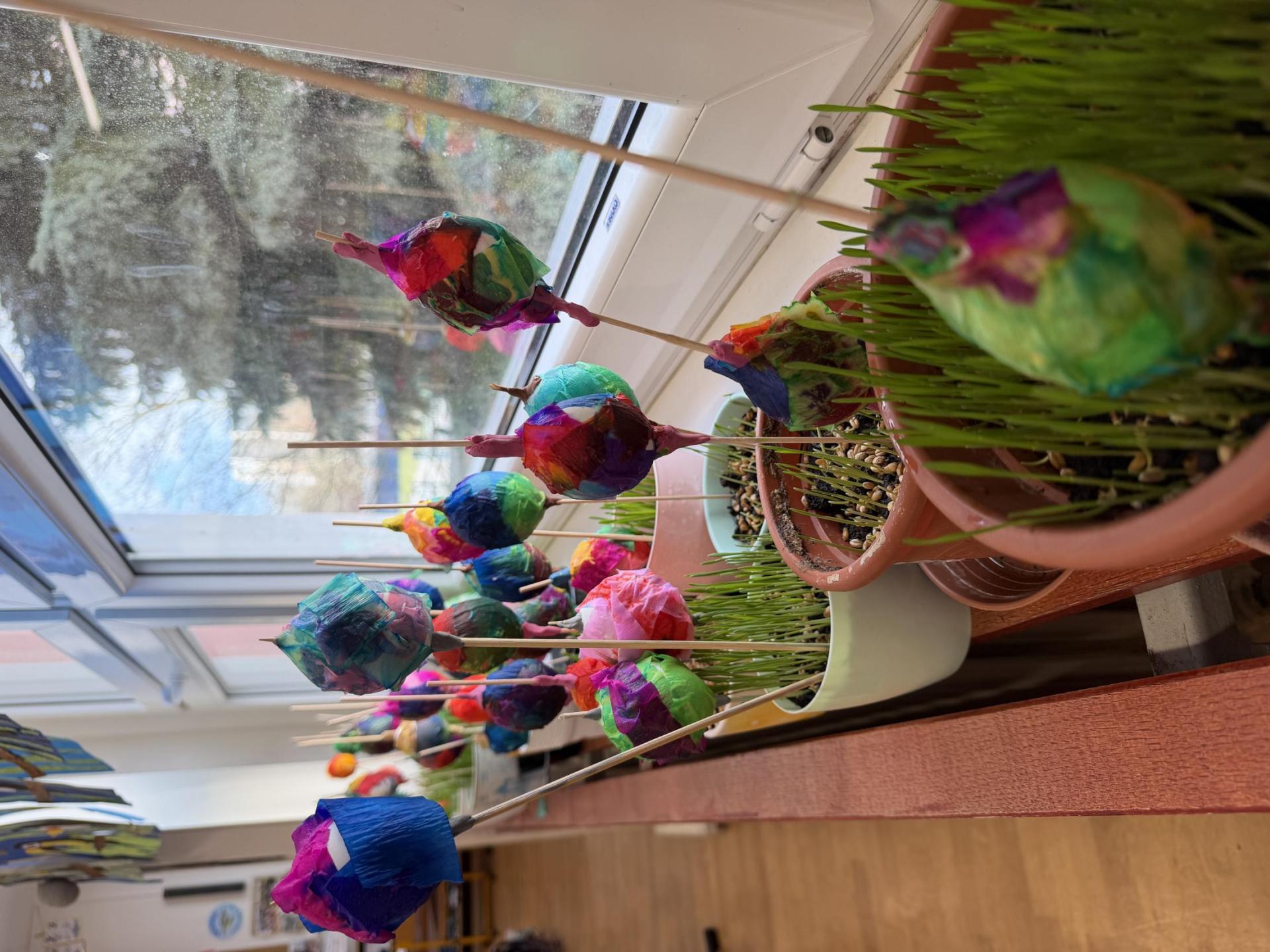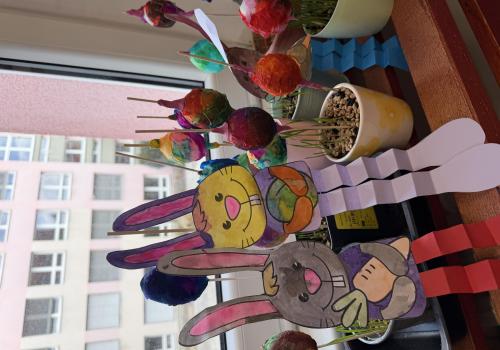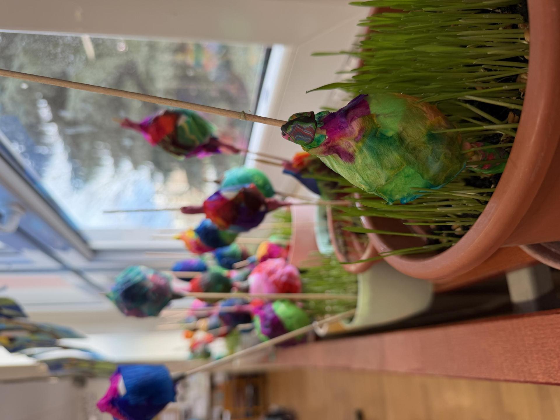 Modré pondělí, Žluté úterý a středa? Ta byla Škaredá, ale my si ji udělali veselou. Každý měl oblíbenou barvu, barvili jsme vajíčka, osení nám naklíčilo, vyrobili jsme zajíčka a tak mohou Velikonoce začít.