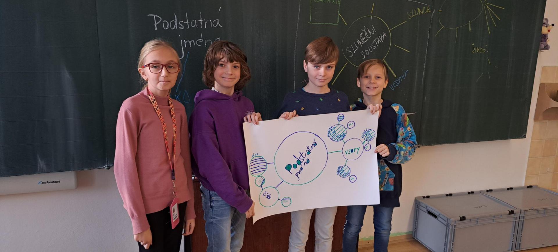 Dnes jsme si říkali, co jsou to myšlenkové mapy. Děti je poté vytvořily, tématem byla "podstatná jména".