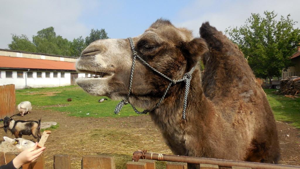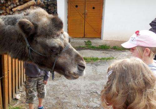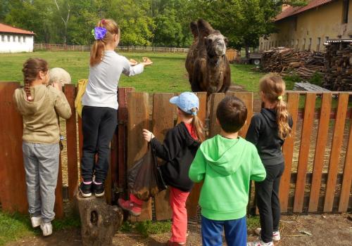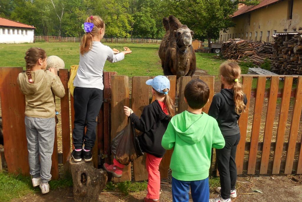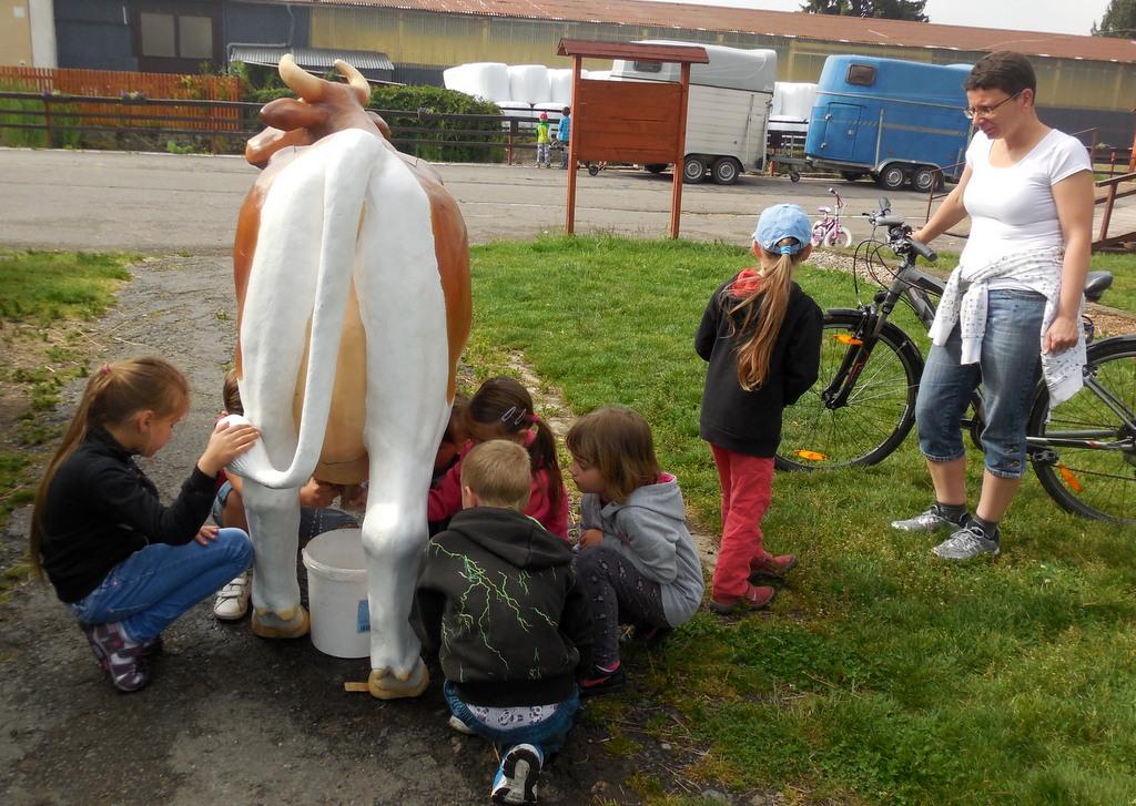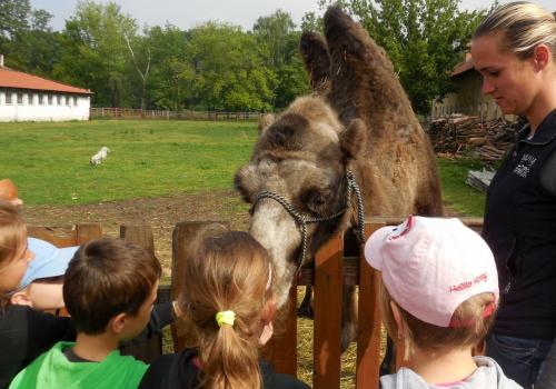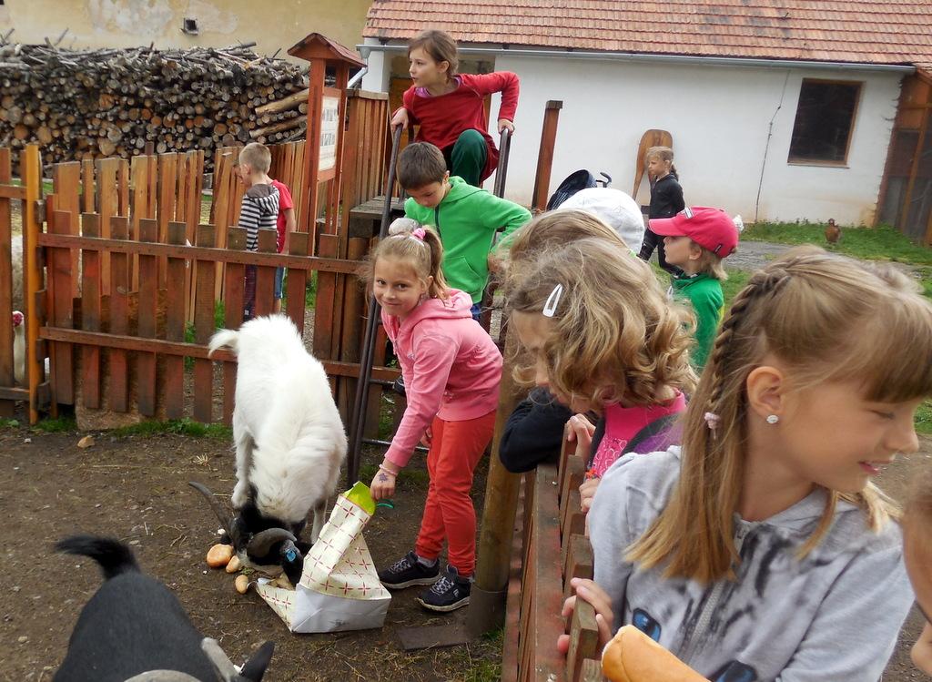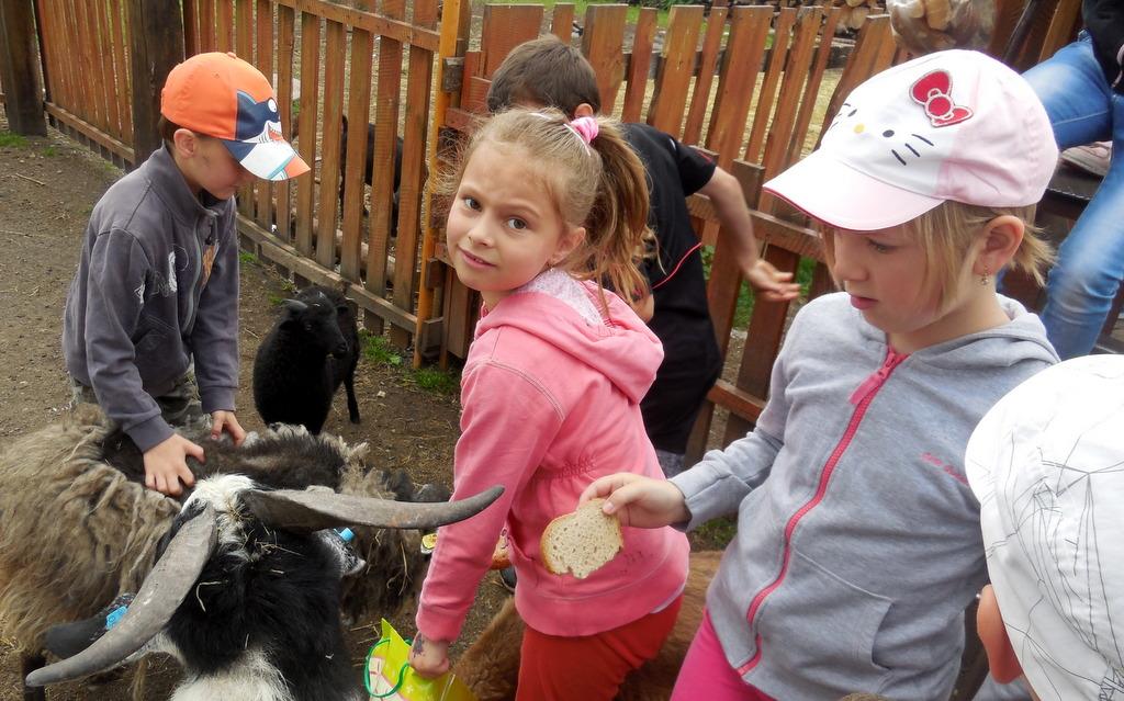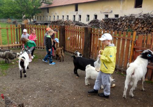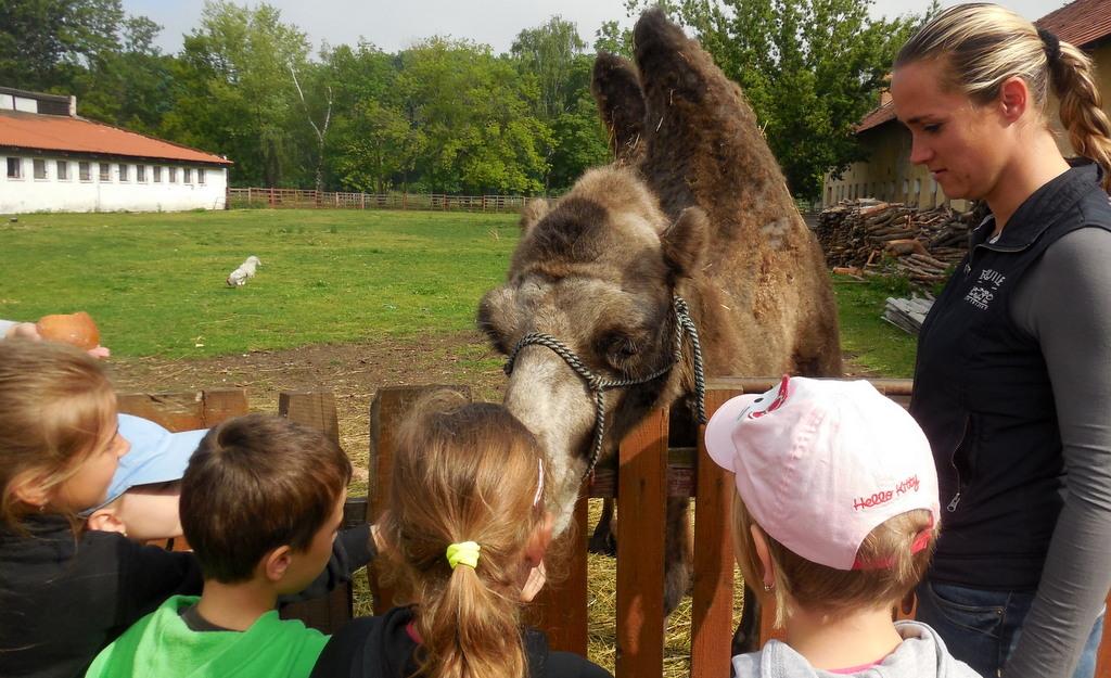 V Apolence jsme si se zvířátky užili moc prima dopoledne. Podojili jsme krávu - naštěstí byla klidná a držela, viděli jsme kůzlátko, telátko, oslí hříbě, spoustu selátek a taky velblouda Abdula.