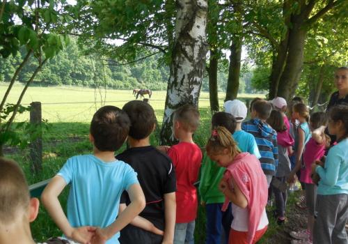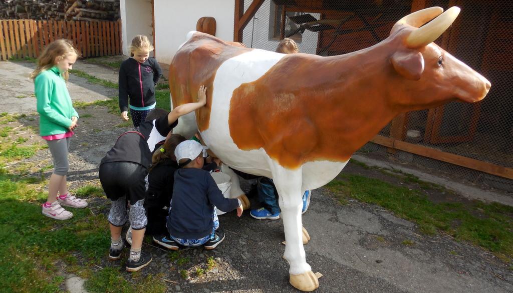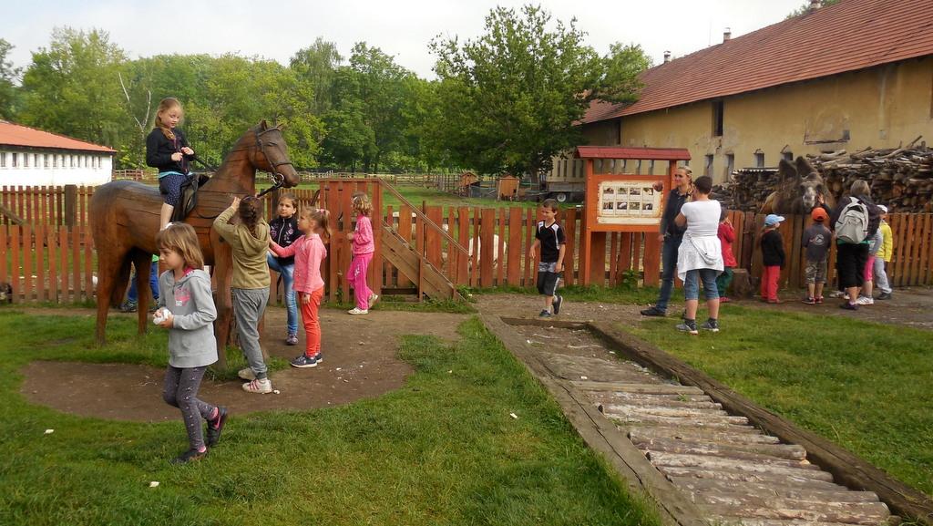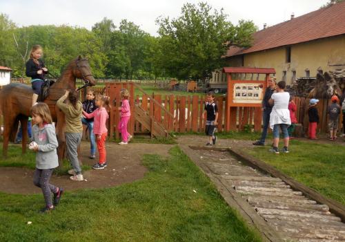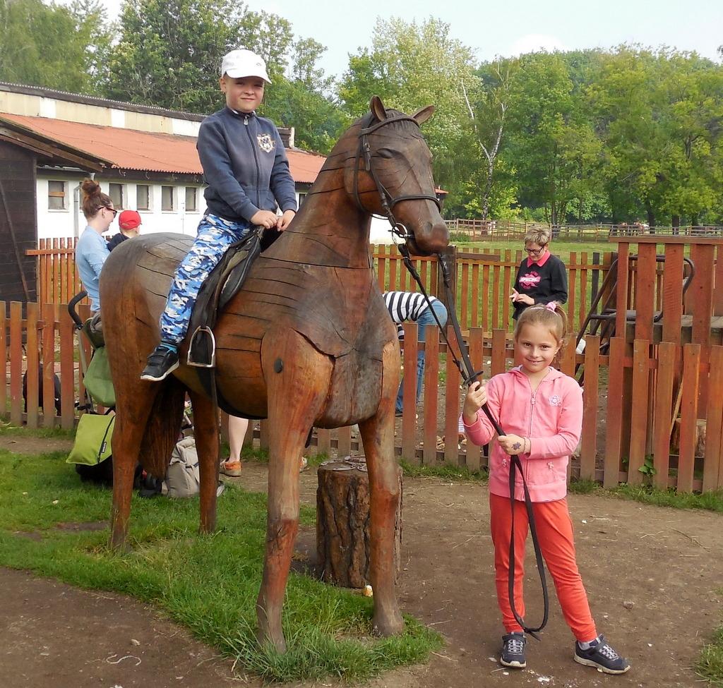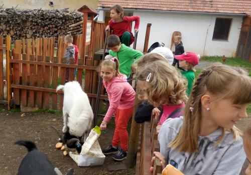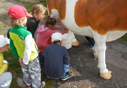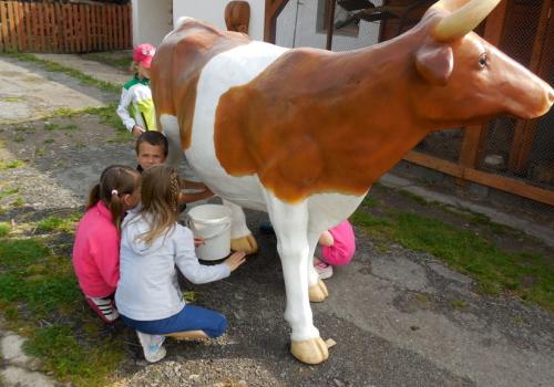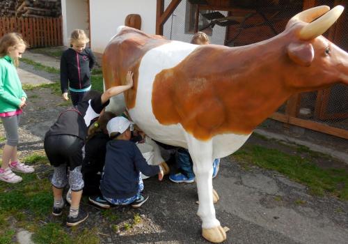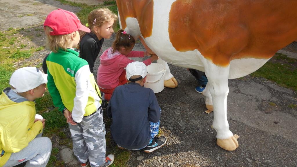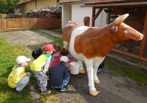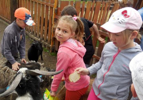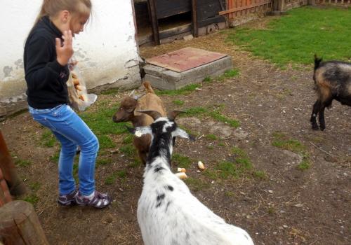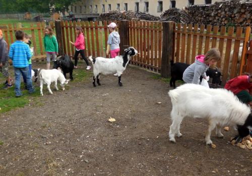 V Apolence jsme si se zvířátky užili moc prima dopoledne. Podojili jsme krávu - naštěstí byla klidná a držela, viděli jsme kůzlátko, telátko, oslí hříbě, spoustu selátek a taky velblouda Abdula.