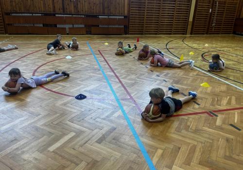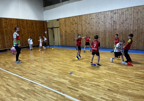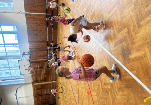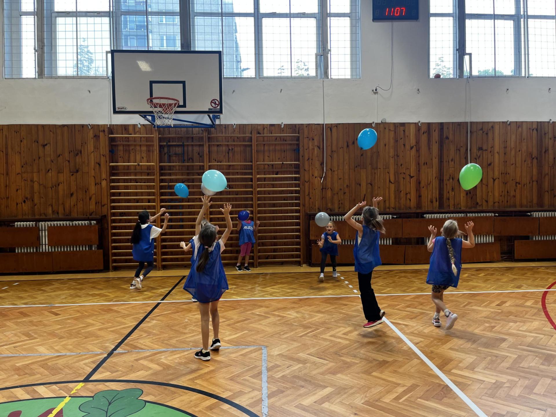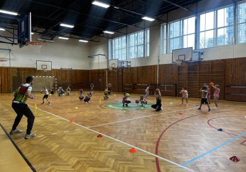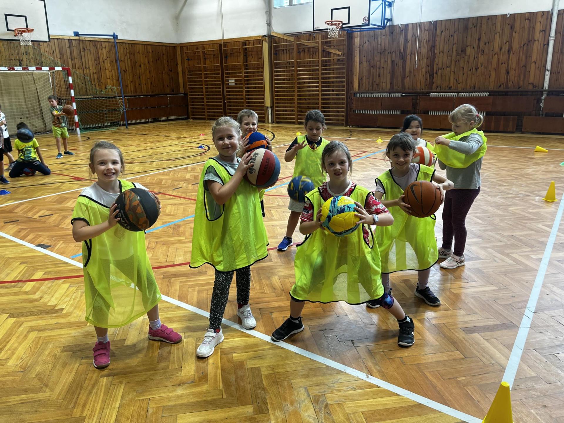 Každé úterý k nám na tělocvik chodí trenéři z projektu Trenéři do škol. Zatím máme pana trenéra na Basket. Učíme se pracovat s míčem, házet, chytat a driblovat. K tomu hrajeme spoustu super her. Tělocvik si prostě užíváme.