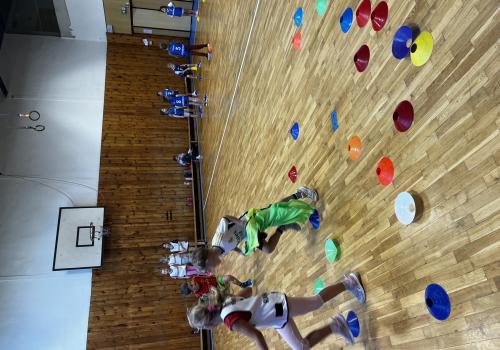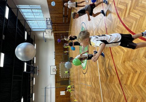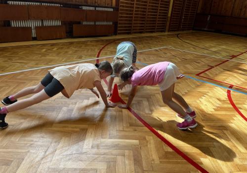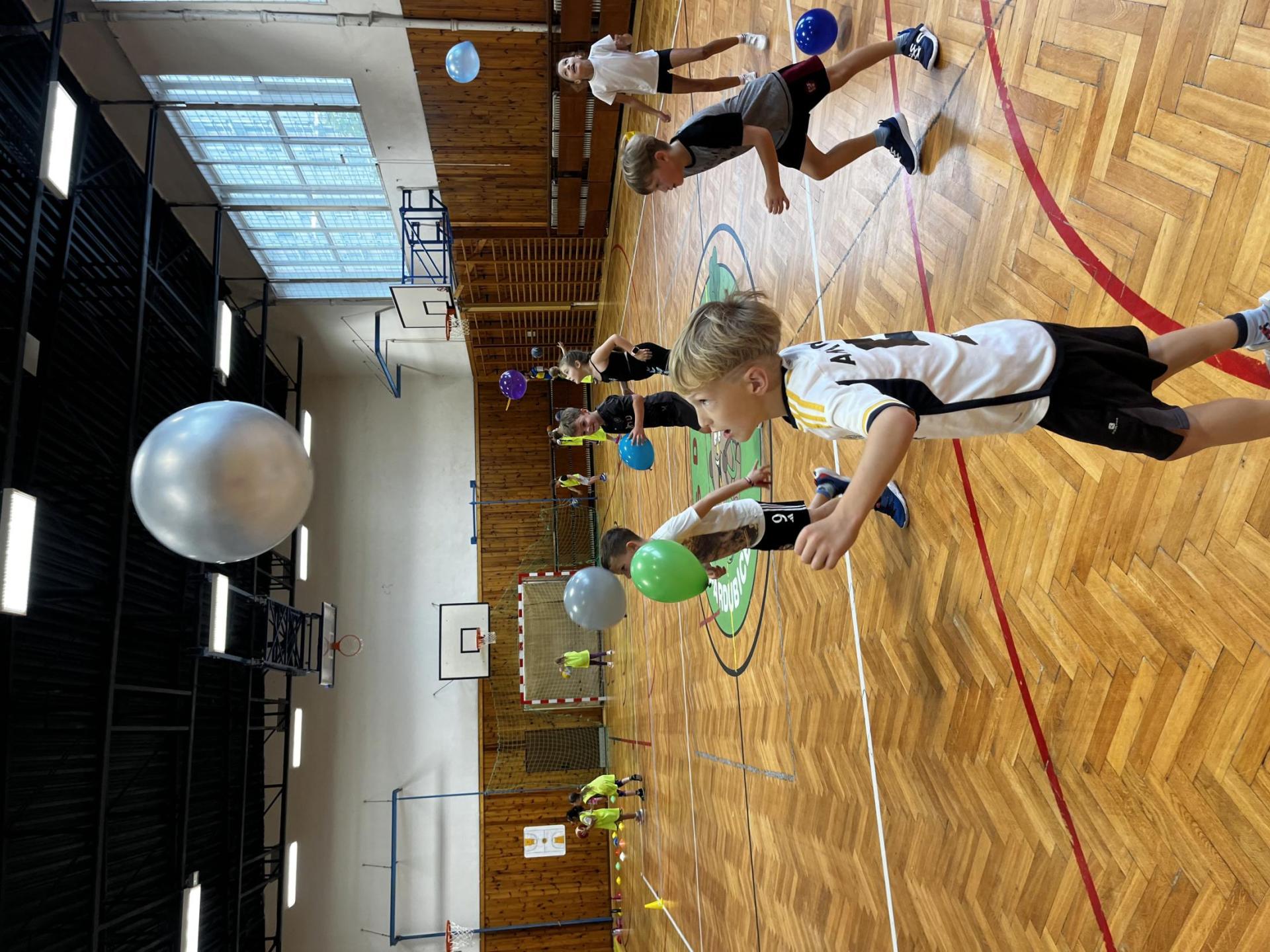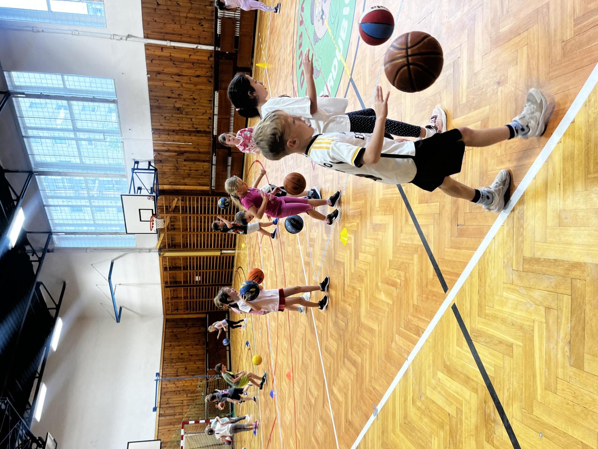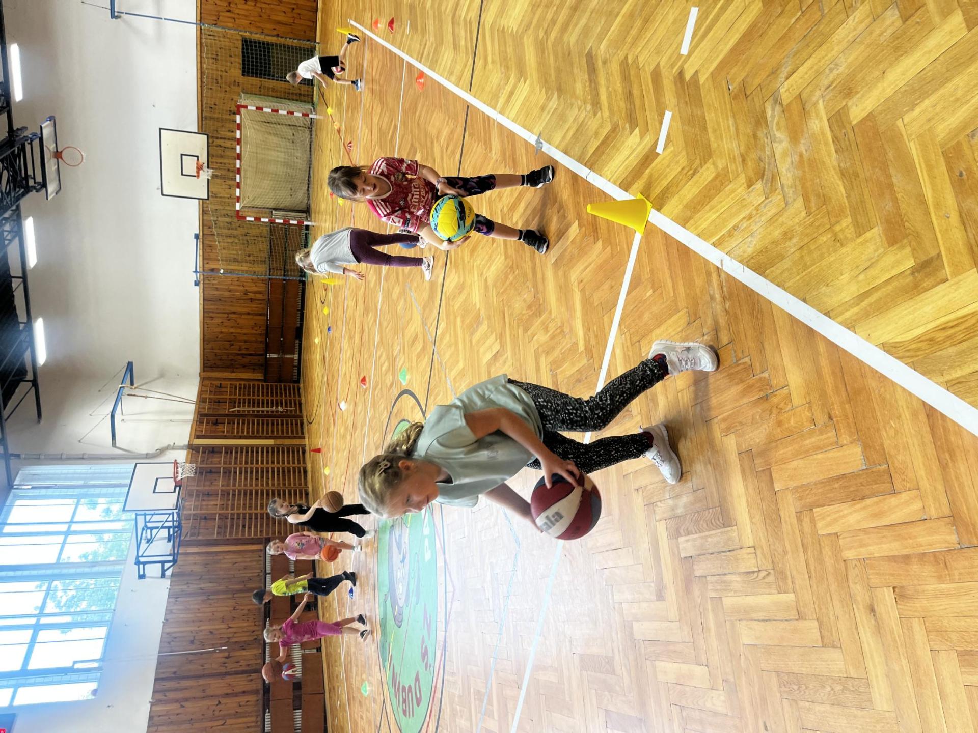 Každé úterý k nám na tělocvik chodí trenéři z projektu Trenéři do škol. Zatím máme pana trenéra na Basket. Učíme se pracovat s míčem, házet, chytat a driblovat. K tomu hrajeme spoustu super her. Tělocvik si prostě užíváme.