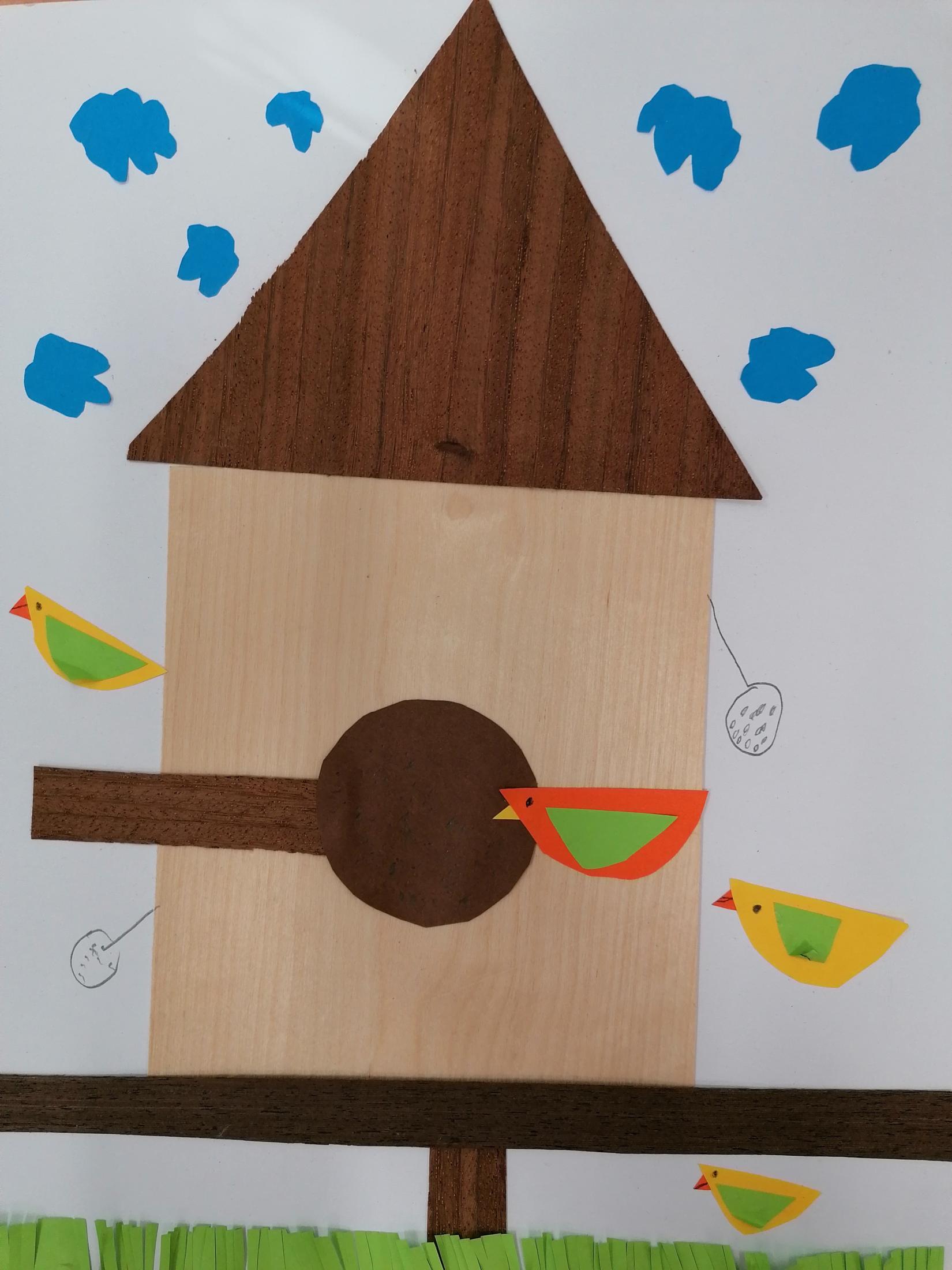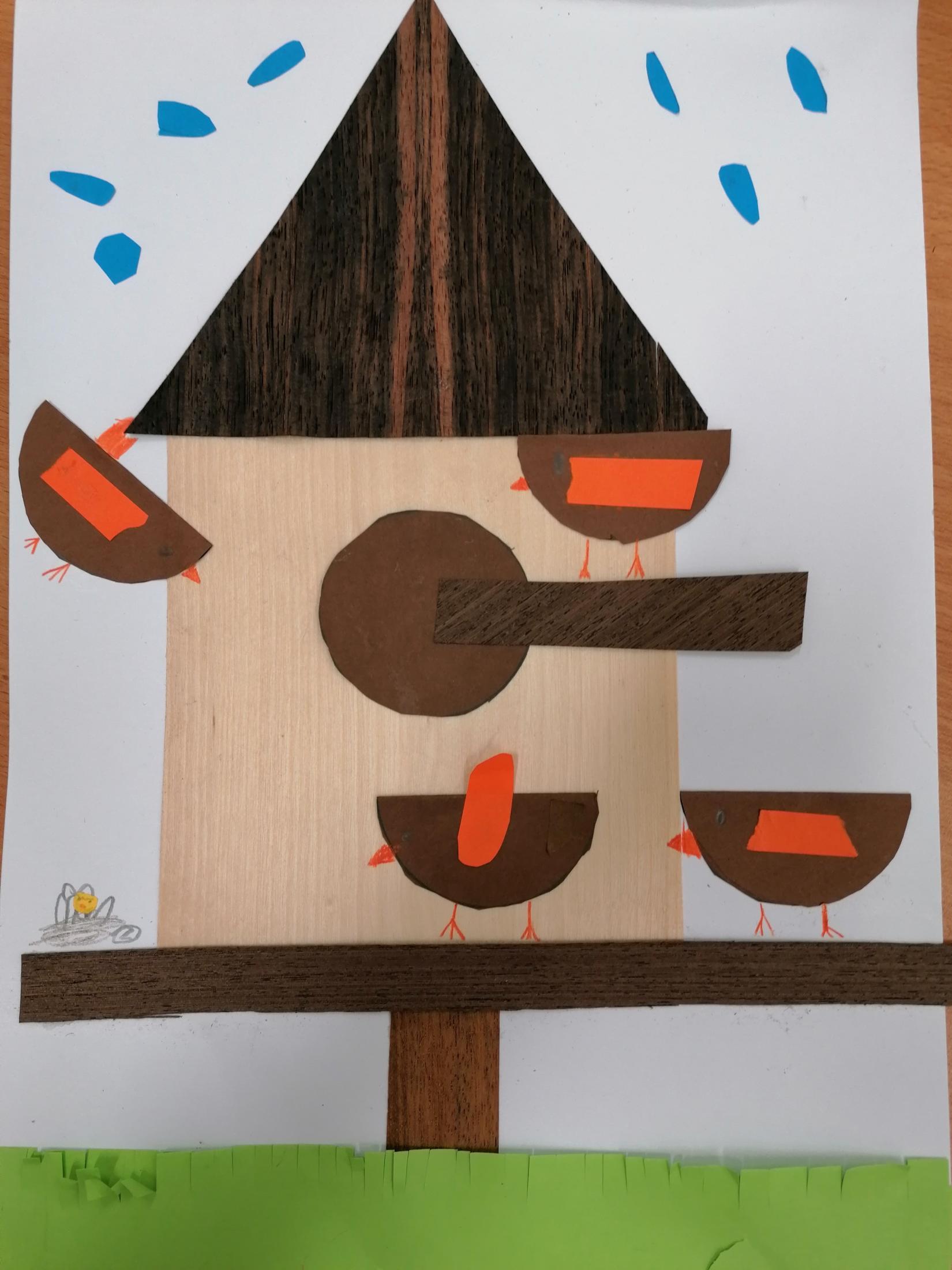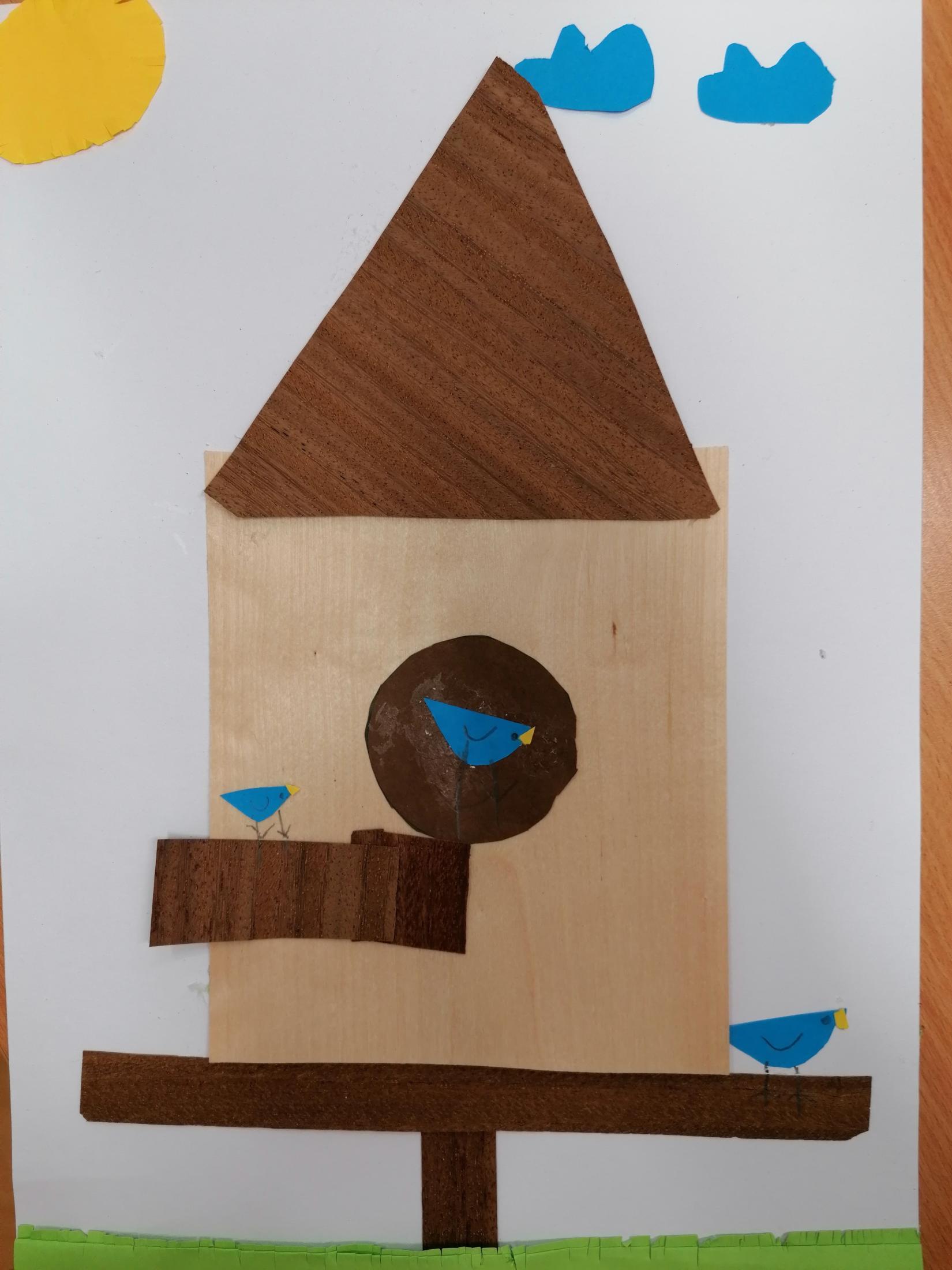 Při tvořivých činnostech jsme zkoušeli pracovat s dýhou. Máme pro ptáčky moc pěkná krmítka.