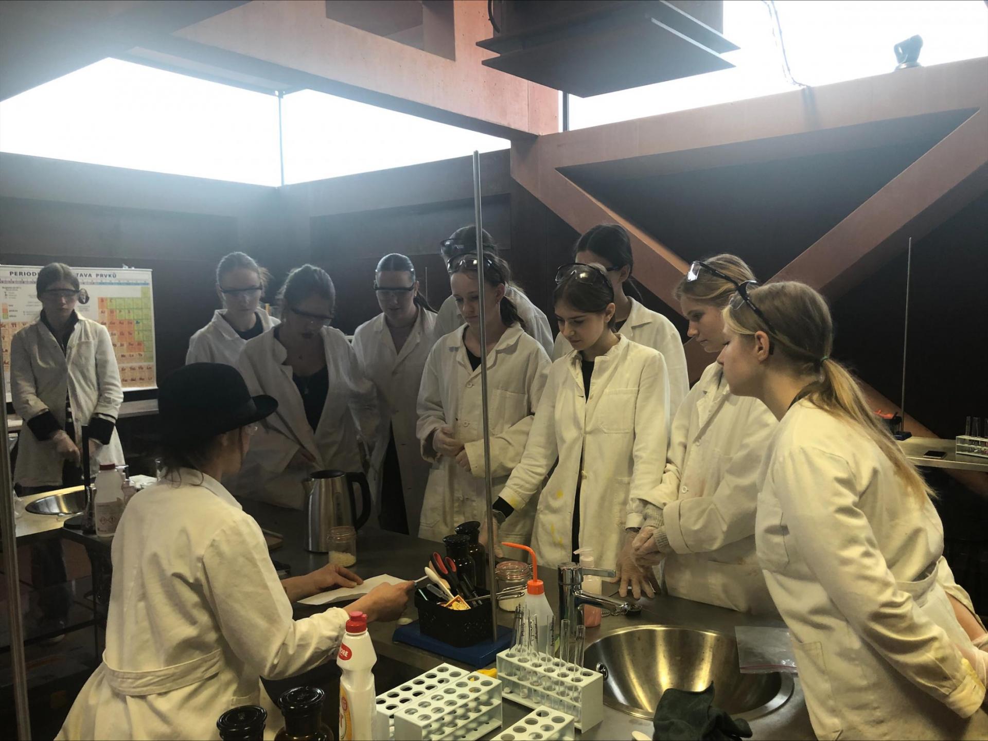 Dostali jsme 6 zkumavek s různými látkami a měli jsme zjistit, jak se změní, když k nim přidáme výluh ze zelí. Potom jsme vše porovnali s roztokem, který se našel na místě činu.