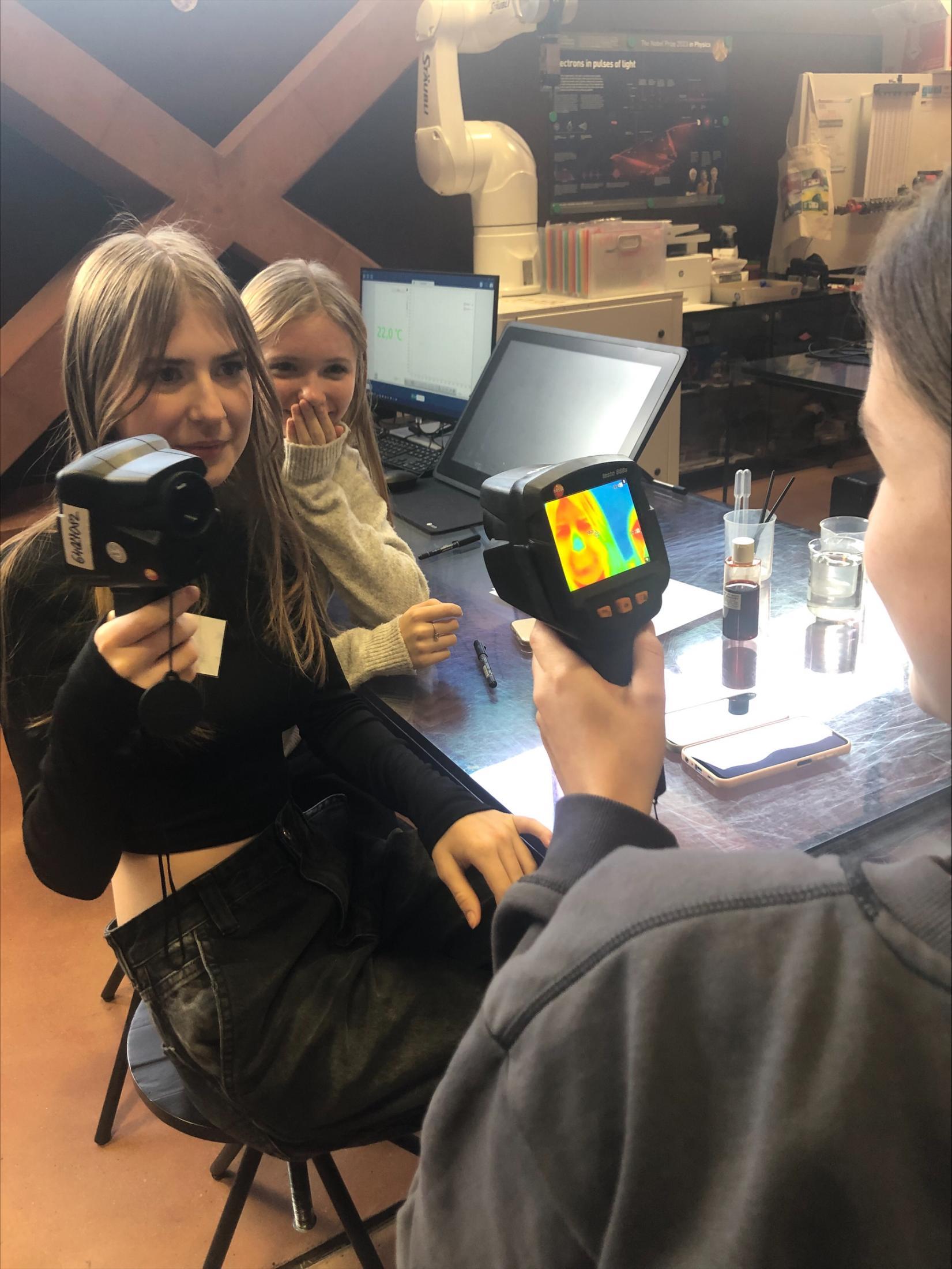 Druhý program obnášel práci s termokamerou. Dozvěděli jsme se, že bílé světlo je složeno ze 3 barev. Zatímco oči vidí barvu, termokamera „vidí“ teplo. Práce s termokamerou nás moc bavila a vytvořili jsme zajímavé fotky.