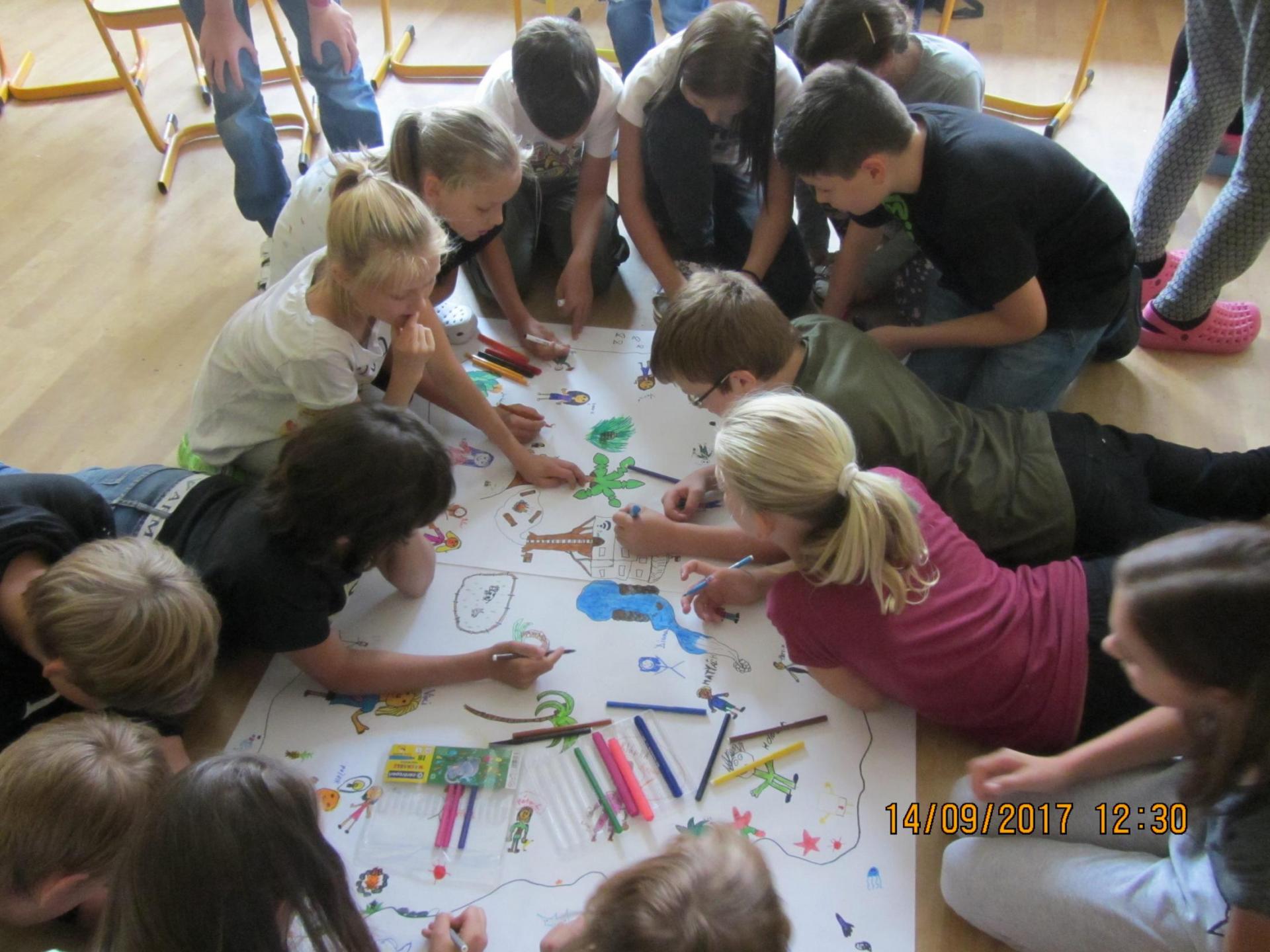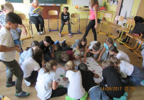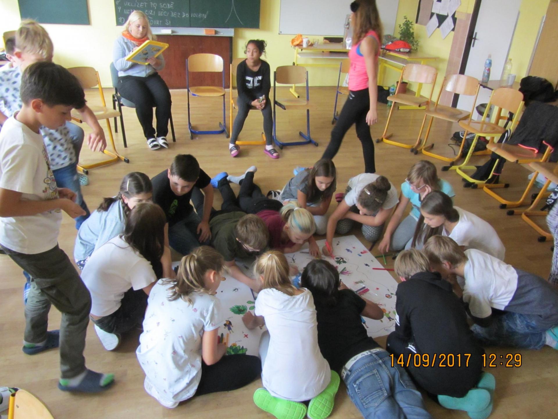 Ve čtvrtek jsme v aktivitách pokračovali a na závěr dne jsme si nakreslili ostrov, kde žijeme společně, jako celá třída. Příjemnou tečkou bylo posezení u čaje a upečených dobrot a sladkostí s paní učitelkou a psycholožkou. V pátek jsme si udělali výlet na Kunětickou horu, během kterého jsme se provětrali, protáhli a nadýchali čerstvého vzduchu. Kurz byl přínosný pro všechny a hlavně já jsem měla možnost poznat blíže skvělé děti 6.B !!! Také přikládám několik fotografií jako vzpomínku...![]()
