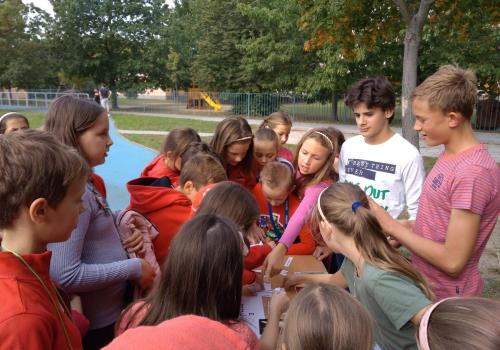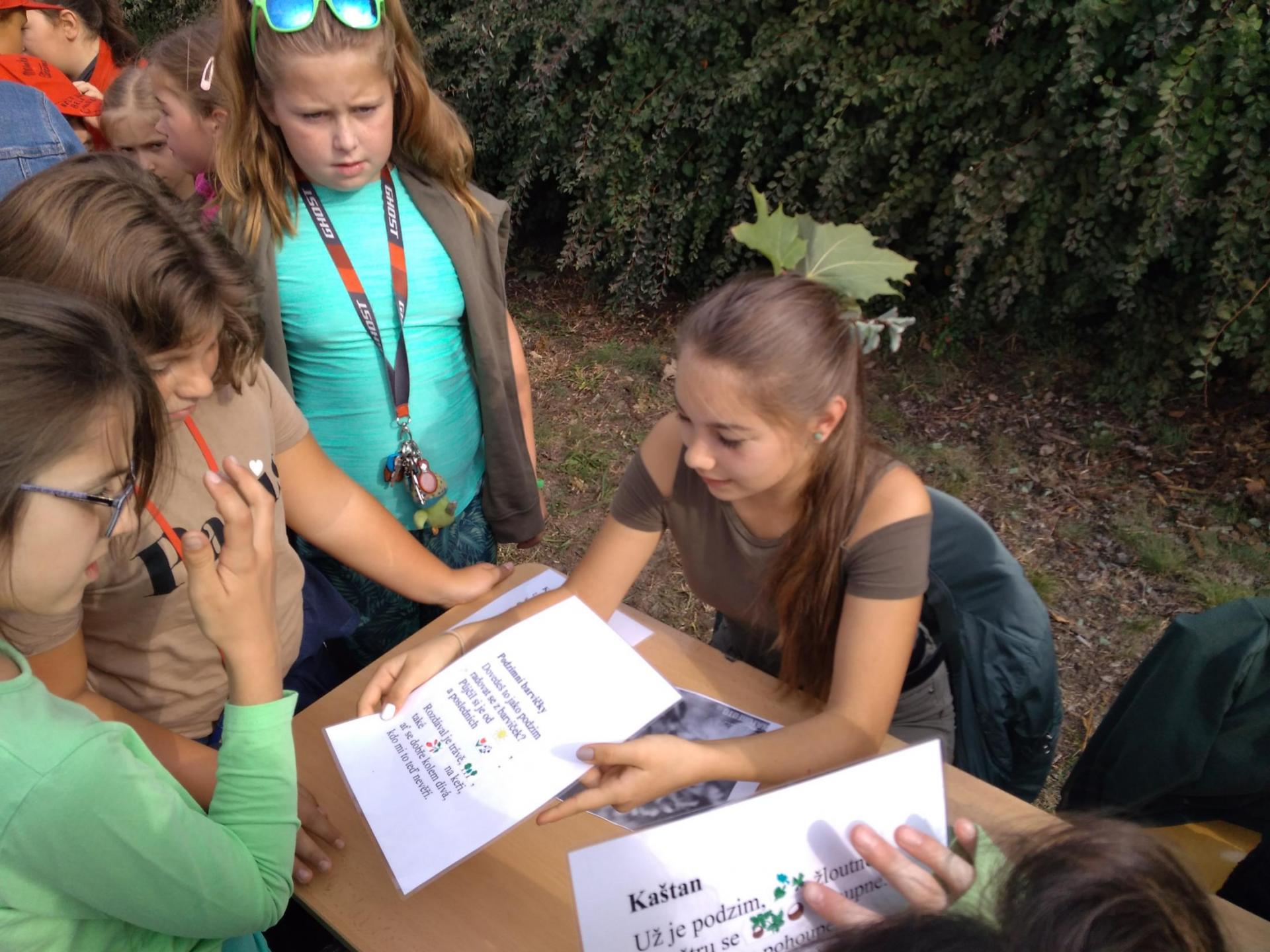 V úterý 24.9.2019 proběhla na naší škole celoškolní akce "Vítání podzimu". Chtěla bych ještě jednou poděkovat všem žákům třídy 8.B, kteří pomáhali na pohádkové stezce, kde zadávali různé úkoly spojené s podzimem mladším žákům z I.stupně a také velmi děkuji těm, kteří nebyli na stezce a pomáhali nám se stěhováním žídlí před rekonstrukcí. Byli jste všichni úžasní !!! ![]()