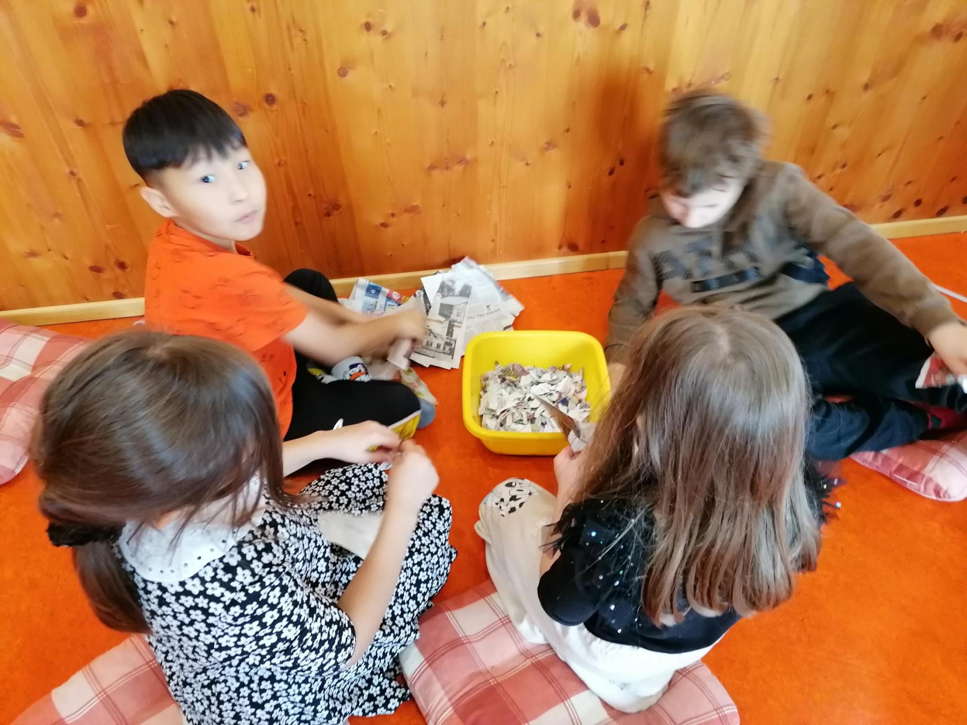 V ekocentru jsme se dozvěděli něco víc o recyklování starého papíru a všichni jsme si vyzkoušeli recyklovaný papír vyrobit ze starých novin.