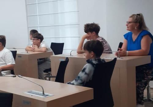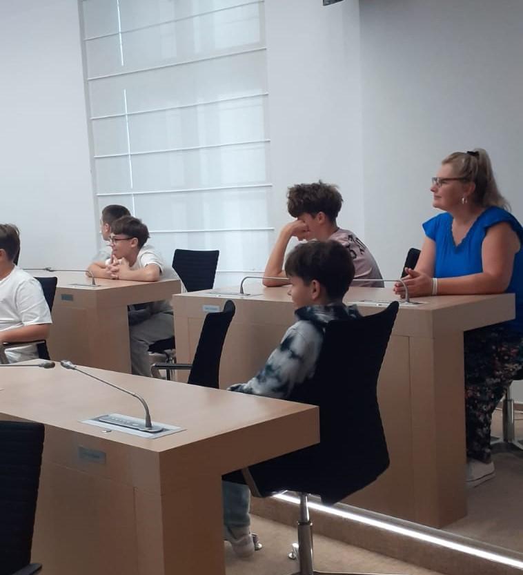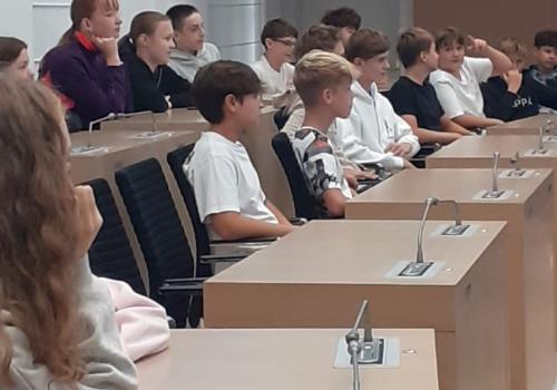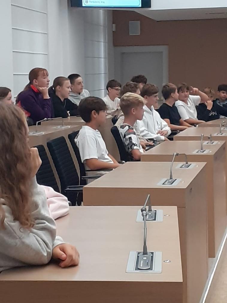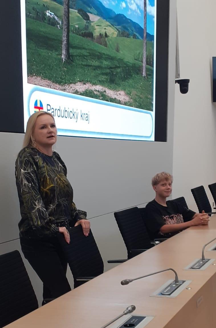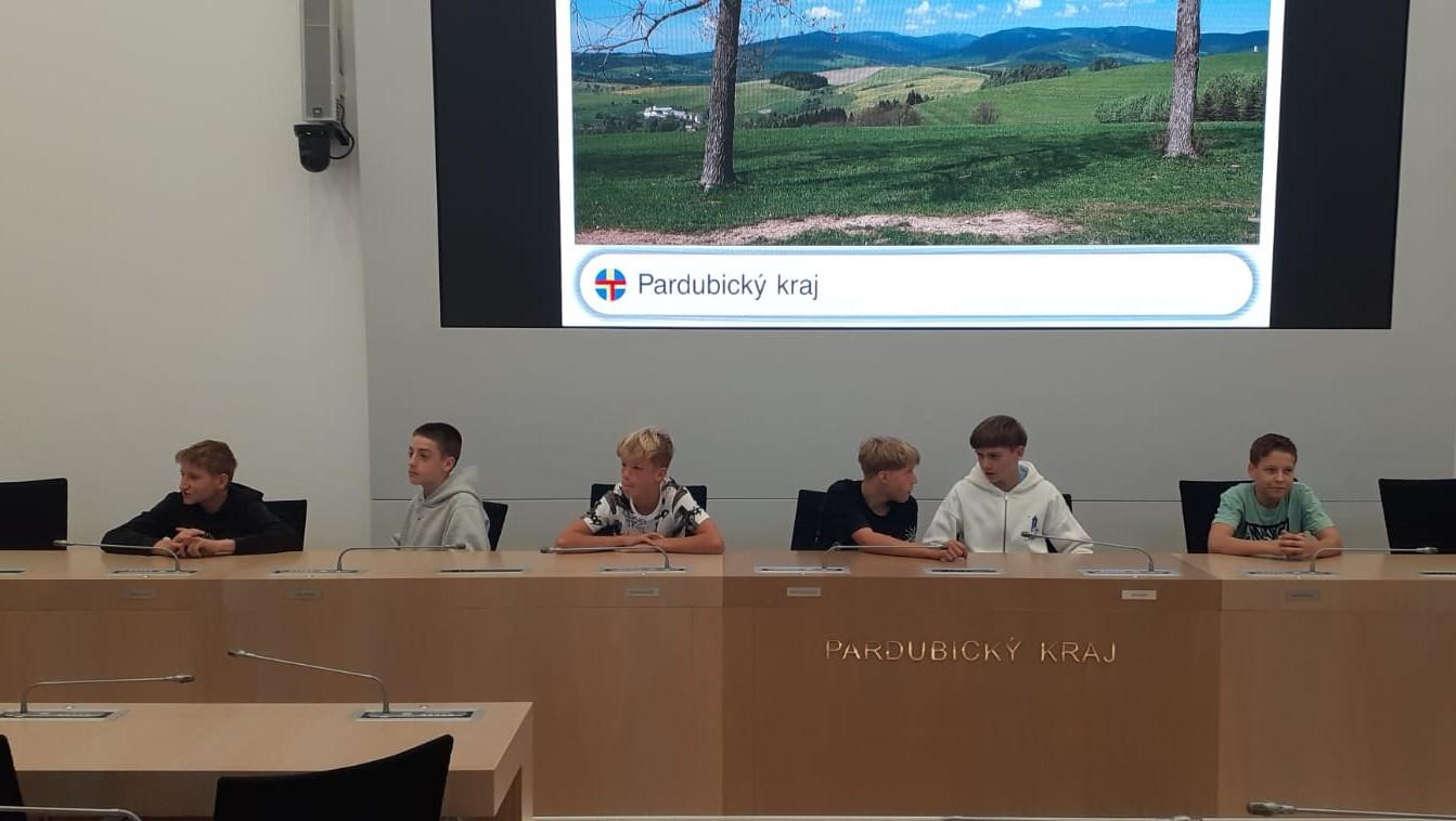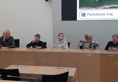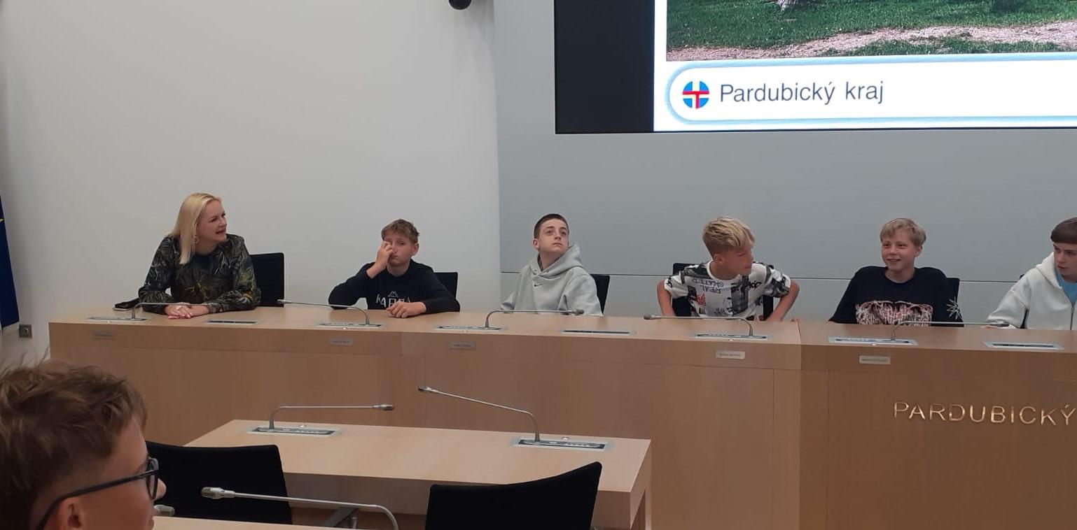 Podívejte se na pár fotek. Žáci se podívali do zasedacího sálu krajského zastupitelstva, dozvěděli se základní informace o Pardubickém kraji, jeho fungování, struktuře a další zajímavosti. Provázela je krajská radní Mgr. Petra Šimečková.
