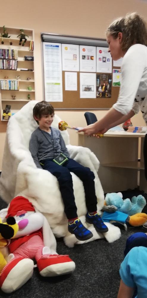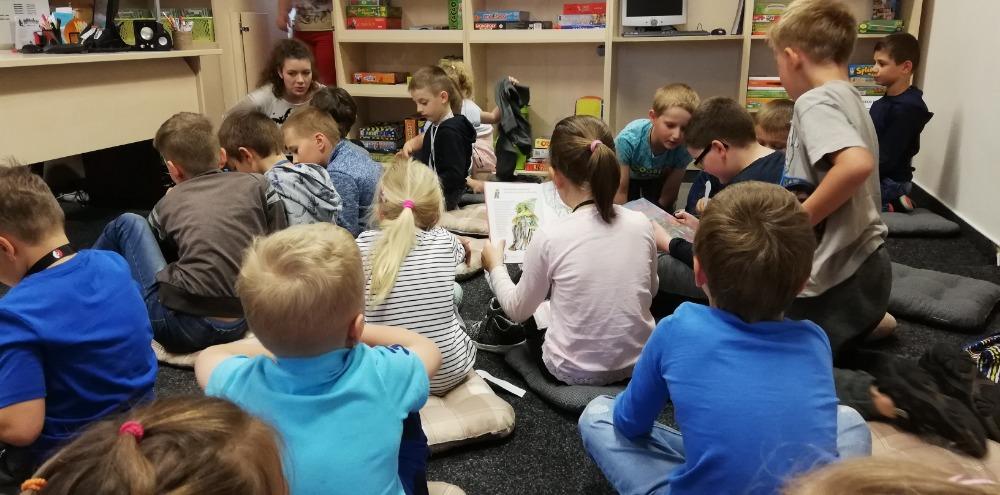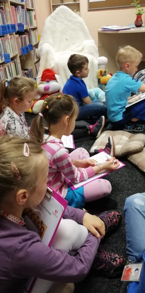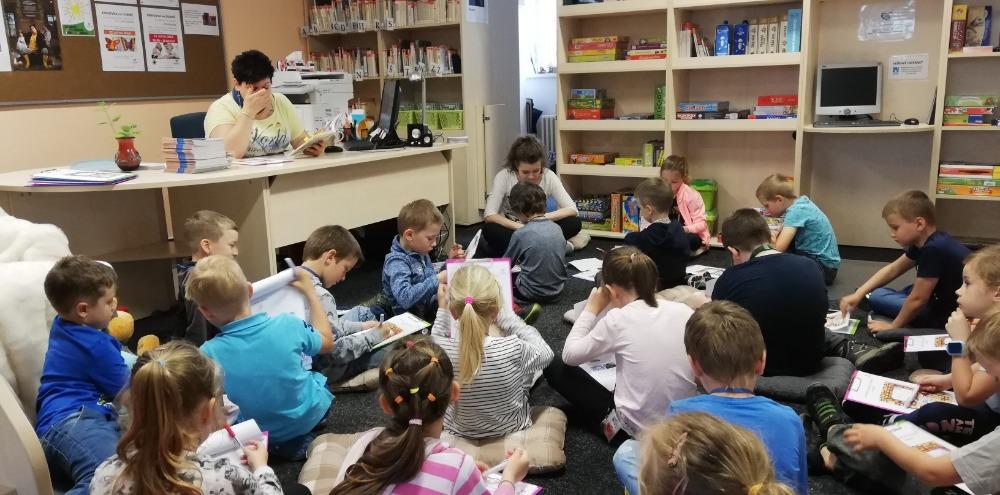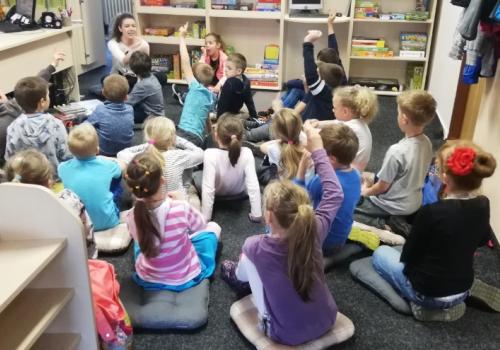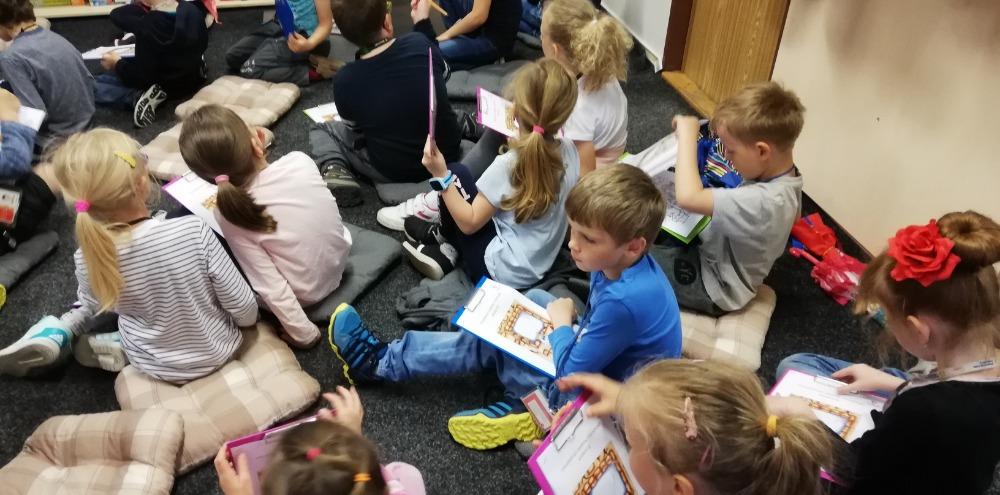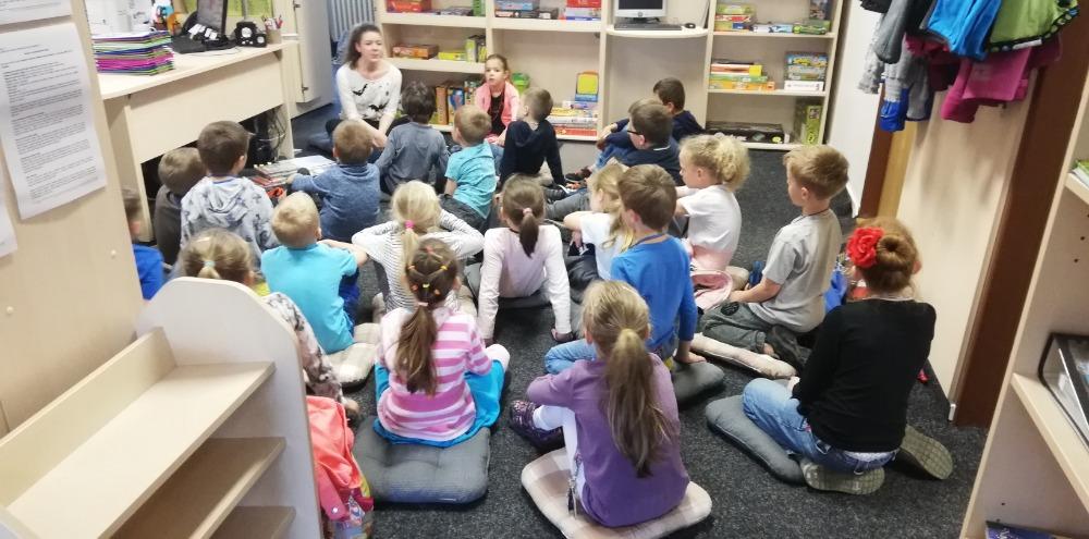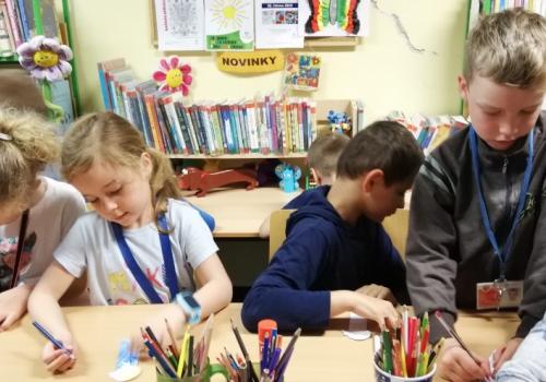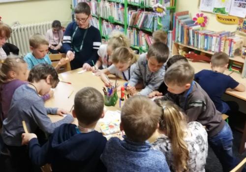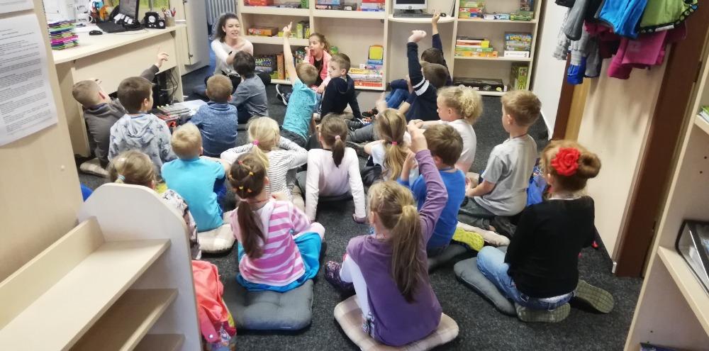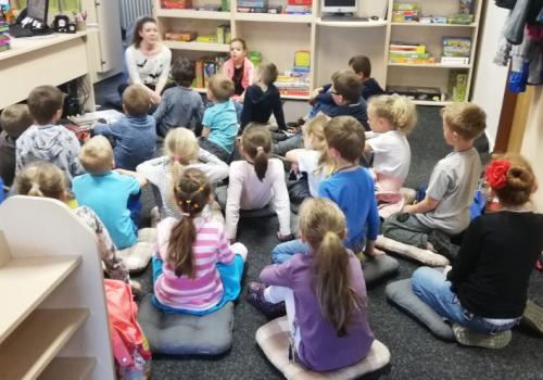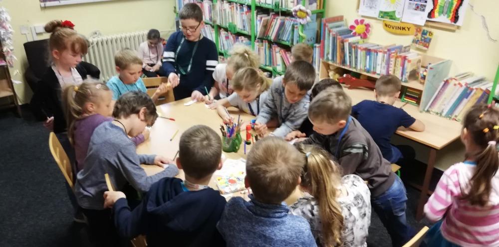 V knihovně si pro nás přopravili moc pěkný program. Úryvky z knížky, plnění úkolů, malování záložek. Děti si odnesly i pěkné dárečky a na konci 1. třídy byly pasované na čtenáře