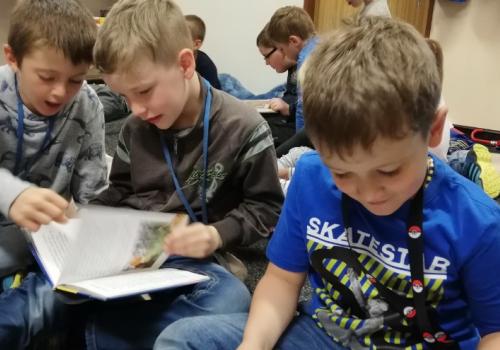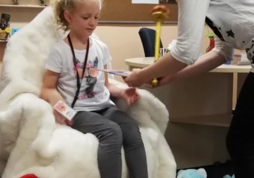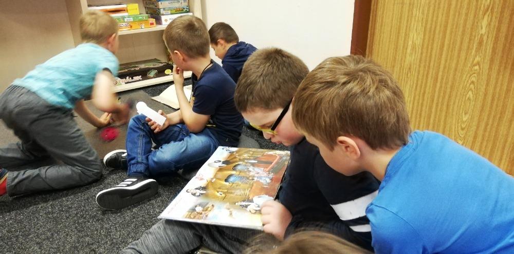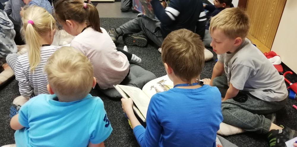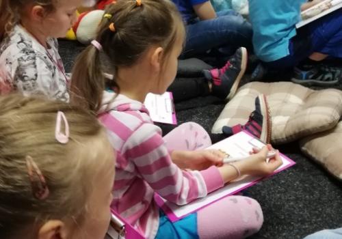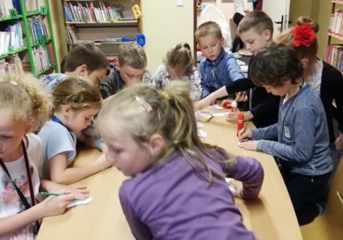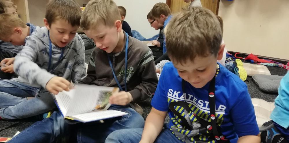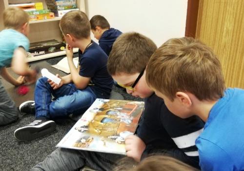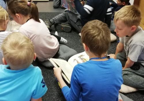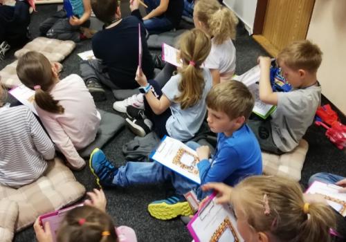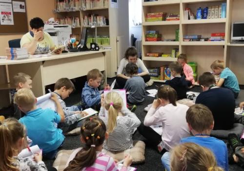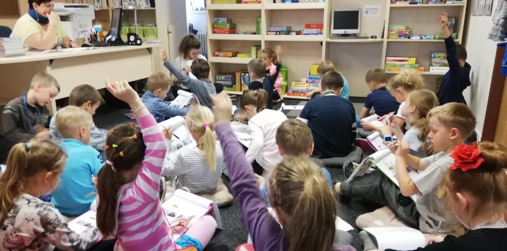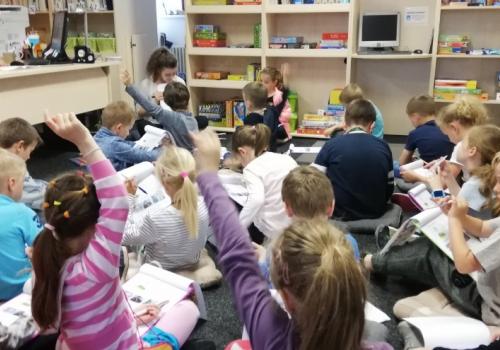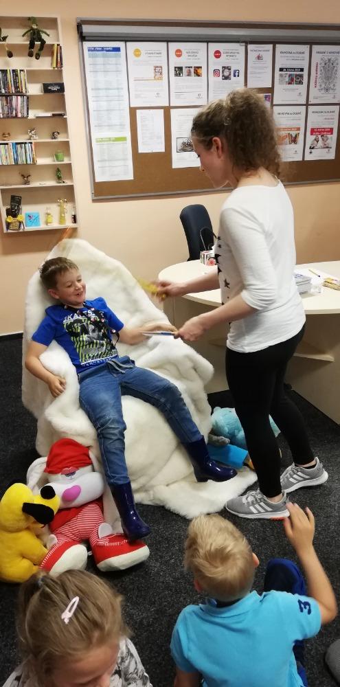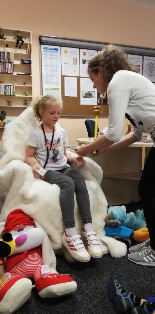 V knihovně si pro nás přopravili moc pěkný program. Úryvky z knížky, plnění úkolů, malování záložek. Děti si odnesly i pěkné dárečky a na konci 1. třídy byly pasované na čtenáře
