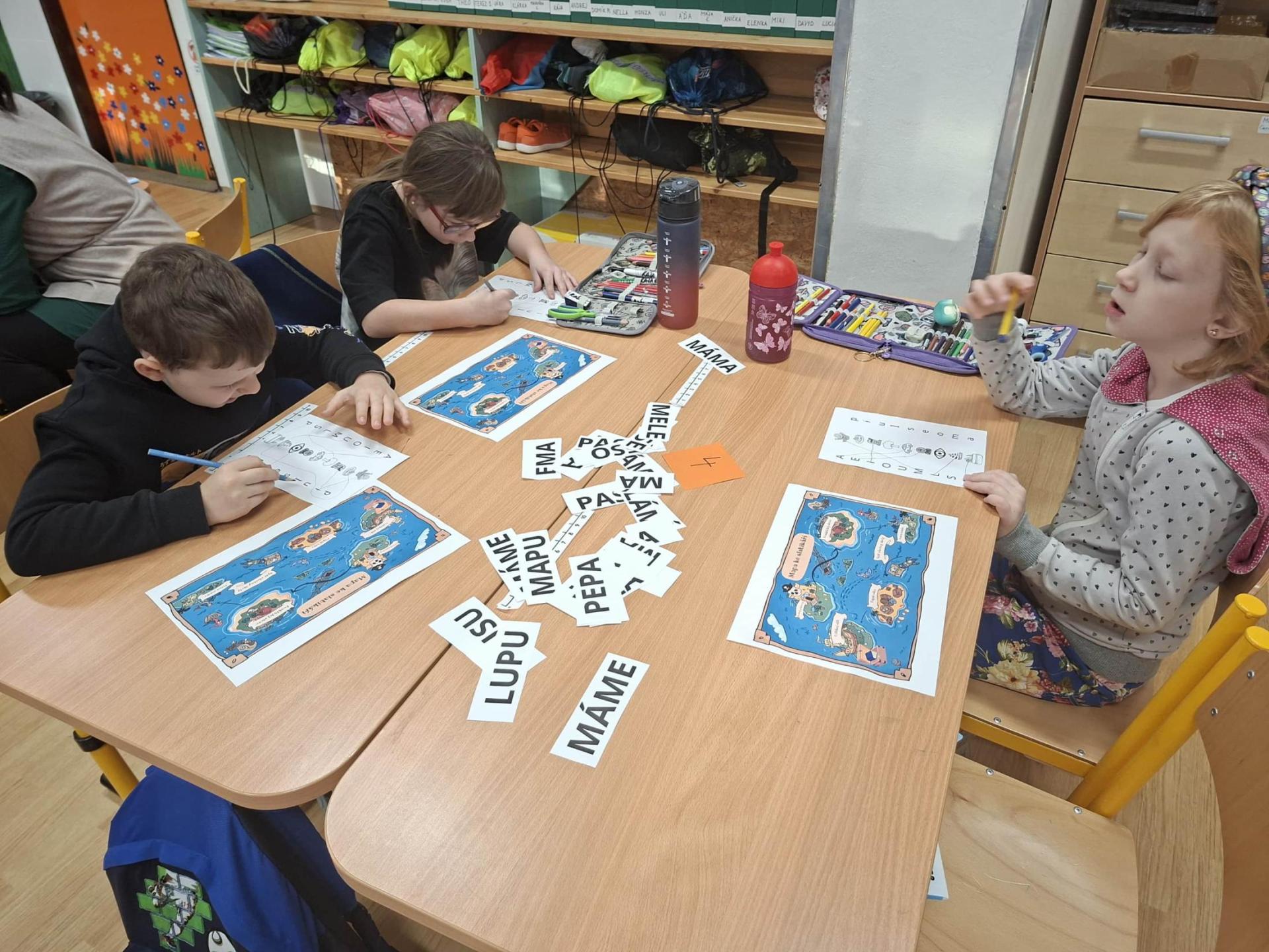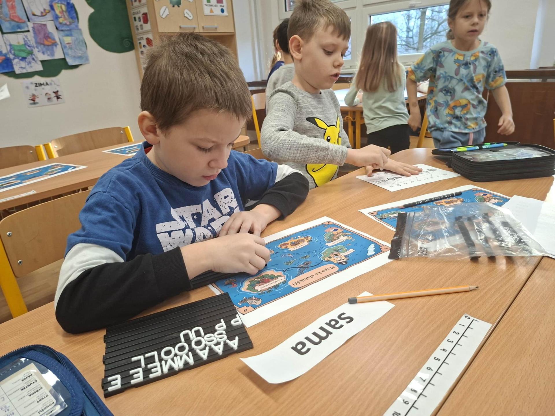 Na mapě bylo několik pirátských ostrovů a na každém z nich čekal úkol. Úkoly nebyly jednoduché – jen ti, kteří opravdu ovládají písmenka, slabiky a první slůvka, mohli pokračovat dál. Děti dokazovaly, že umí rozkládat a skládat slabiky, poznávat hlásky, přečíst krátké věty a pracovat se slovy. S každým splněným úkolem jsme byli blíž k pokladu.