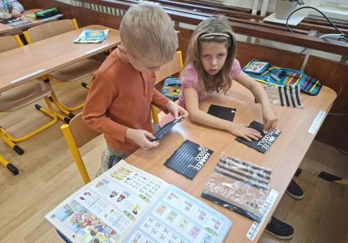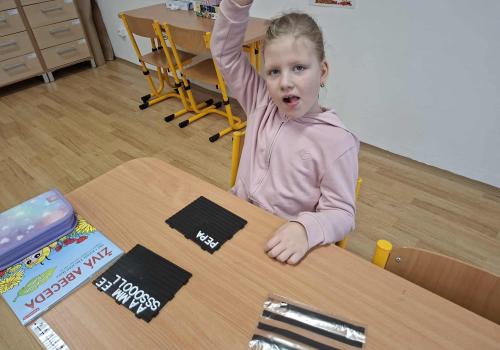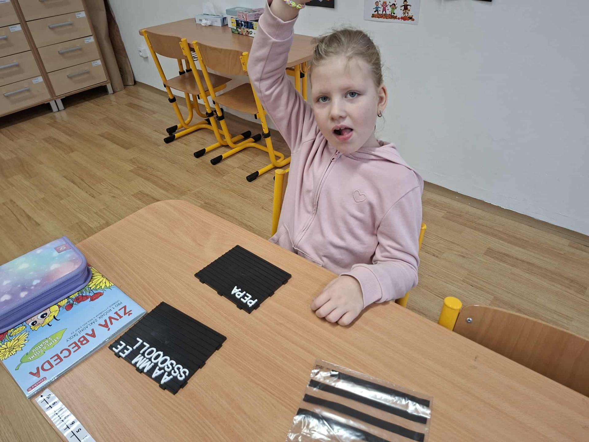 Kromě toho jsme si také vyzkoušeli nové tabulky s písmenky. Děti si skládaly svá první slova, objevovaly nové kombinace písmen a s radostí si procvičovaly čtení i psaní.