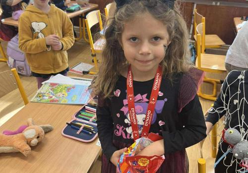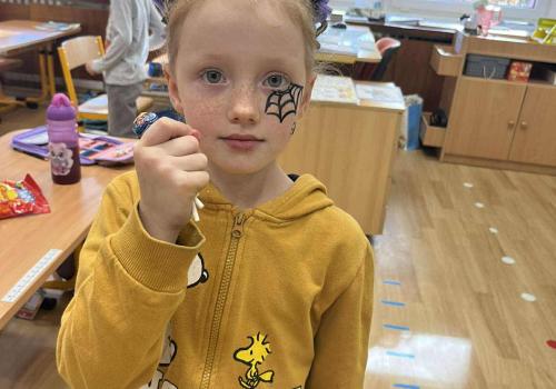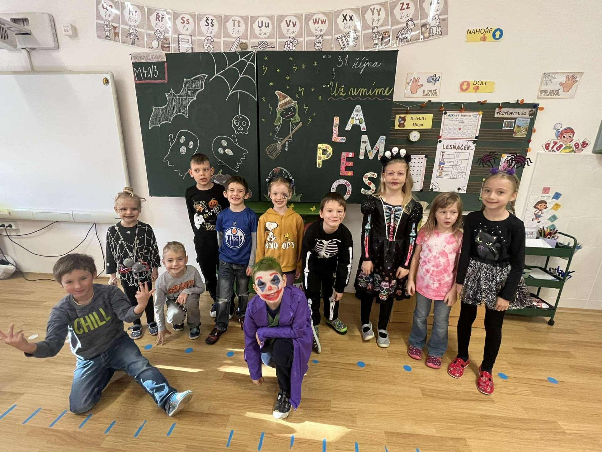V pátek nás pak čekal Halloween! Celý den se nesl v duchu strašidelné a veselé atmosféry. Učebna se proměnila v místo plné duchů, netopýrů a dýní. Během halloweenského vyučování děti plnily tematické úkoly, luštily hádanky, počítaly a hrály halloweenské hry.