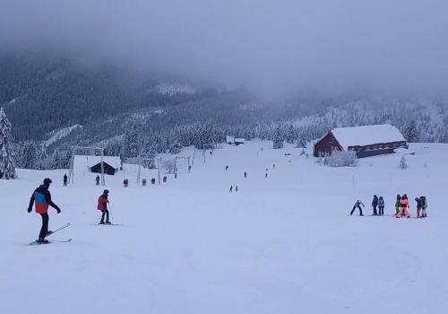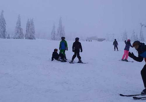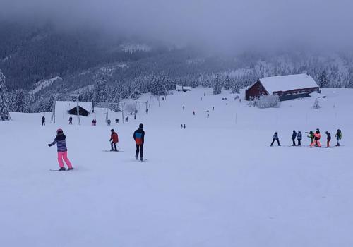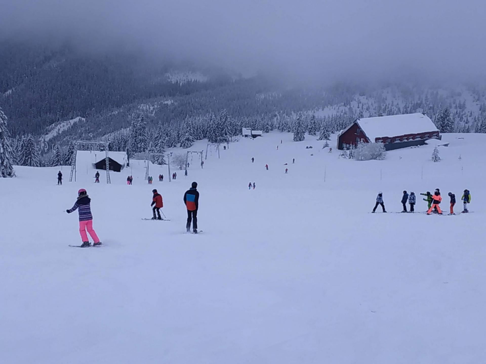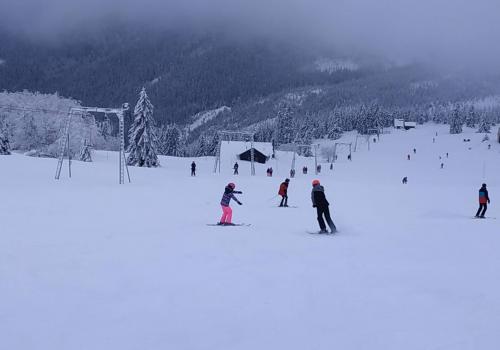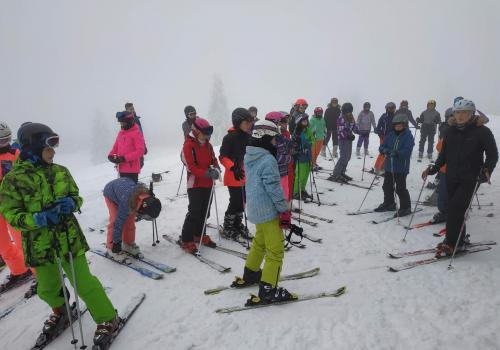 Po bohaté snídani ve formě švédských stolů, kdy nás překvapili vlastními houstičkami, domácí marmeládou a jinými dobrotami, jsme vyrazili na svah. Po zprvu náročném začátku velkého množství začátečníků jsme se odpoledne dopracovali k výraznému zlepšení techniky lyžování. I většina začátečníků zvládla během dnešního dne vyjet na vleku a sjet bez pádu svah. Zaslouží si velkou pochvalu J. Sluníčko jsme dnes sice nezahlédli, mlha se dala občas krájet, ale i tak jsme si lyžování užili.