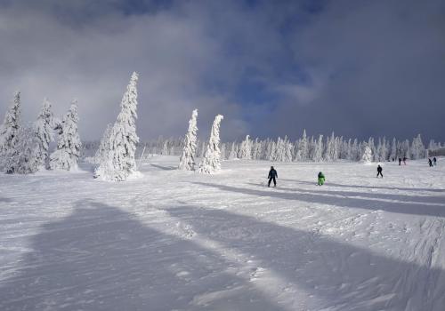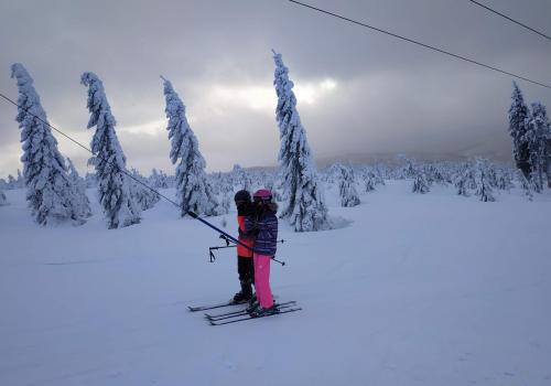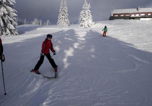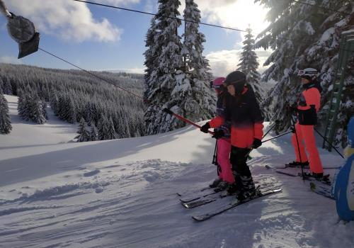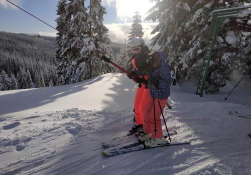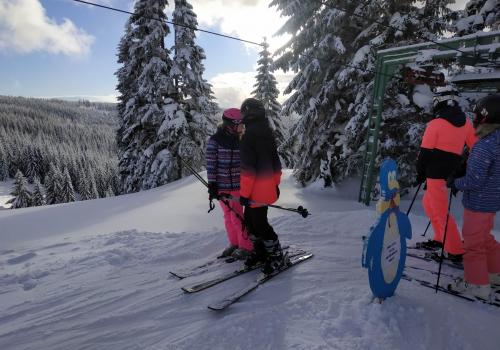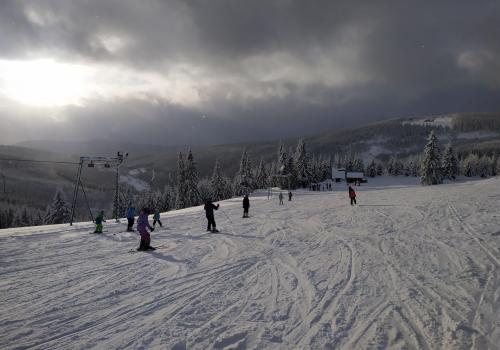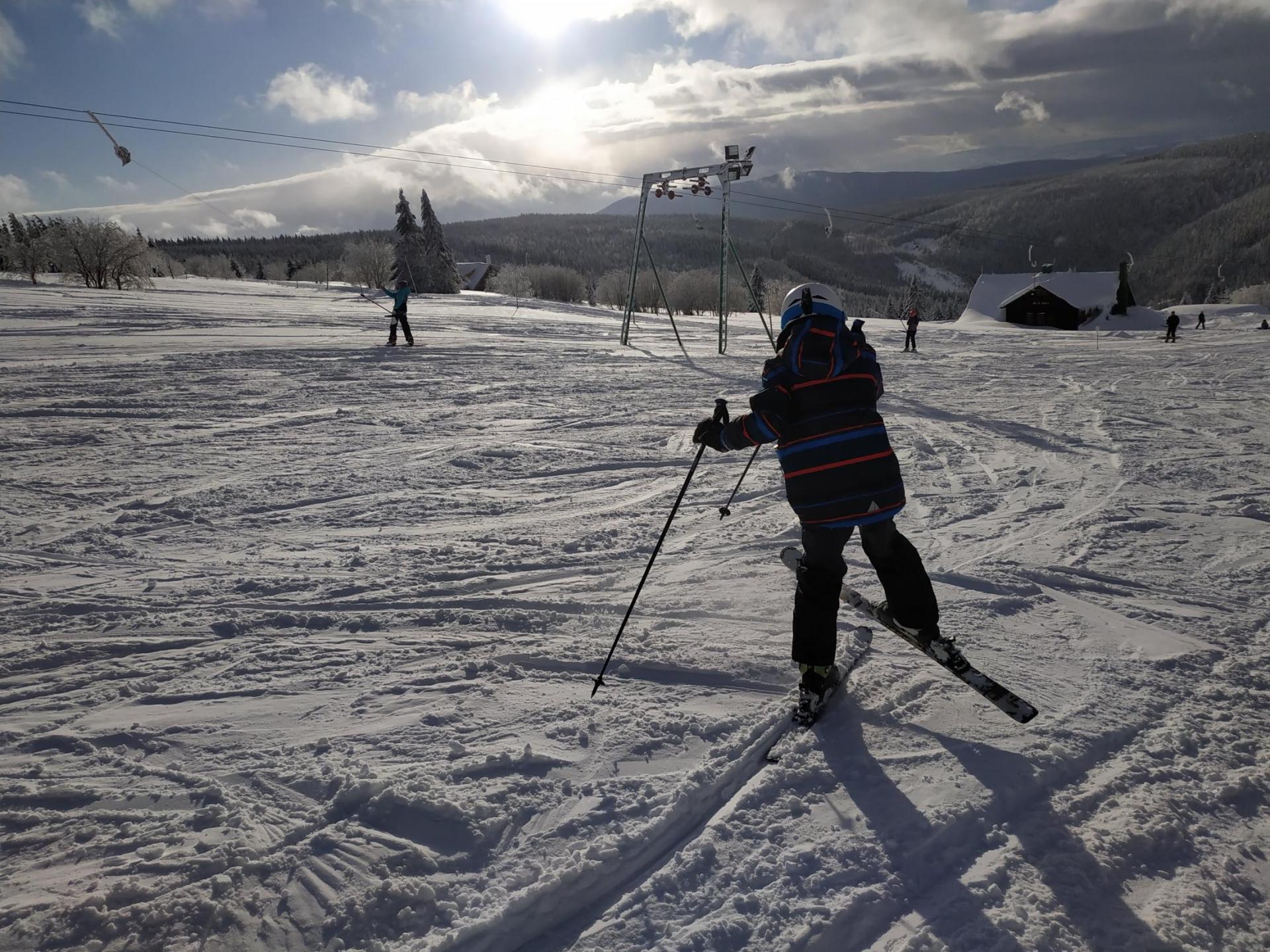 Ráno jsme se probudili opět do mlhou zakryté krajiny. Po bohaté snídani jsme se přemístili na svah, kde jsme dopilovávali lyžařské techniky. Dopoledne poměrně silně foukalo, mírně chumelilo a teploměr hlásil -4°C, a tak jsme se těšili na teplý vývar a smažák s bramborem. Odpoledne se počasí umoudřilo a dokonce nás přivítalo konečně sluníčko a nádherný výhled na pohádkově zasněžené hory. Všichni dnes již zvládli vyjet na vleku a sjet sjezdovku dolů. Hurááá J!!! Pořádně nám na svahu vyhládlo, a tak jsme s chutí ke svačině vyjedli košíky s čerstvě napečeným chlebem či houstičkami a obložené talíře. K večeři jsme se dorazili rizotem. Večerní program byl v režii dětí a jejich společenských her.