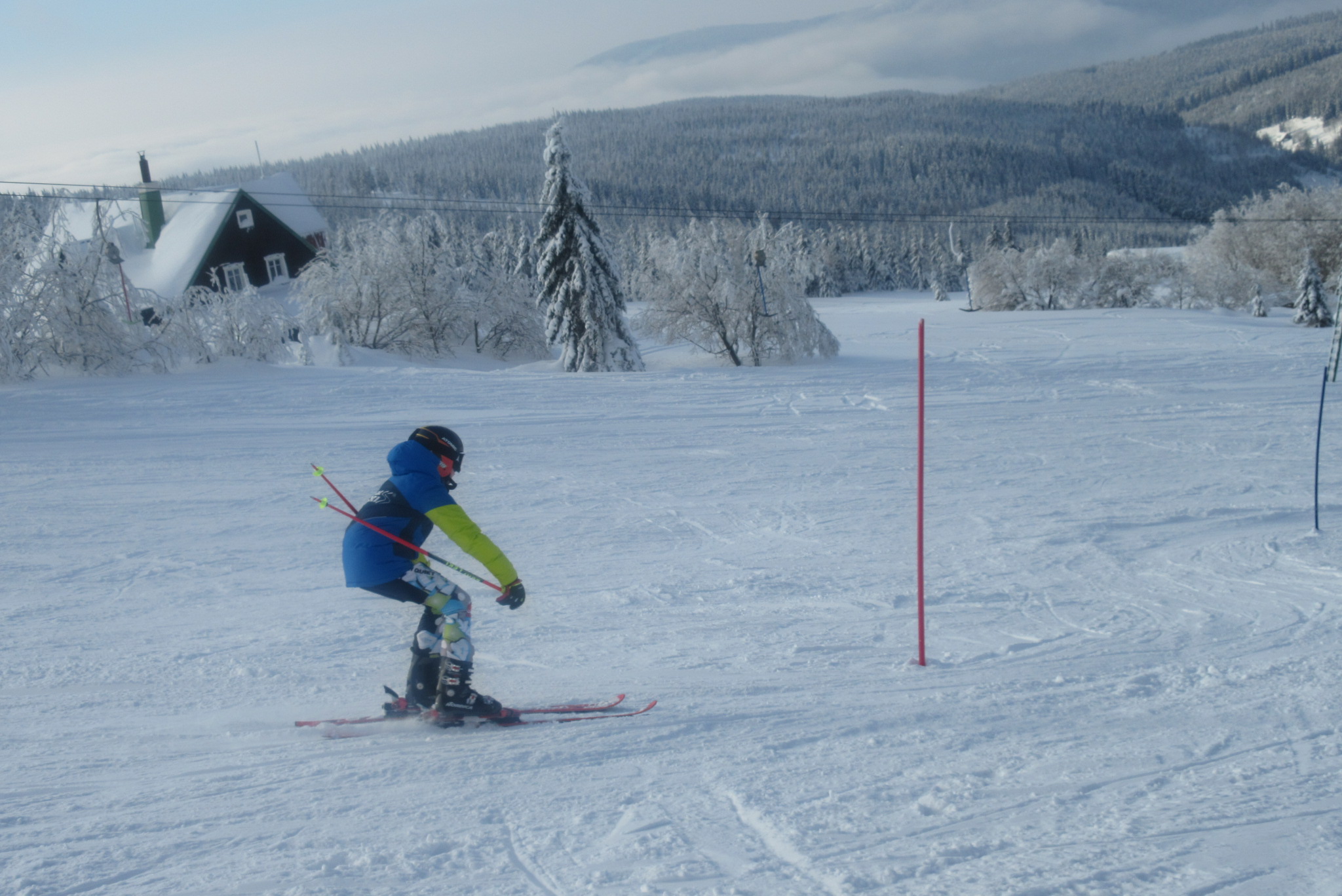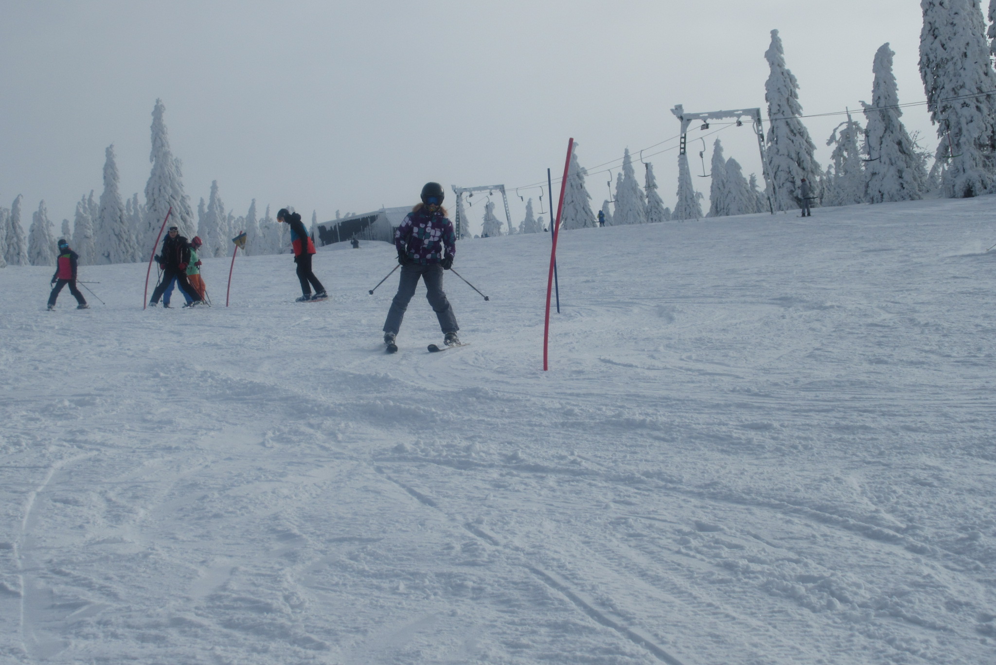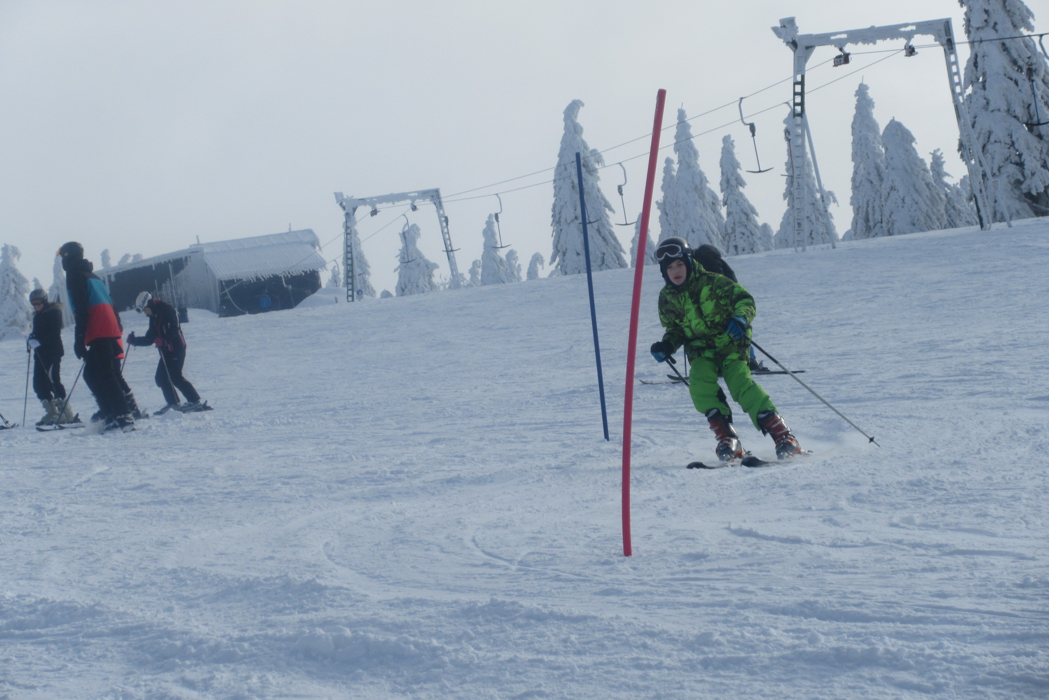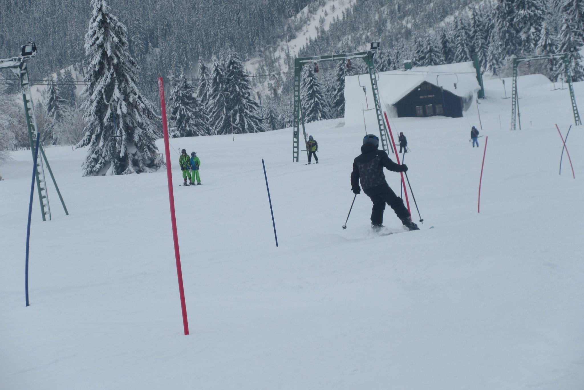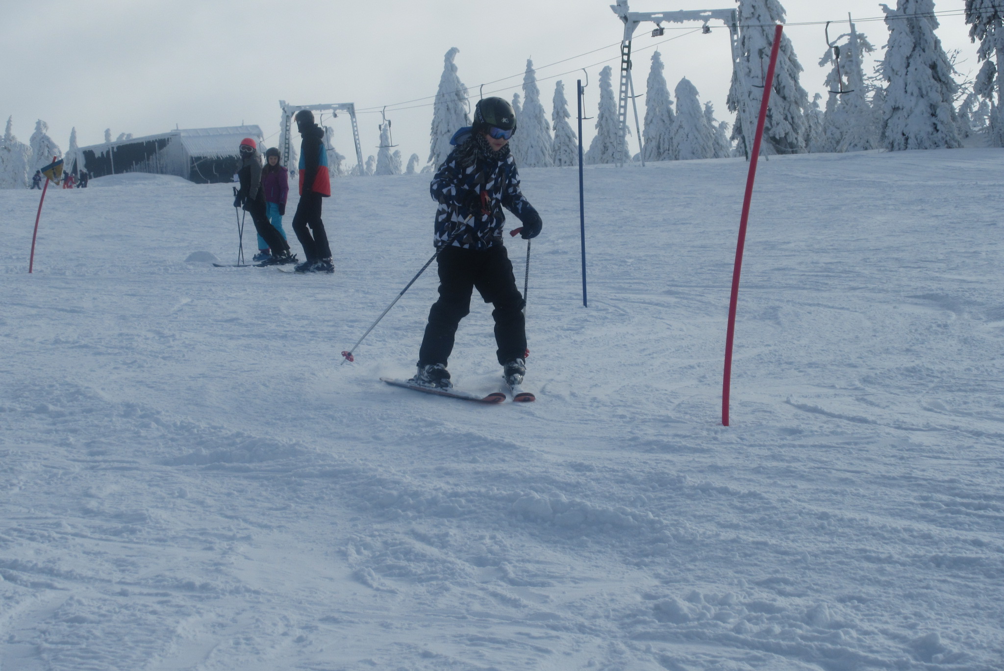 Dnešní den se vyvíjel v soutěžním duchu, protože byly na dopoledne naplánovány závody ve slalomu...až na pár marodů, kteří se nám trochu rozmnožili na tomto kurzu, všichni zúčastnění zdárně zajeli 2 kola a některým se podařilo probojovat až na stupně vítězů: Na 3. místě z děvčat se umístila Nela Syrůčková, 2. místo obsadila Káťa Rulcová a nejlepší slalomářkou se stala Míša Dvořáková. Mezi chlapci 3. místo obsadil Filip Kroužel, 2. Patrik Stohanzl a pomyslné zlato získal Martin Starý, který se stal zároveň celkovým vítězem. Odpoledne probíhalo na svahu už spíše volnější lyžování pouze s individuálním dolaďováním techniky řezaného oblouku, a protože bylo 31.1., rozdávalo se dětem na svahu vysvědčení